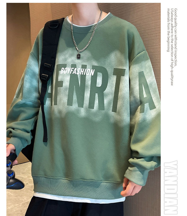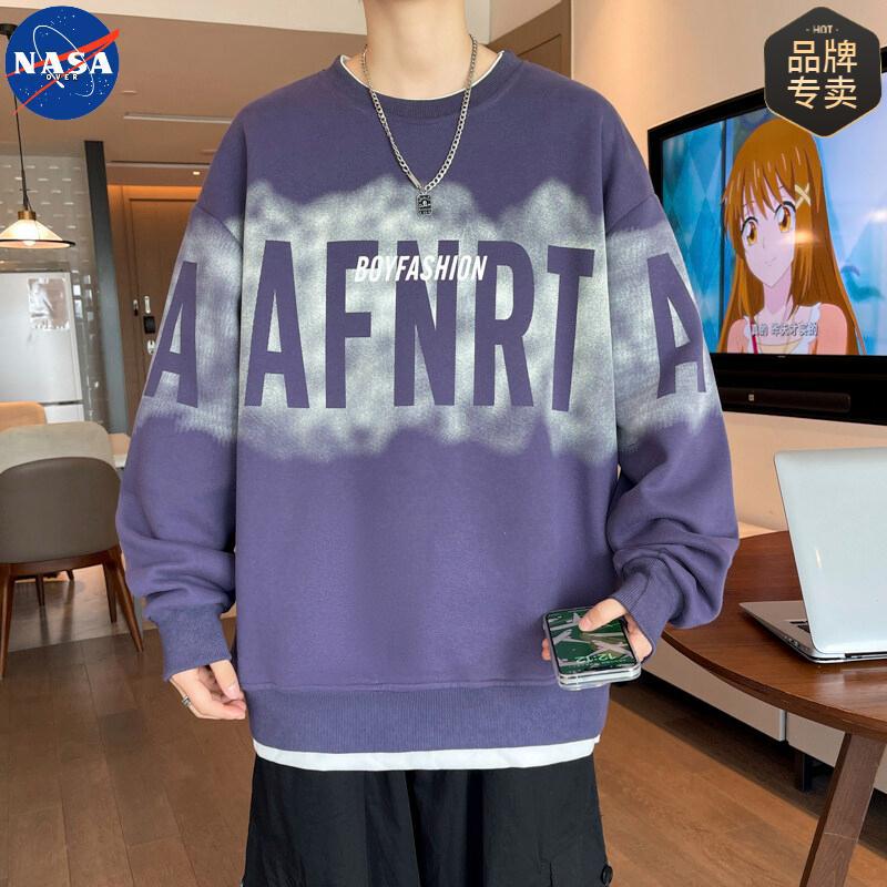 NASA 브랜드 땀 남자의 봄과 가을 새로운 긴 소매 학생 청소년 인쇄 라운드 넥 유행 브랜드 베이스 탑 옷