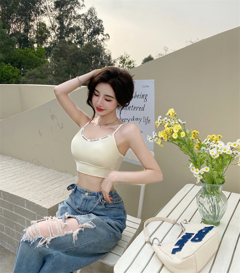 여름 아름 다운 백 카미 솔 여성용 원피스 고정 가슴 패드베이스 슬림핏 슬리밍 할로우 쇼트 탑스토어 가기