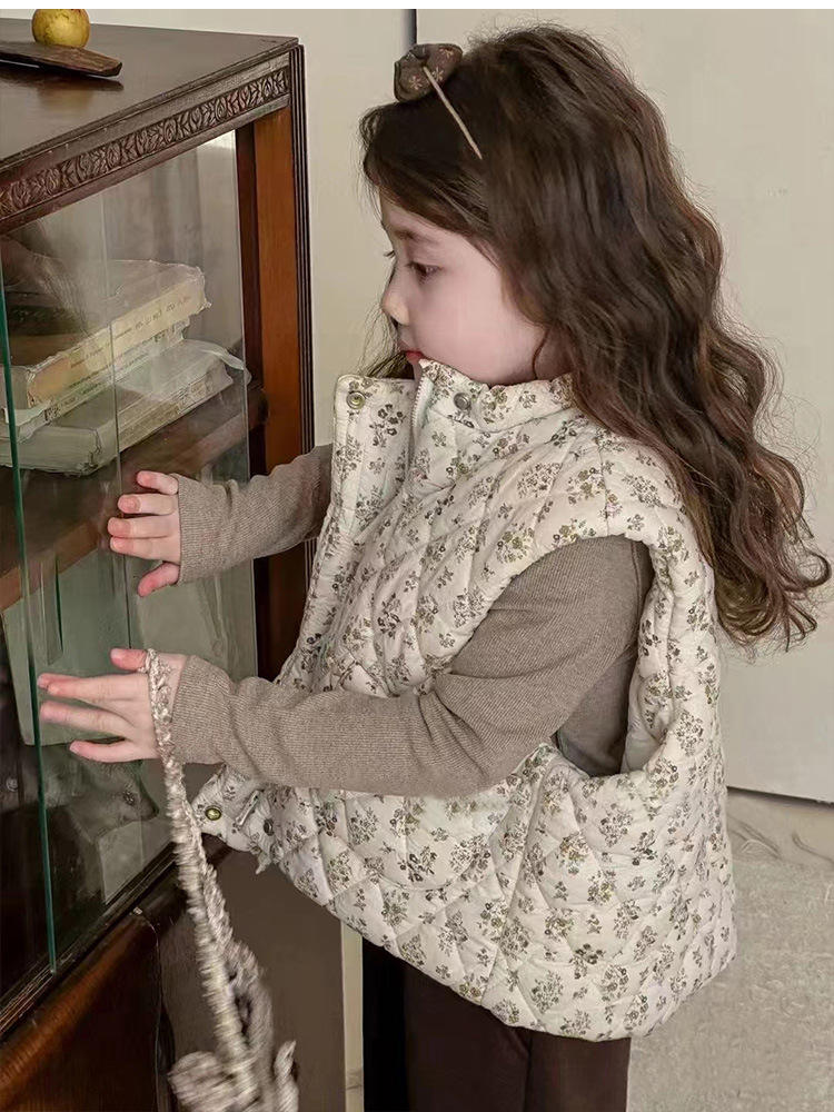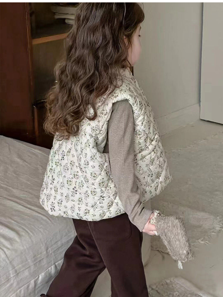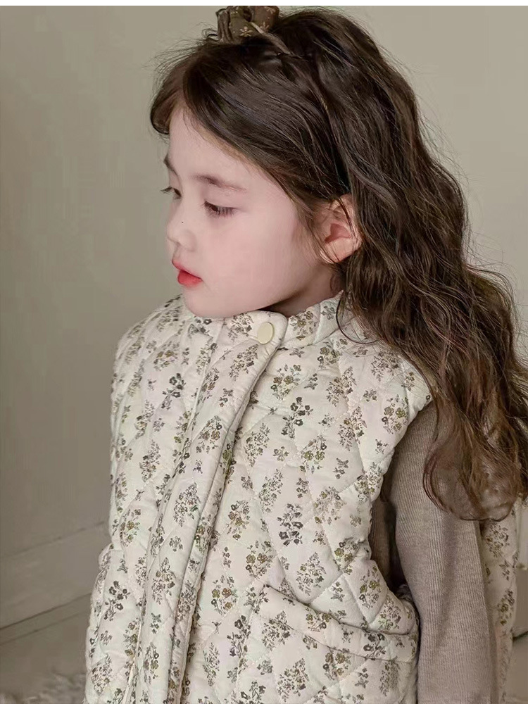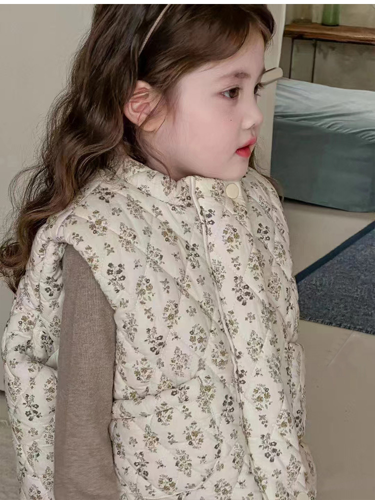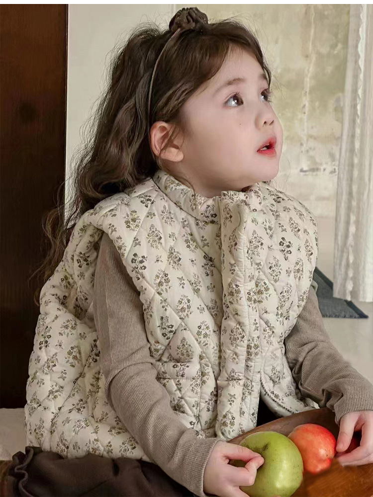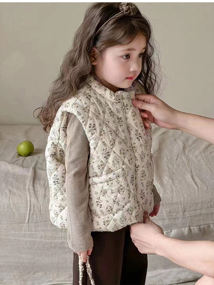 한국 어린이 의류 24 가을 겨울 새로운 아기 면화 꽃 조끼 소녀 민소매 두꺼운 조끼 코튼 코트