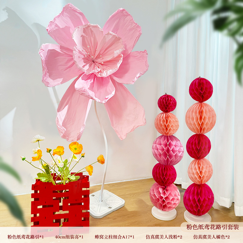 웨딩 룸 레이아웃 대형 크레이프 종이 꽃 장식 결혼식 스테레오 시뮬레이션 꽃 장식품 웨딩 축제 배경 벽스토어 가기