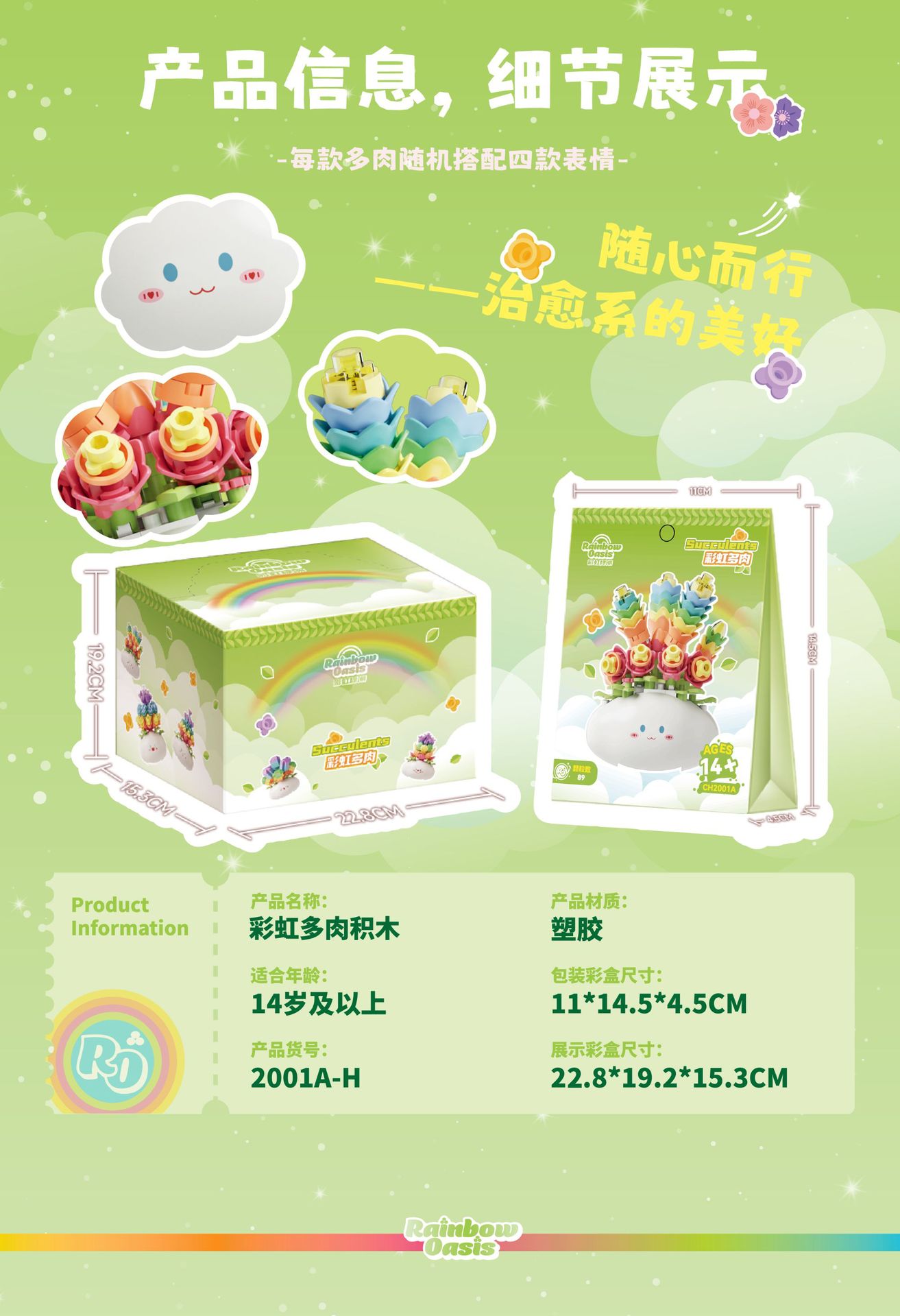 무지개 오아시스 작은 입자 장난감 조립 플라스틱 빌딩 블록 무지개 다육 식물 CH2001A-H 시리즈 세대스토어 가기