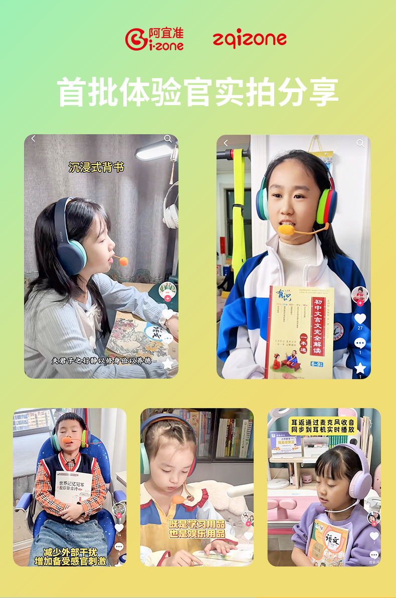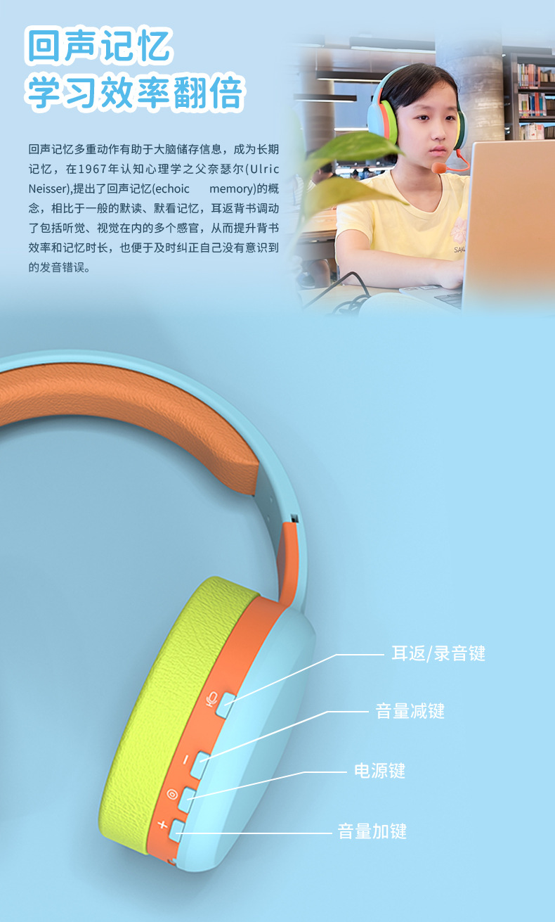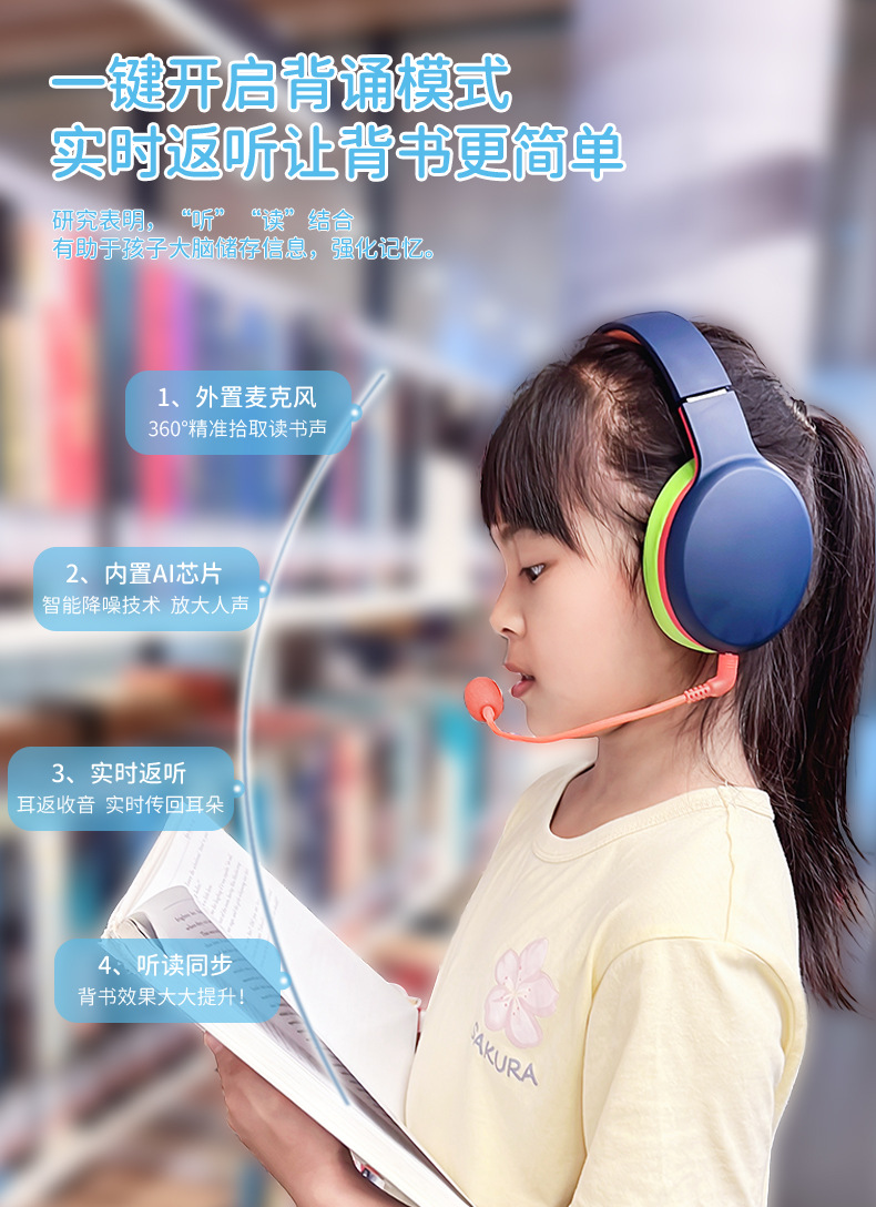 zqizone 아이준 헤드셋 블루투스 이어폰 초중등학생 독서 기억 학습 무음 통화