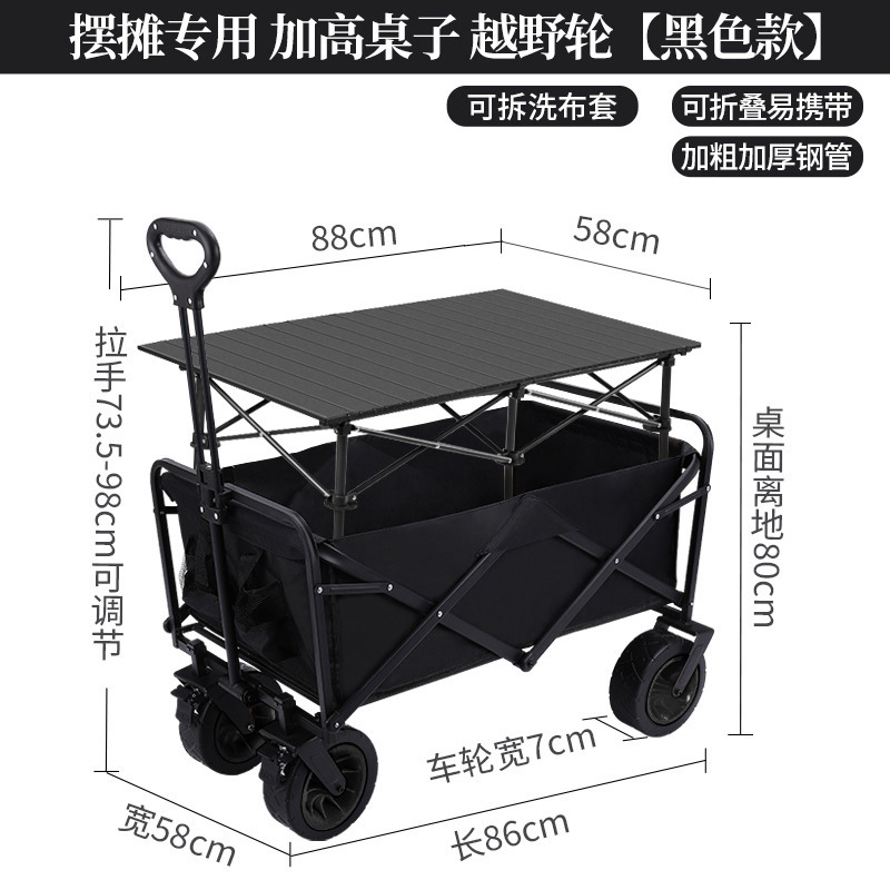• [노점 창업을 위한 최고의 선택] 8inch 오프로드 휠 카트 블랙 + 90 카본 스틸 테이블 블랙