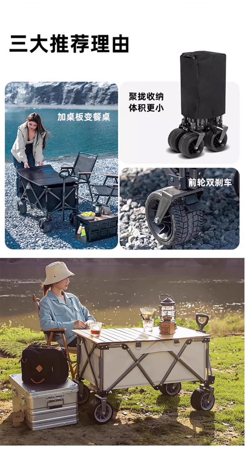• [노점 창업을 위한 최고의 선택] 8inch 오프로드 휠 카트 카키 + 90 카본 스틸 테이블 베이지