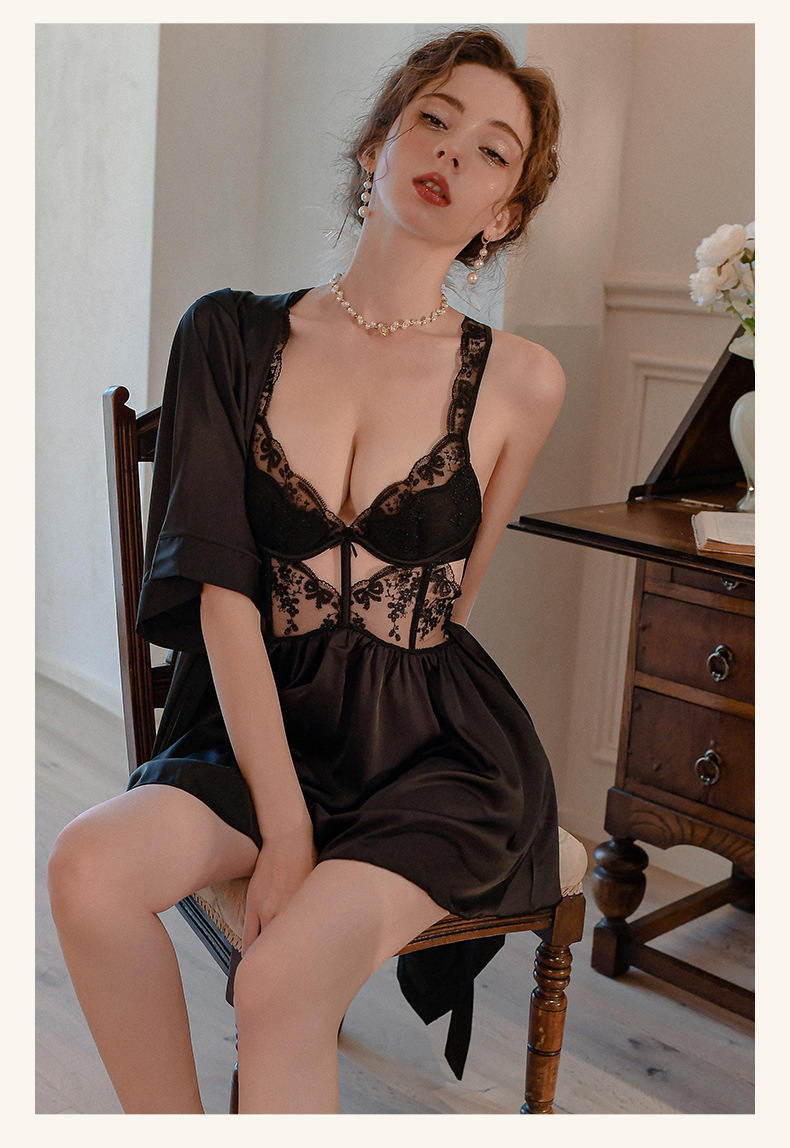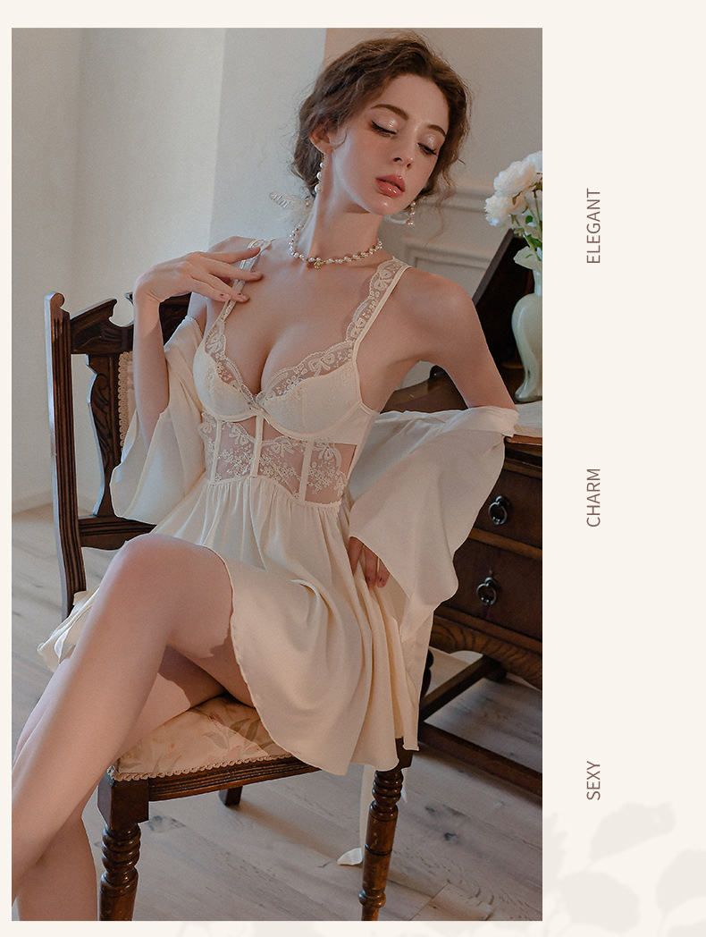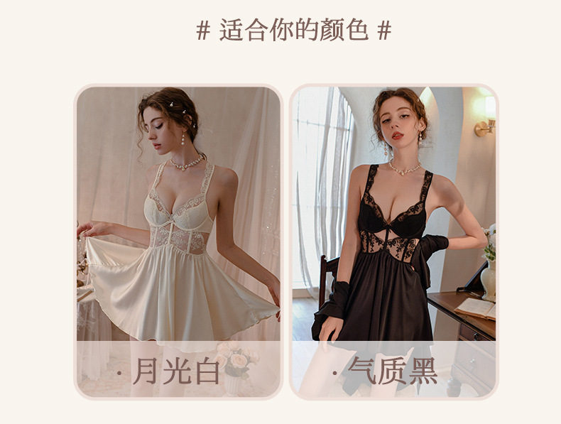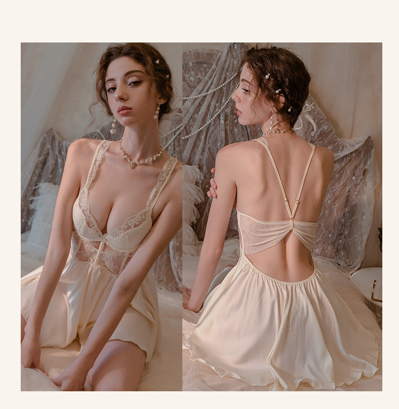 티몰 오리지널 섹시하고 매력적인 슬립 드레스, 편안하고 고급스러운 가슴 패드 내장 로맨틱 잠옷, 소녀풍 홈웨어