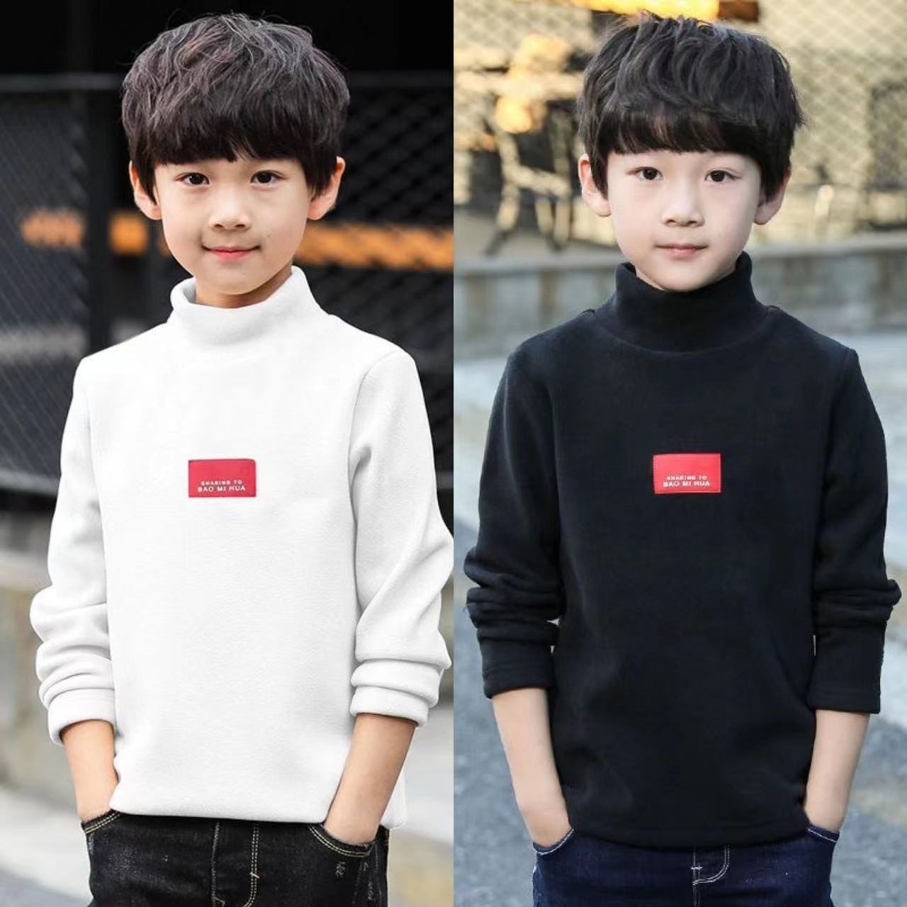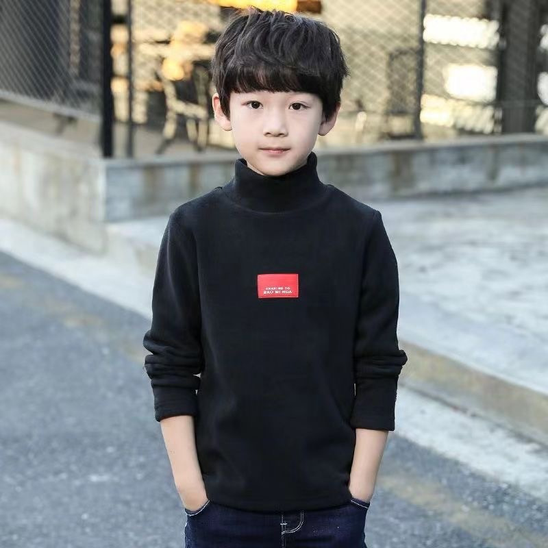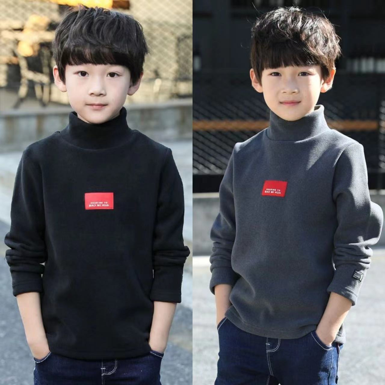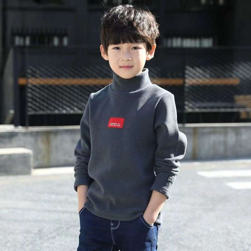 남학생 '반높이 칼라 기모 거점 셔츠 가을 · 겨울 어린이 긴팔 티셔츠 대형 어린이 양면 벨벳 웜탑