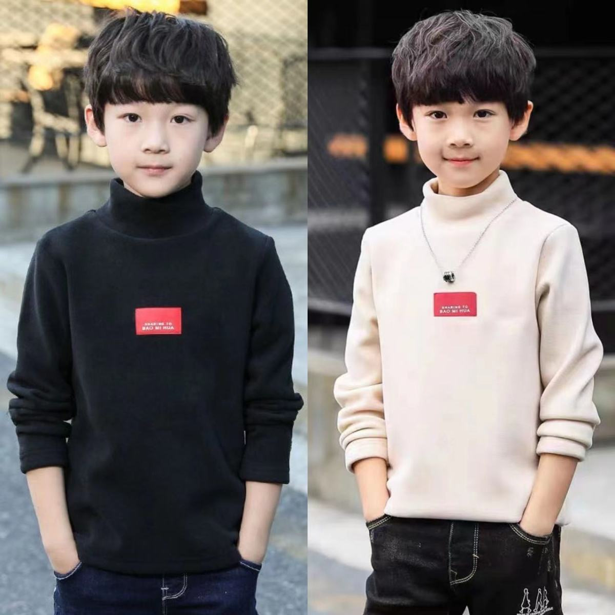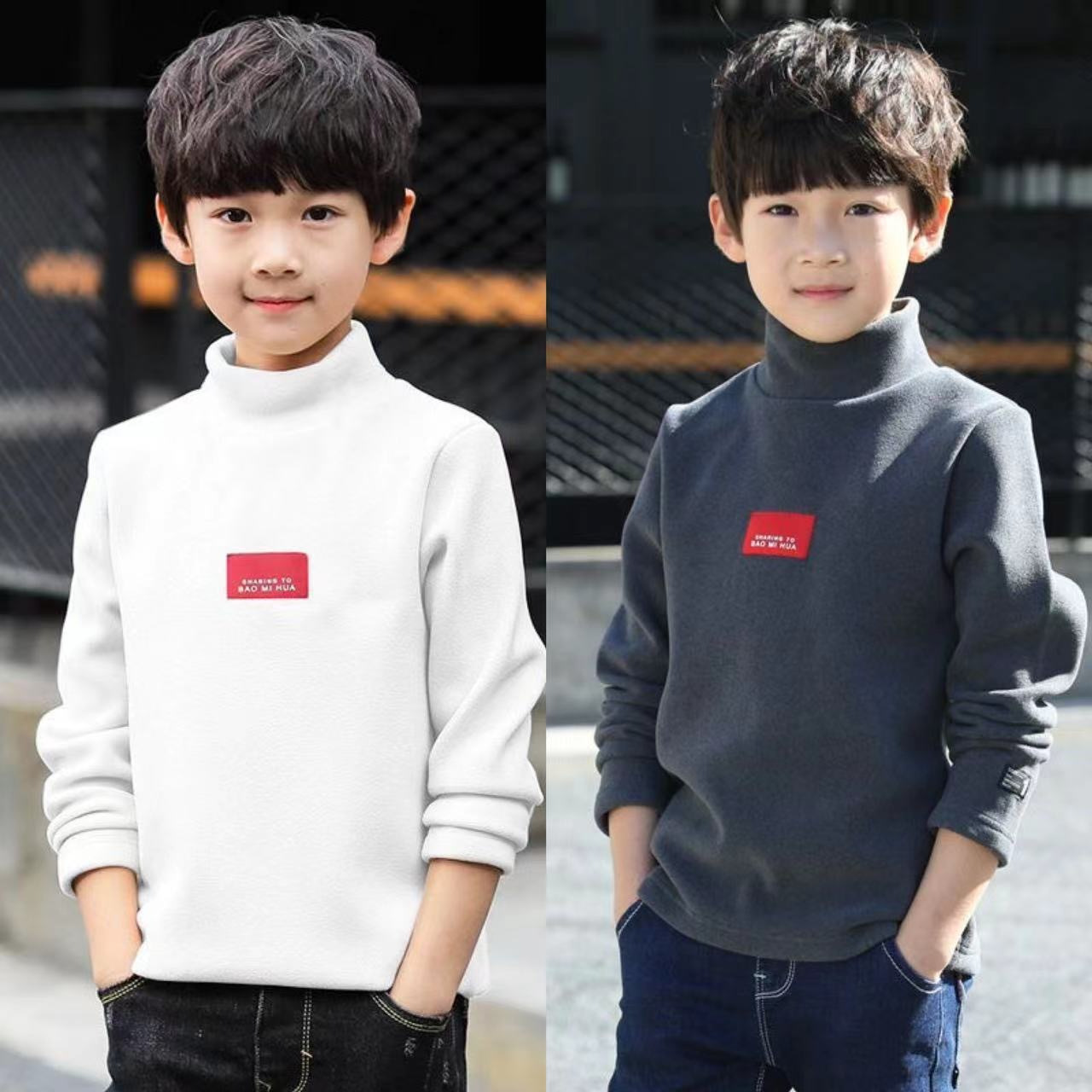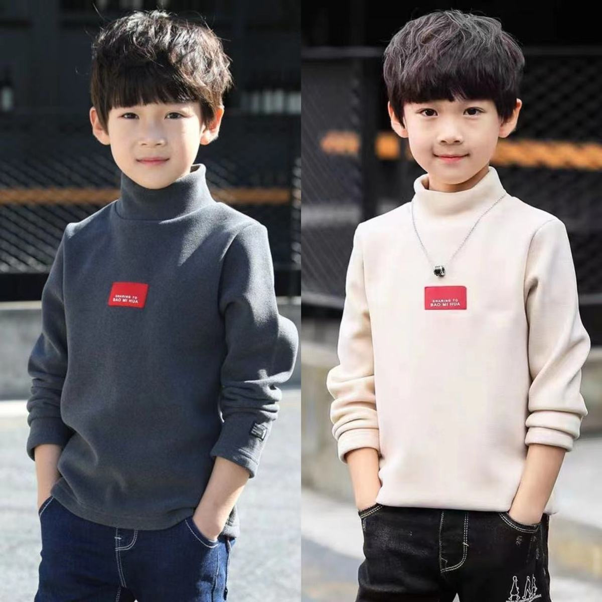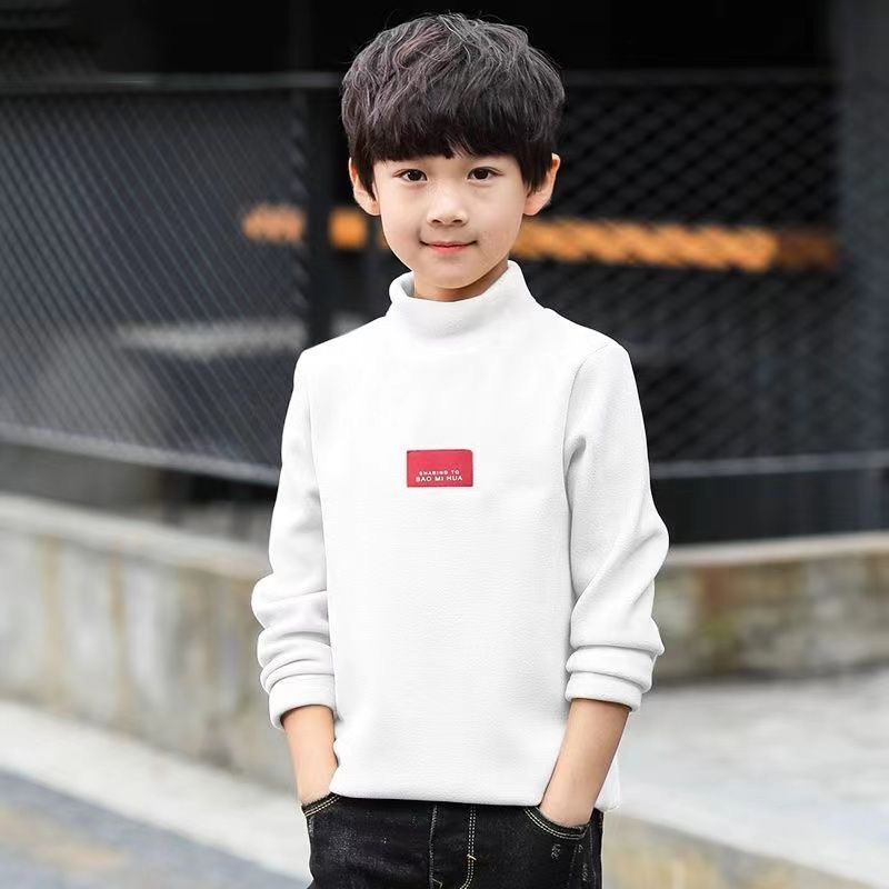 남학생 '반높이 칼라 기모 거점 셔츠 가을 · 겨울 어린이 긴팔 티셔츠 대형 어린이 양면 벨벳 웜탑