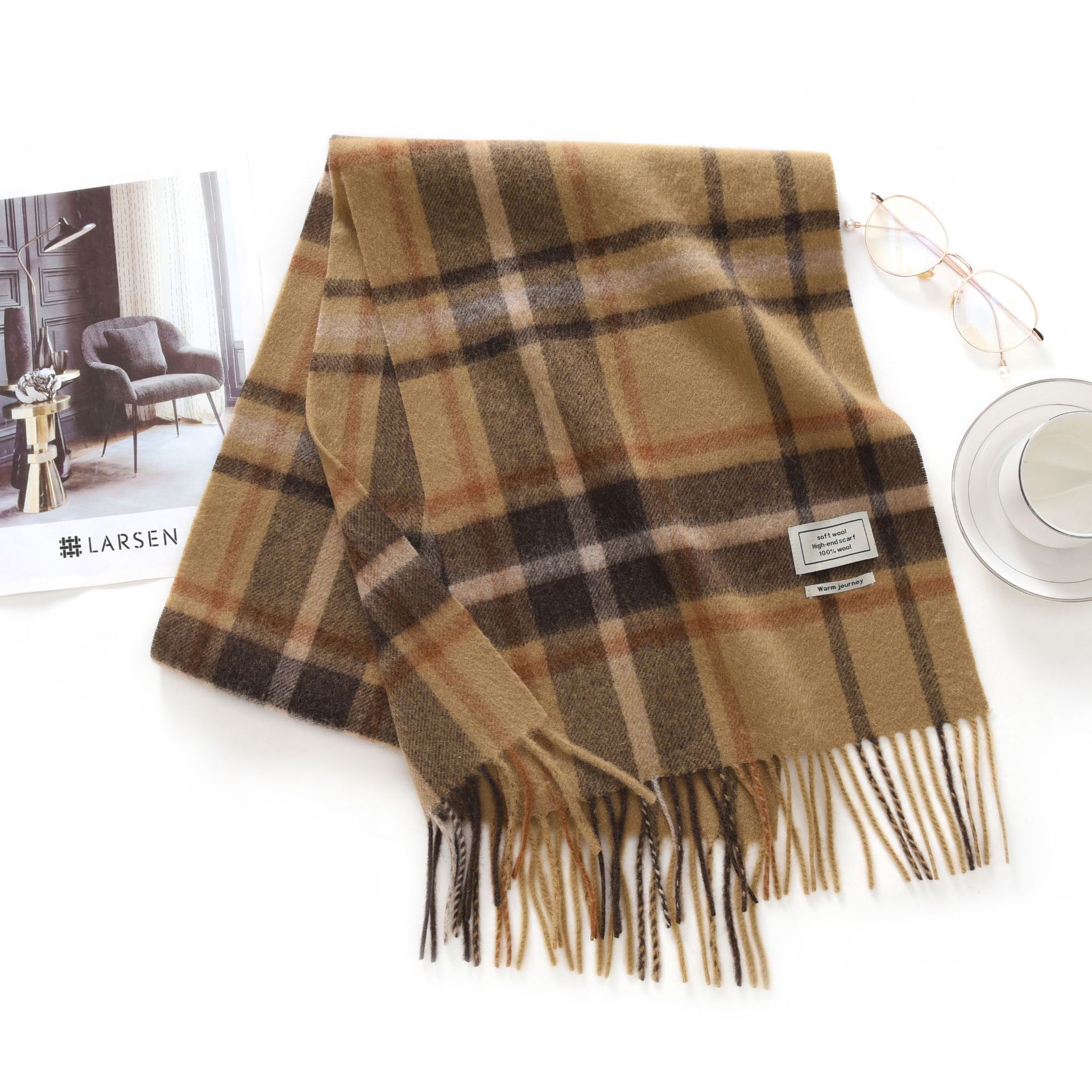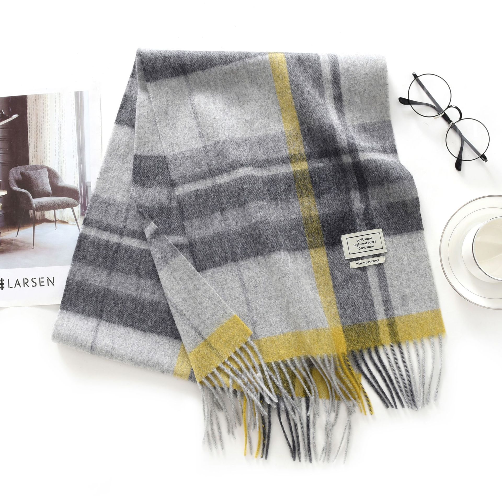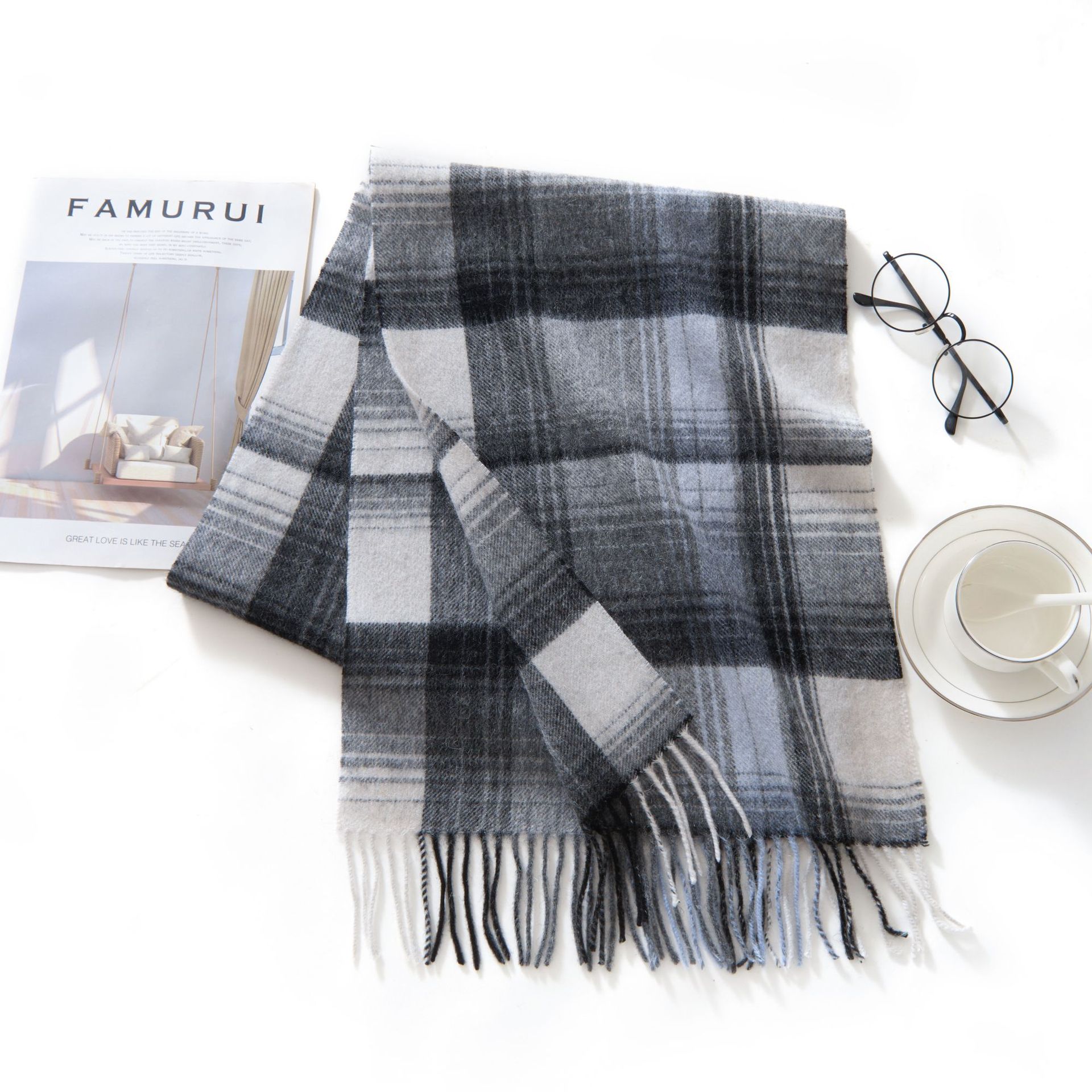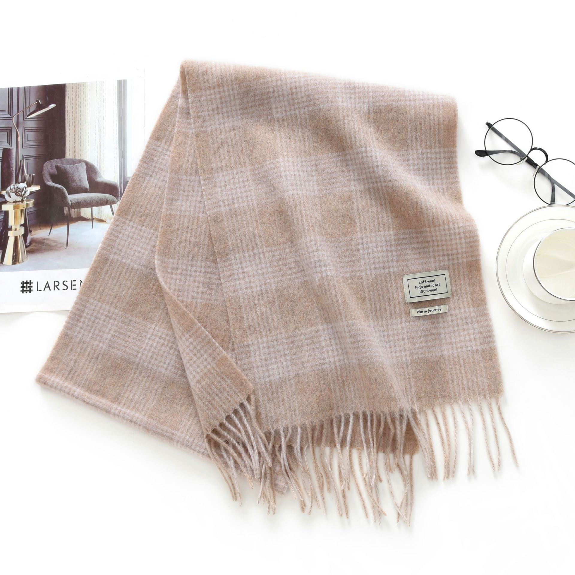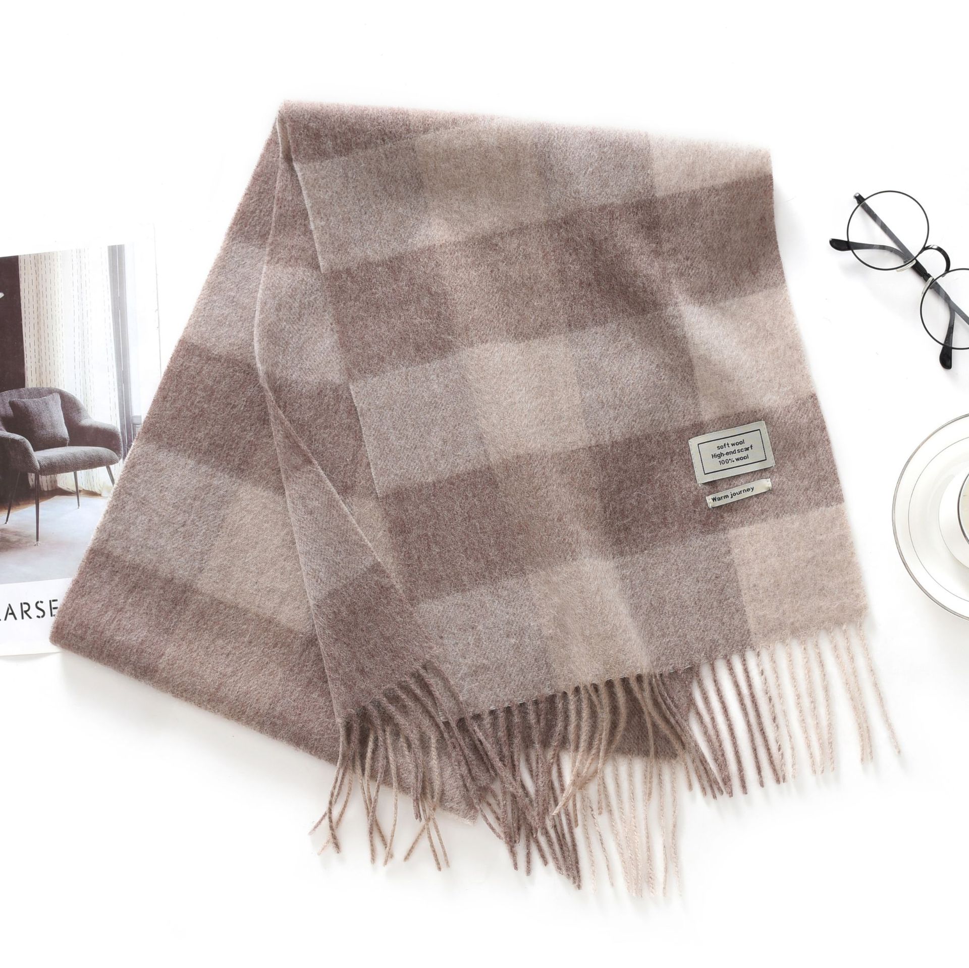 新款英伦格子100羊毛秋冬绒色围巾男女通用流苏保暖围脖情侣披肩30RMB立即购买>