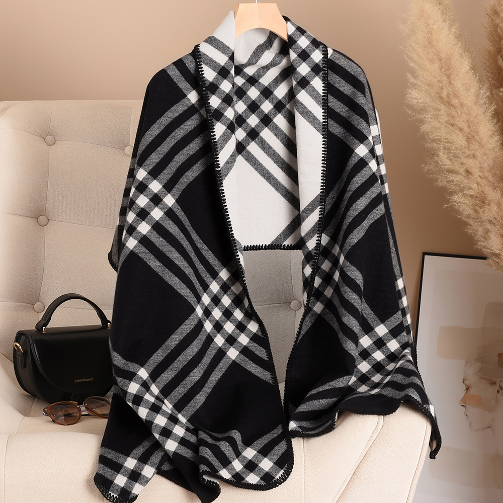 韩版黑色仿羊绒围巾女冬季高级感双面格子纹保暖围脖加厚百搭披肩25.5RMB立即购买>