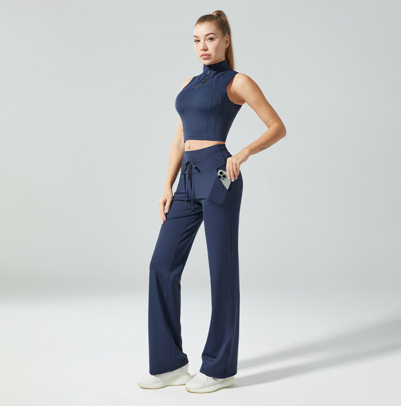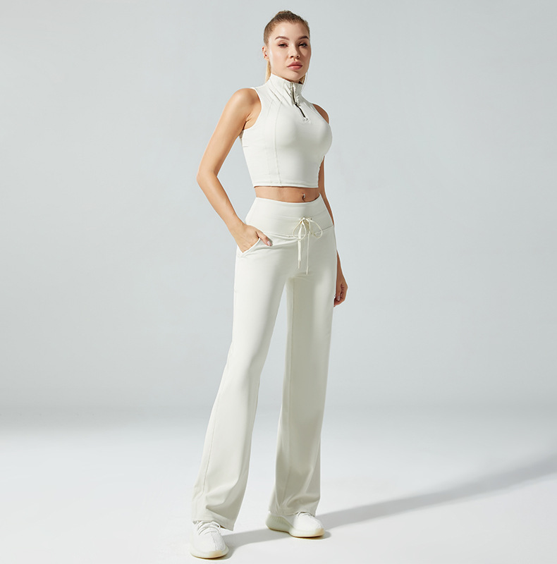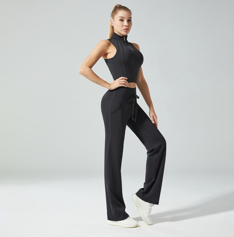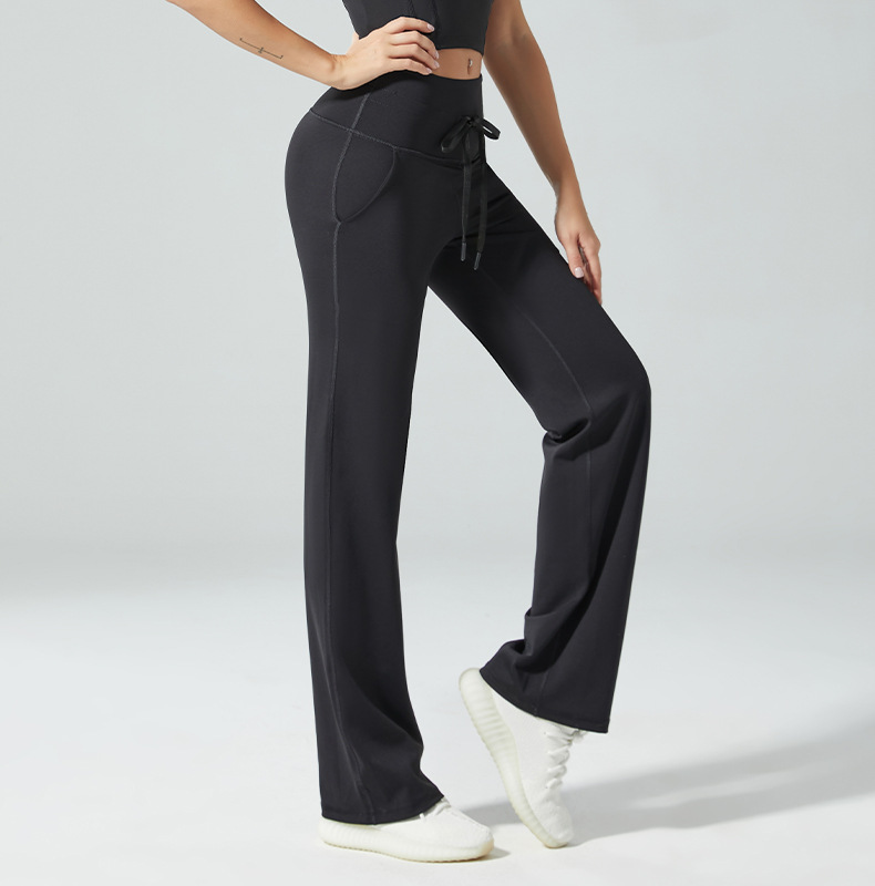 QICIFIER Qiancai Feier 패션 피트니스 마이크로 바지 스트레이트 캐주얼 스포츠 요가 바지 여성 5077