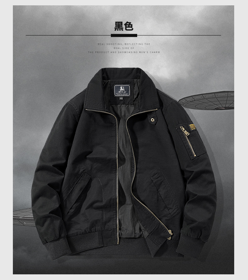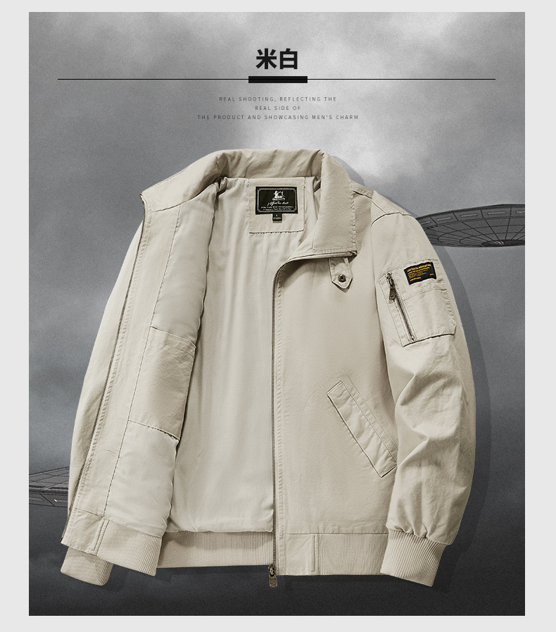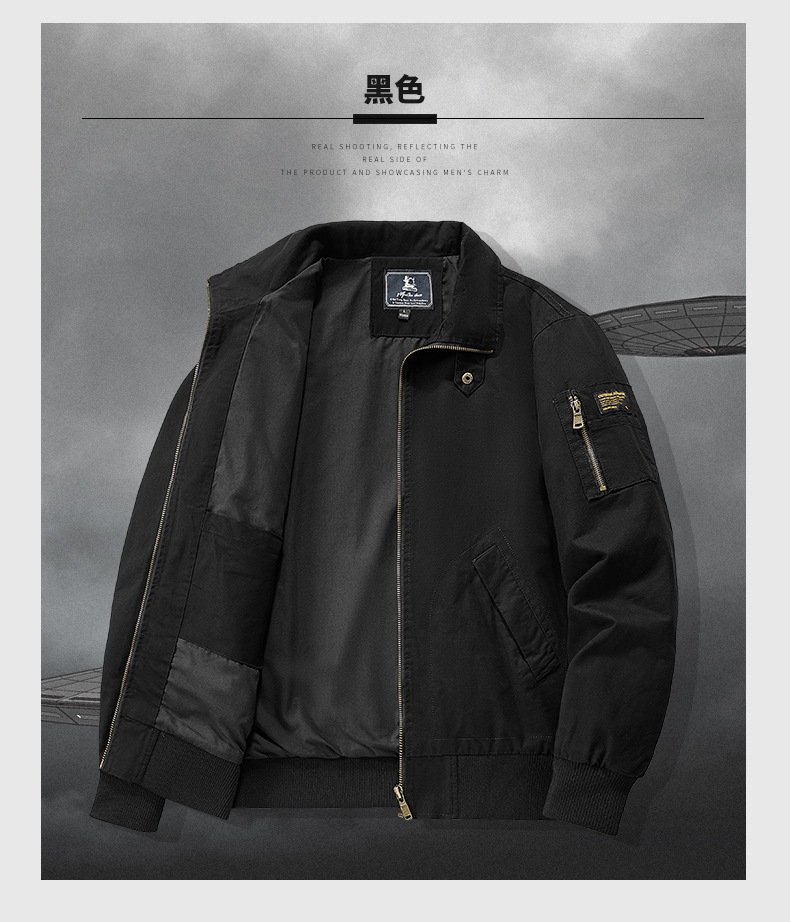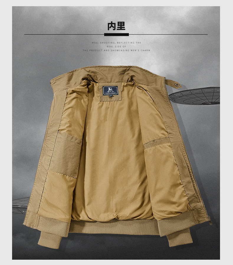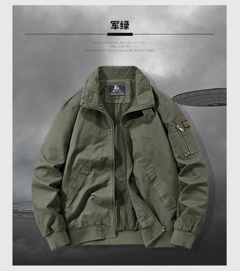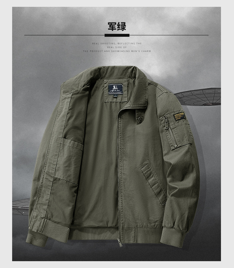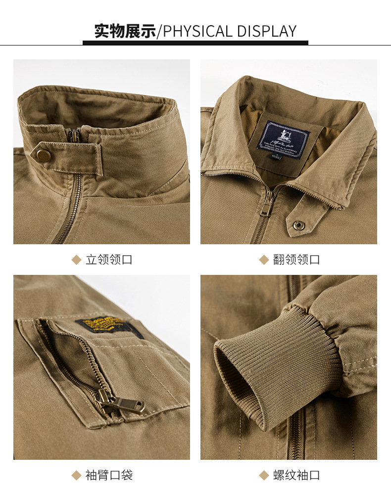 봄과 가을 남성용 퓨어 코튼 재킷 젊고 중년의 퓨어 코튼 캐주얼 루즈 재킷 아마존 지퍼 플라잉 재킷 트렌디