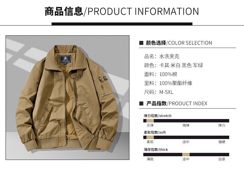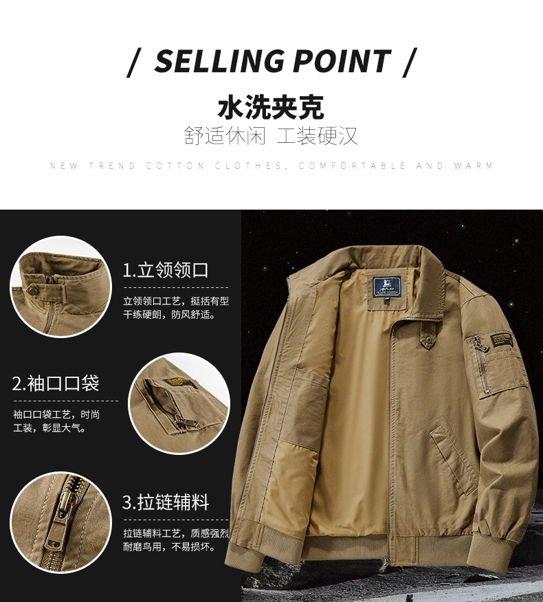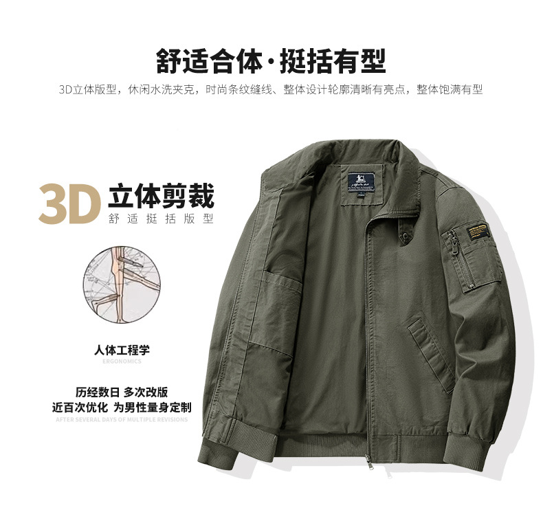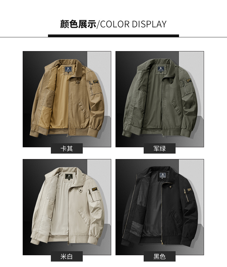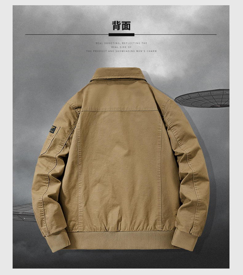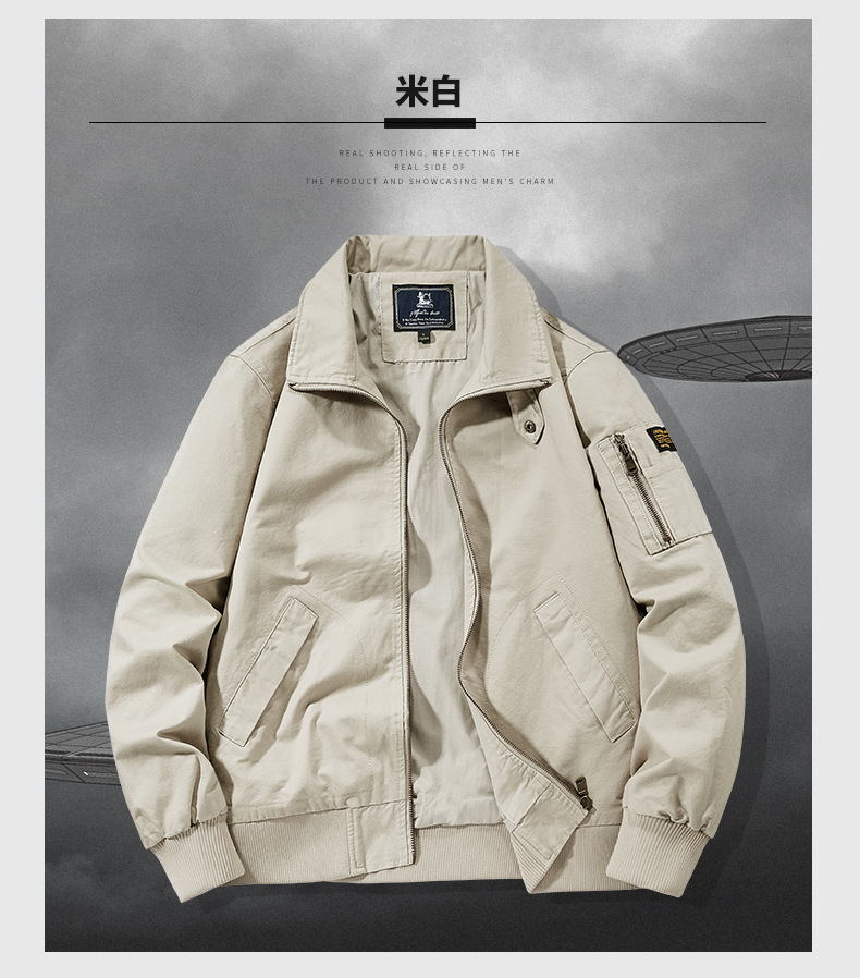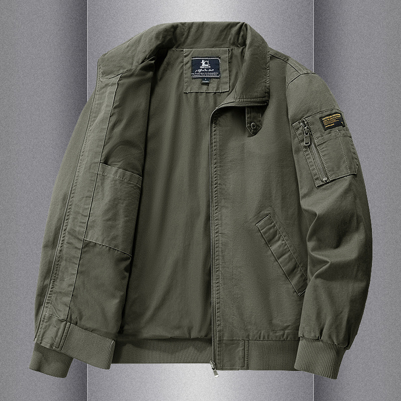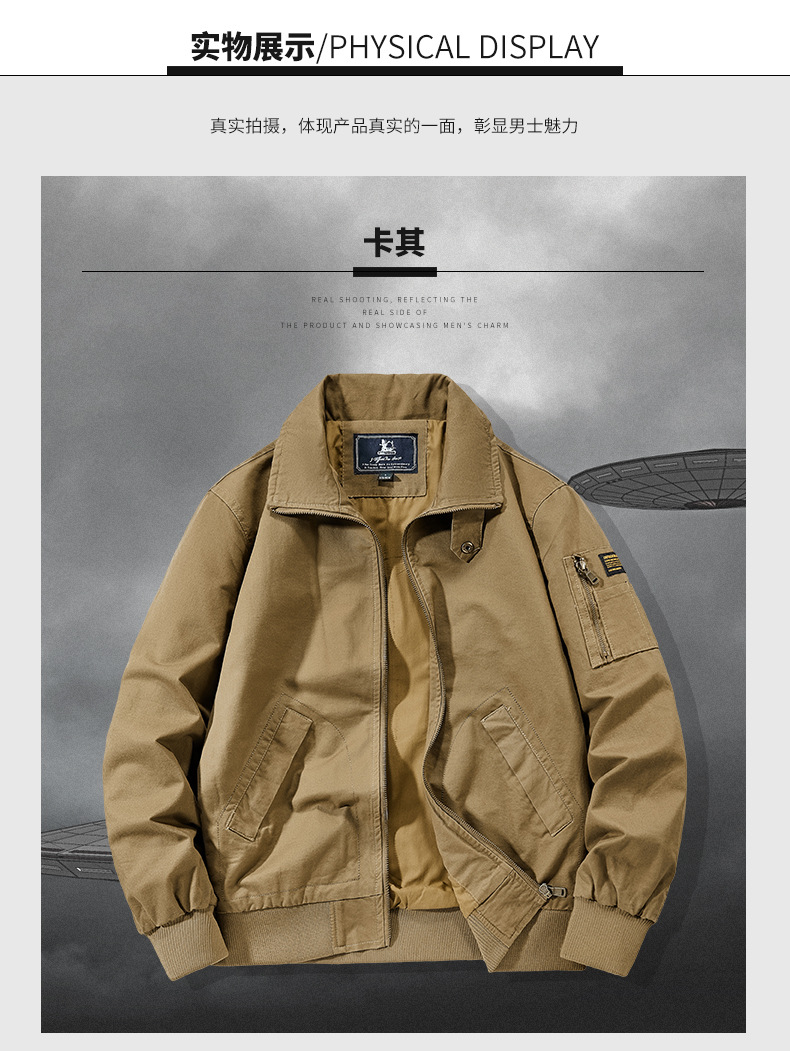 봄과 가을 남성용 퓨어 코튼 재킷 젊고 중년의 퓨어 코튼 캐주얼 루즈 재킷 아마존 지퍼 플라잉 재킷 트렌디