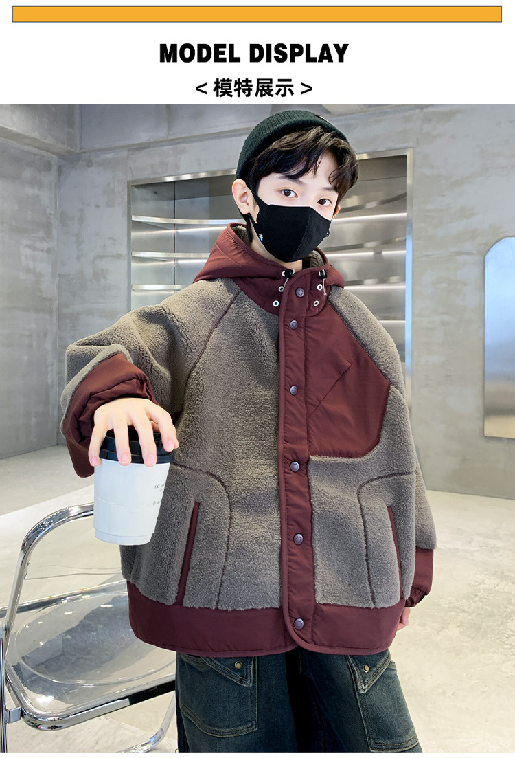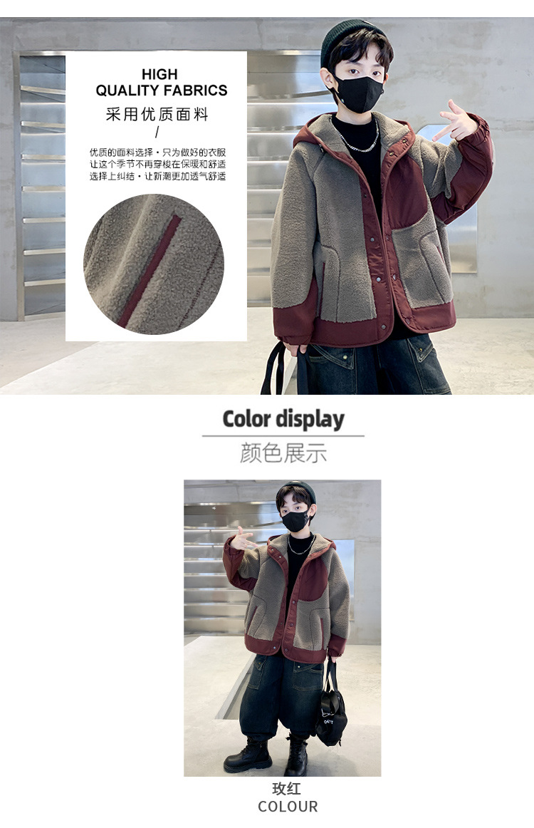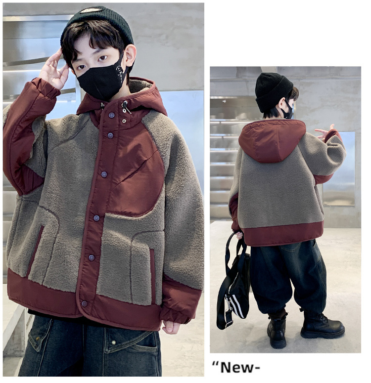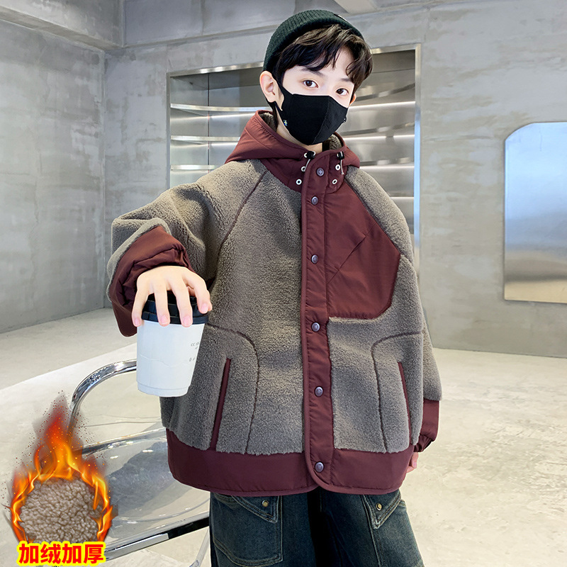 소년의 겨울 후드 모직 스웨터 코트 2024 새로운 어린이 서양식 기모 두꺼운 따뜻한 코트 코트스토어 가기