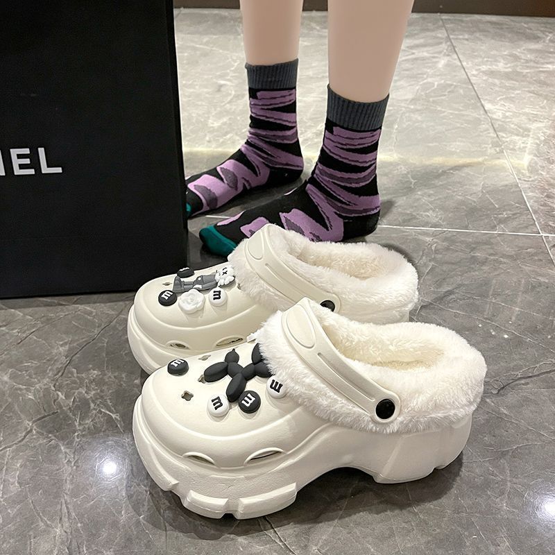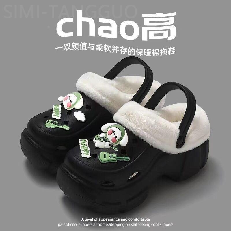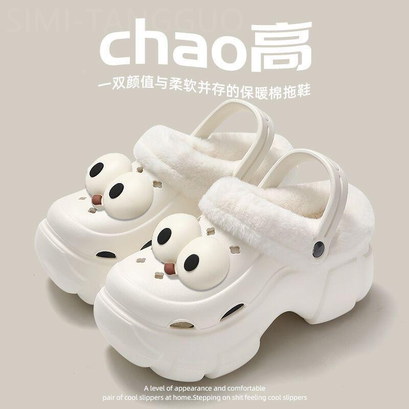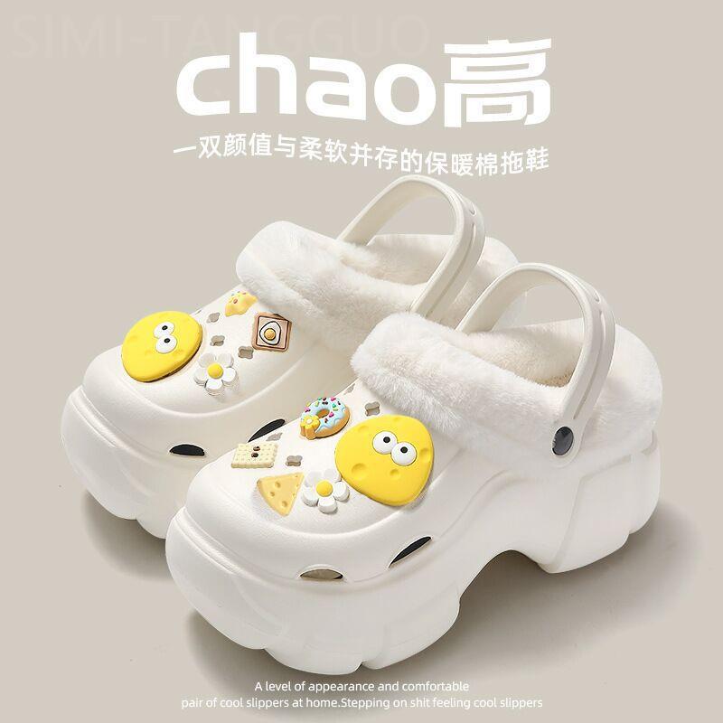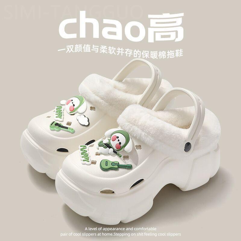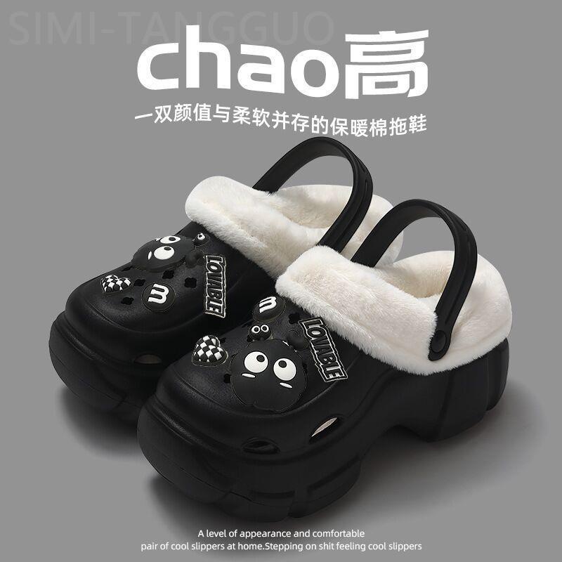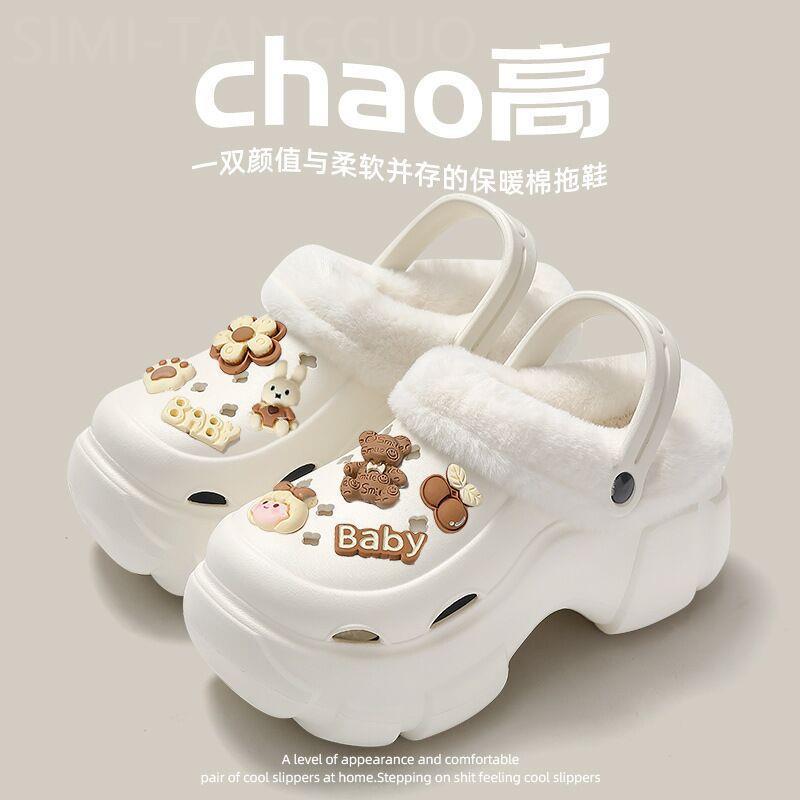 가을과 겨울 면화 슬리퍼 여성용 EVA 경량 높이 증가 실내 두꺼운 밑창 미끄럼 방지 따뜻한 봉제 슬리퍼스토어 가기