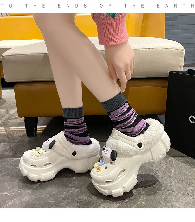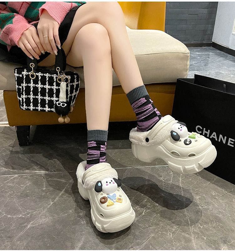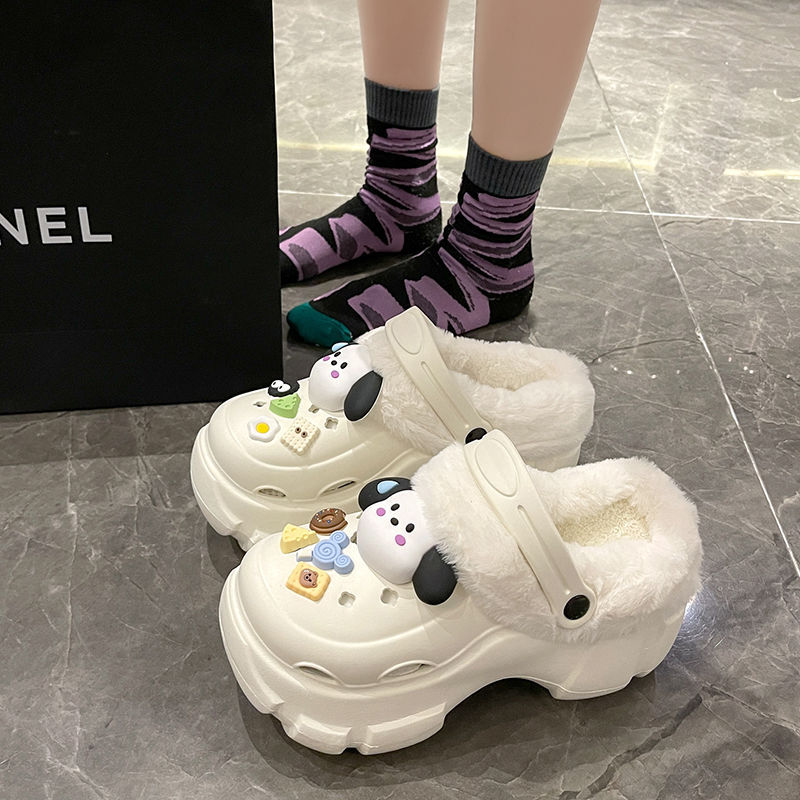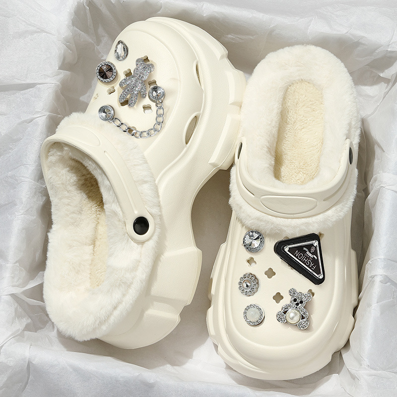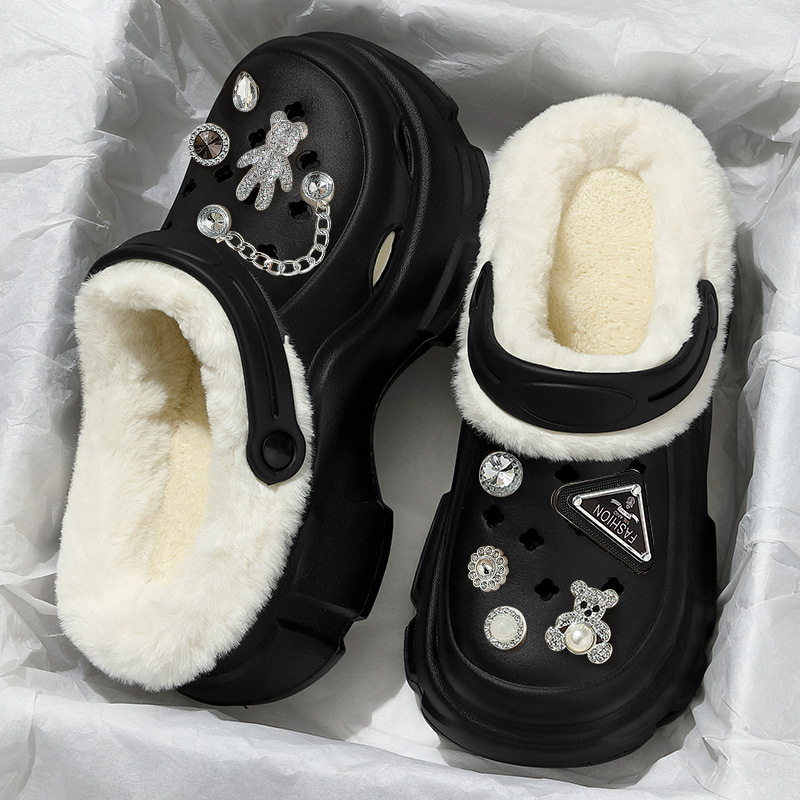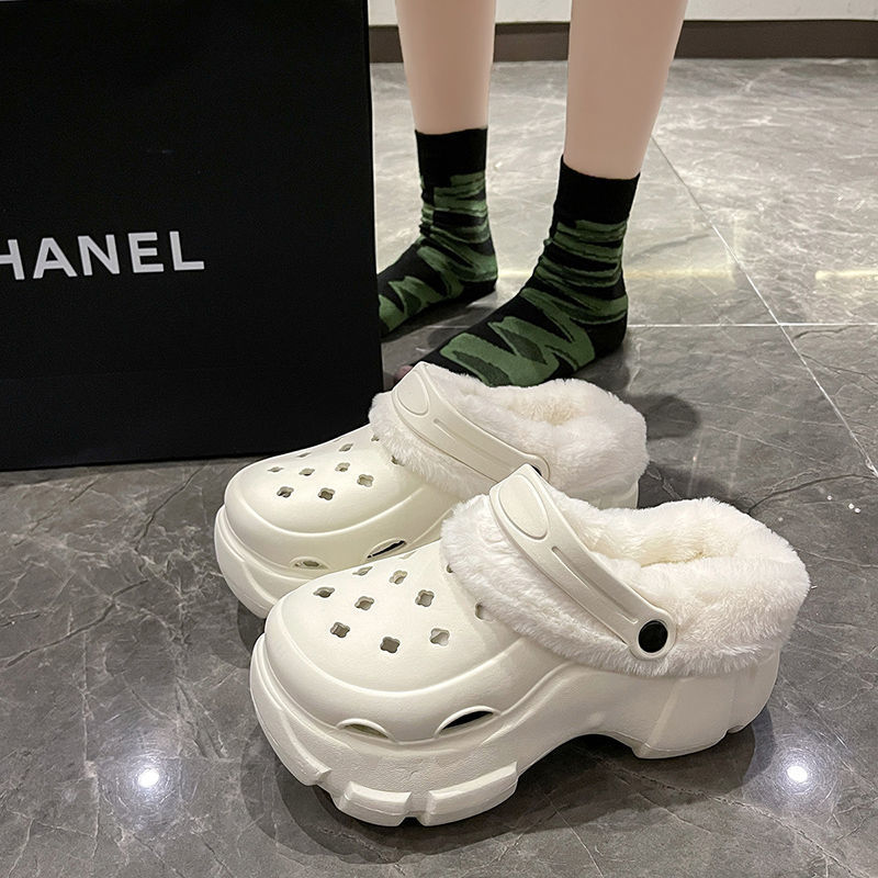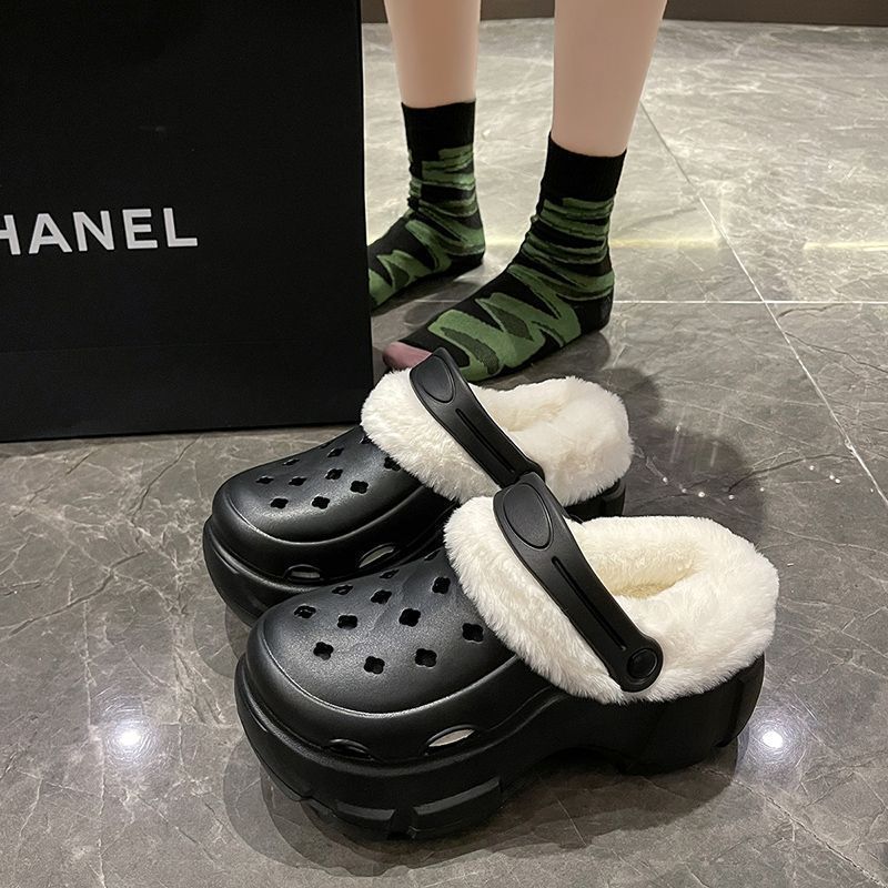 가을과 겨울 면화 슬리퍼 여성용 EVA 경량 높이 증가 실내 두꺼운 밑창 미끄럼 방지 따뜻한 봉제 슬리퍼스토어 가기