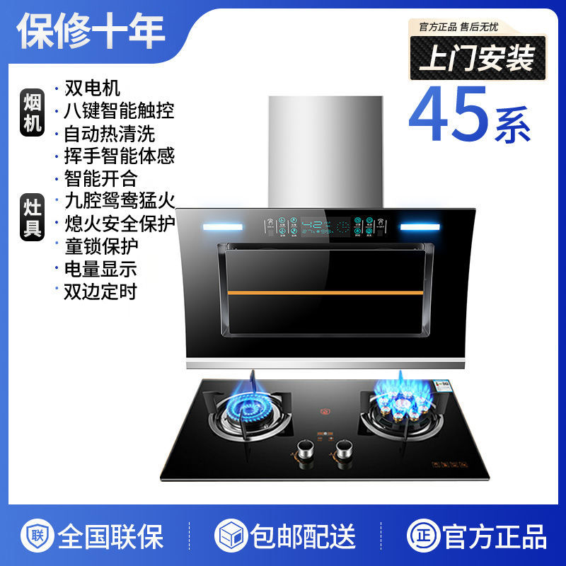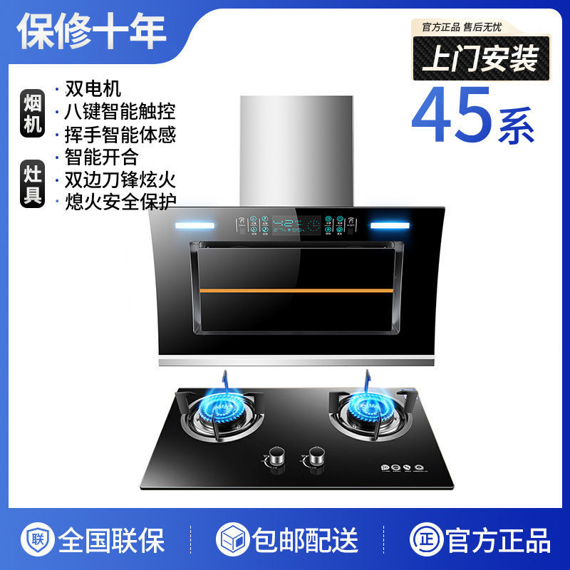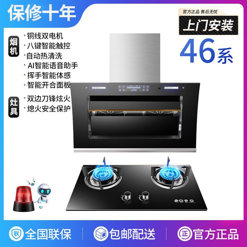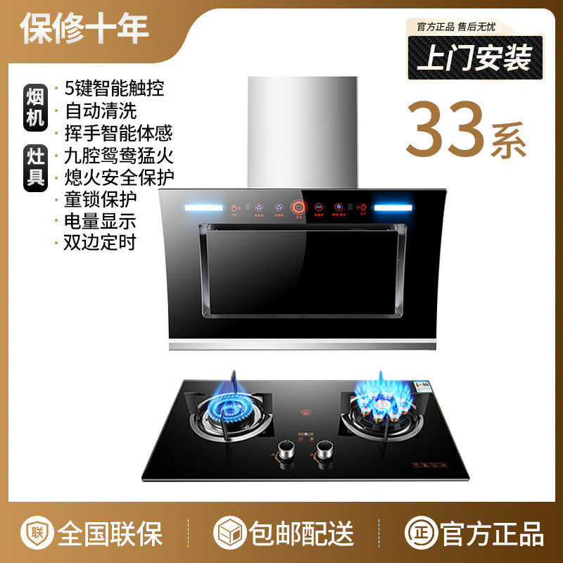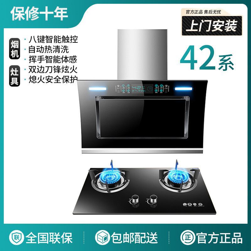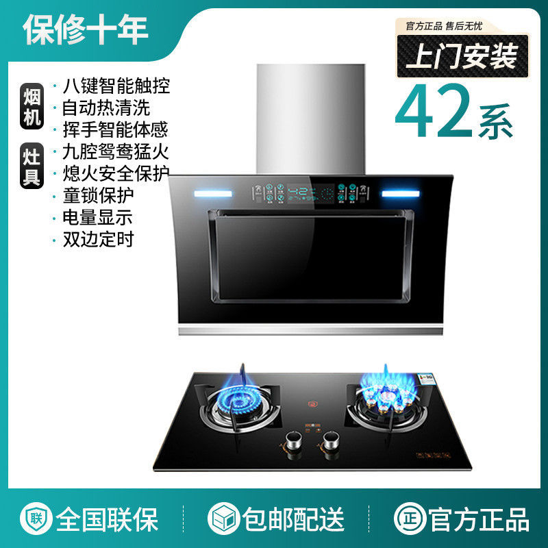 좋은 아내 측면 흡입 범위 후드 가스 스토브 2 피스 가정용 후드 대형 흡입 천연 가스 스토브 세트
