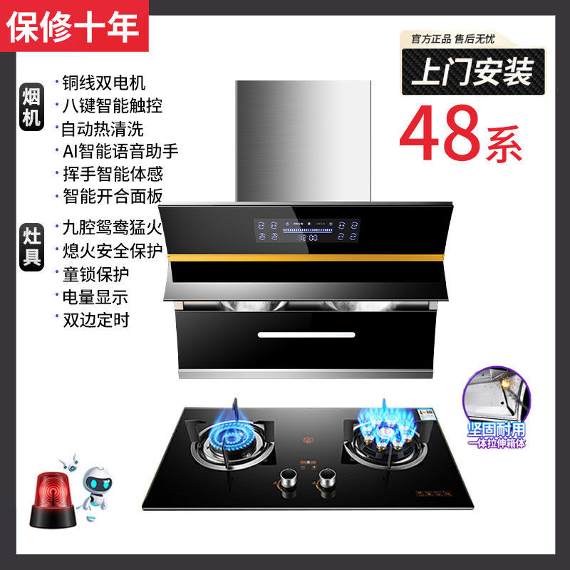 • Door-to-Door 설치 - 파이프 천연가스 [가스 소스를 잘못 선택하지 마세요] - 90 긴 8버튼 자동 개폐 후드 + 눈부신 화재 이중 스토브 [2종 세트]