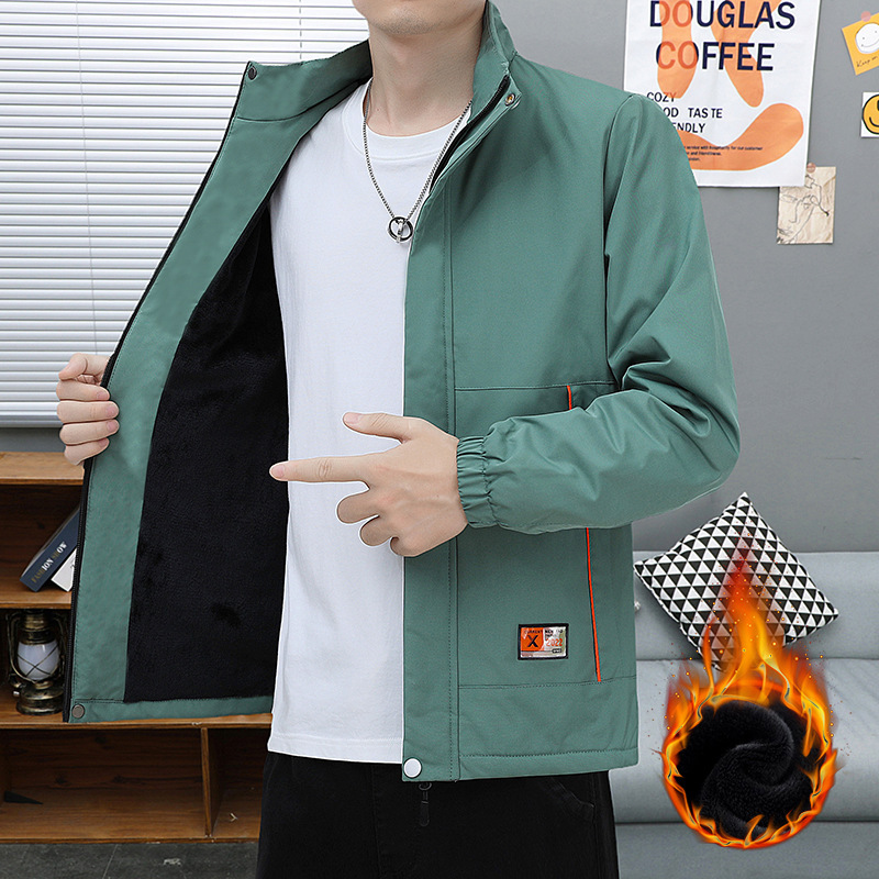 재킷 남성 봄, 가을 2025 새로운 재킷 남성 벨벳 두꺼운 청소년 유행 캐주얼 스탠드 칼라 탑 남성 의류