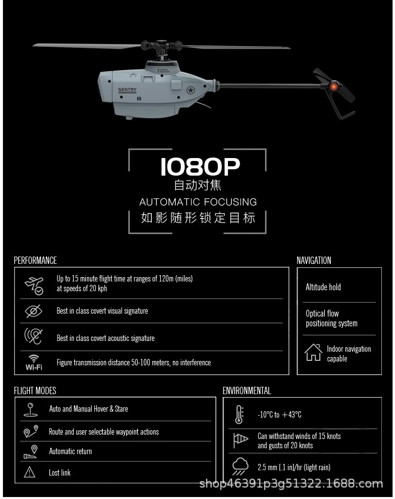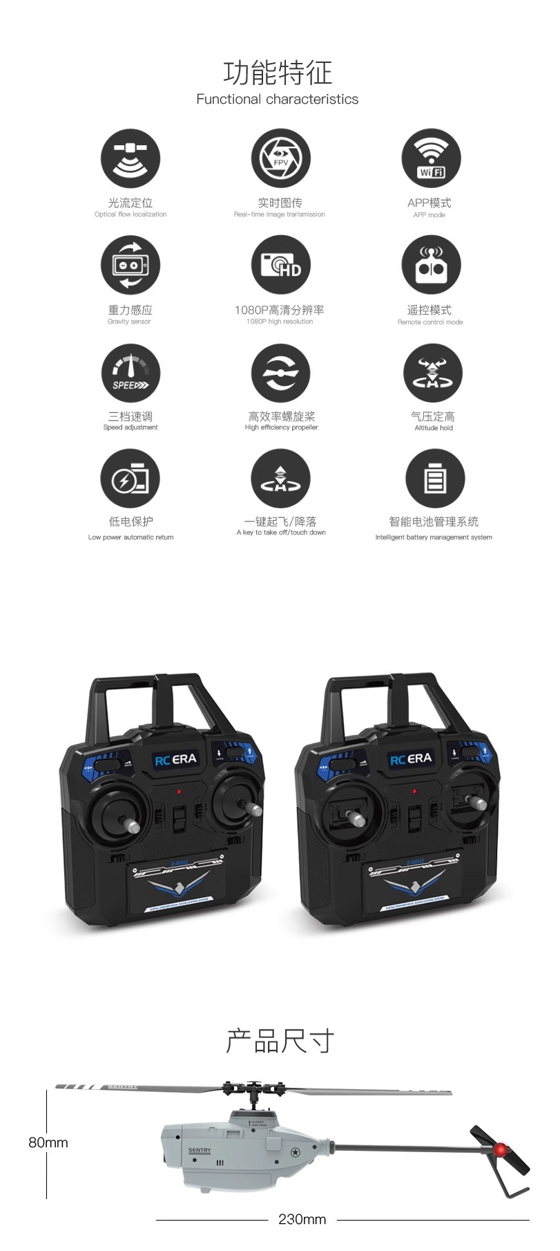 RC ERA 원격 제어 헬리콥터 C127 블랙 비드론 광학 흐름 브러시드 항공 사진 싱글 패들 플라이바리스 항공기스토어 가기