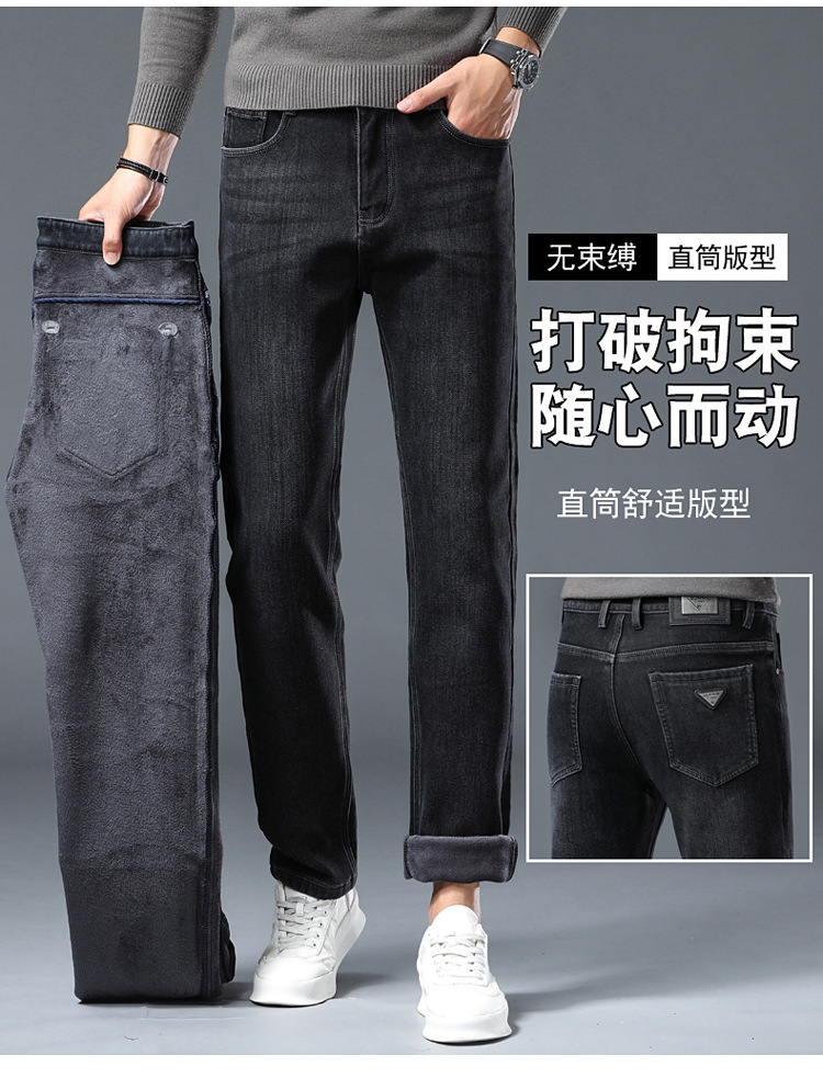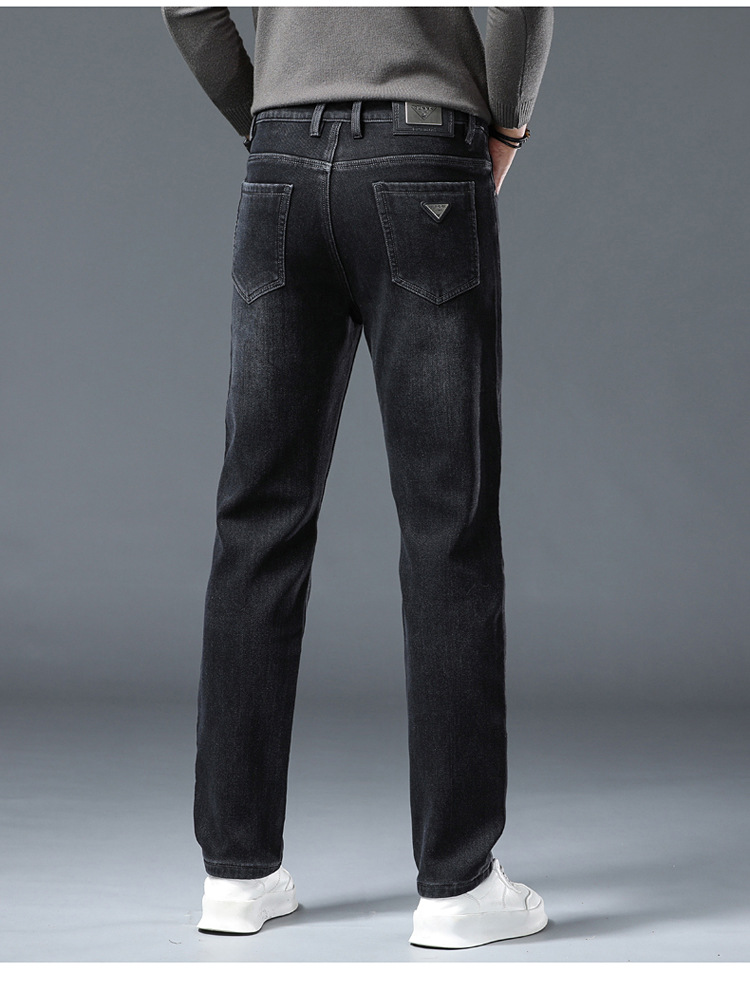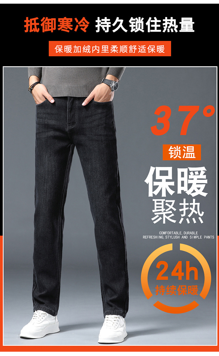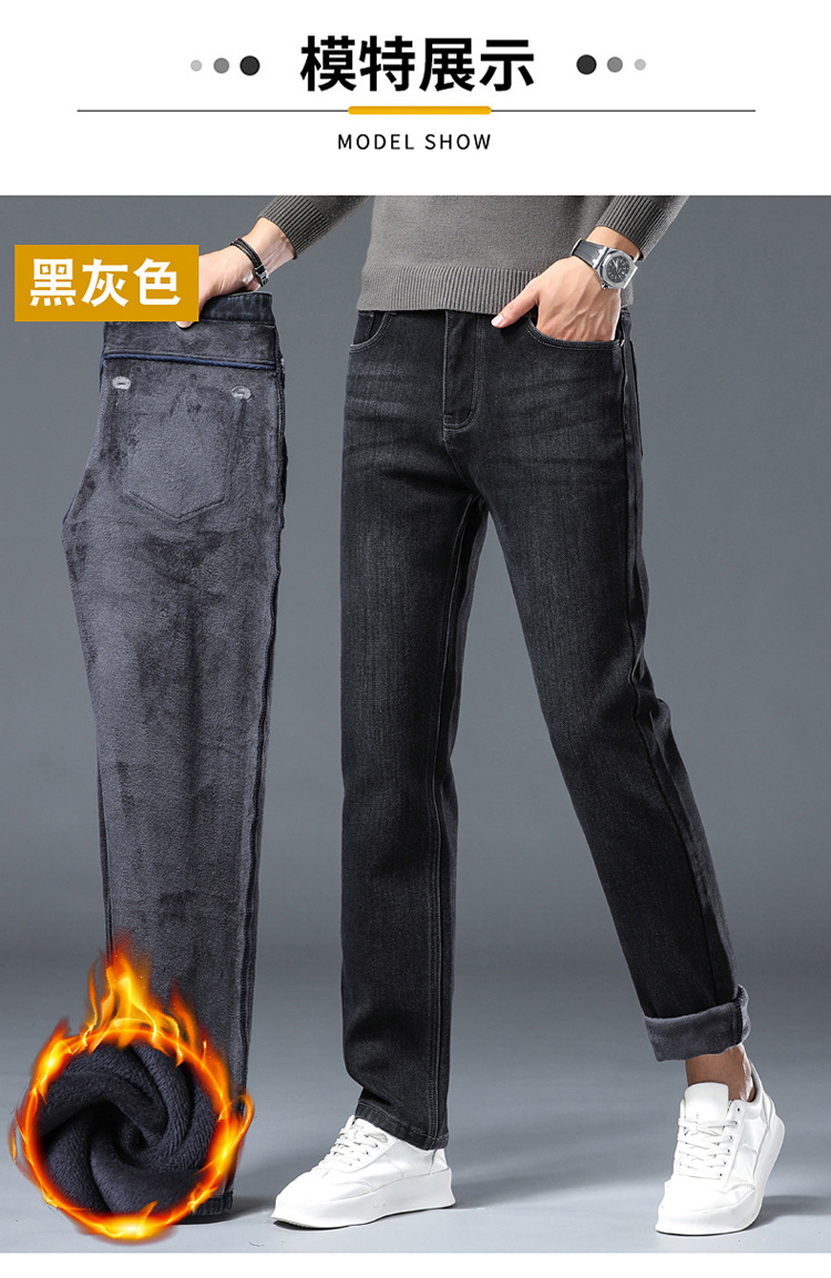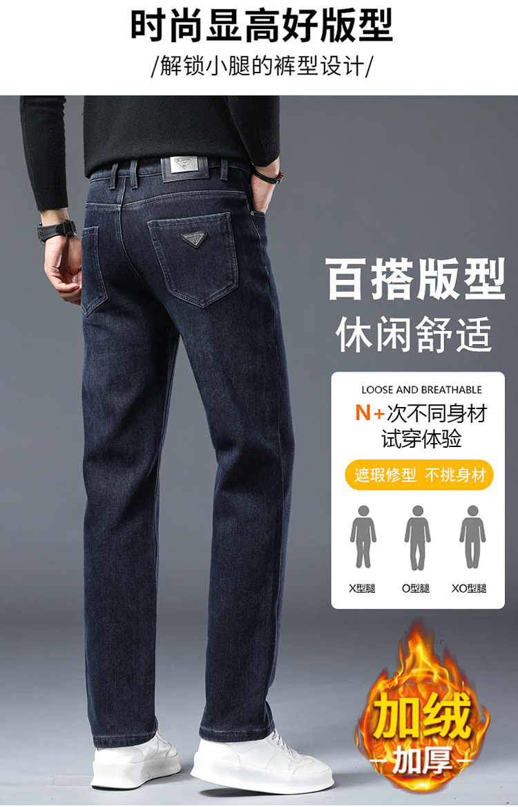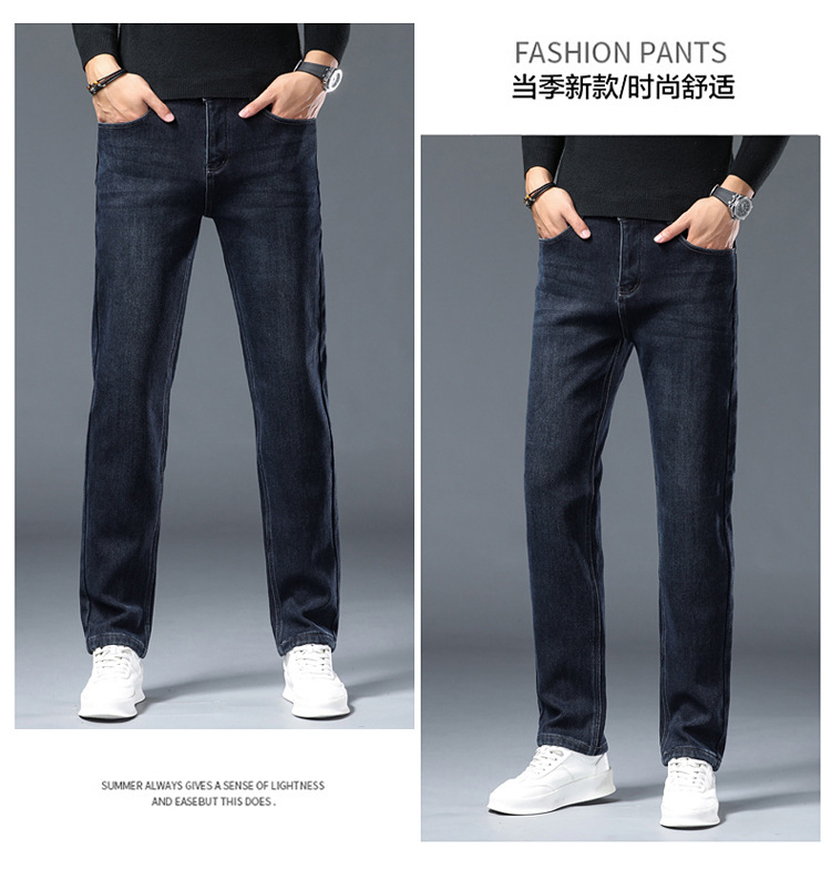 Daifa 2024 가을/겨울 기모 두꺼운 남자의 느슨한 직선 탄성 젊은 및 중년 비즈니스 캐주얼 데님 긴 바지스토어 가기