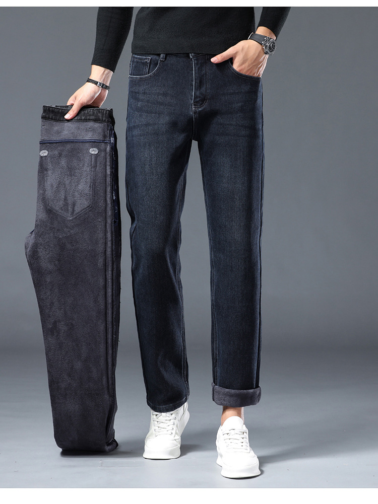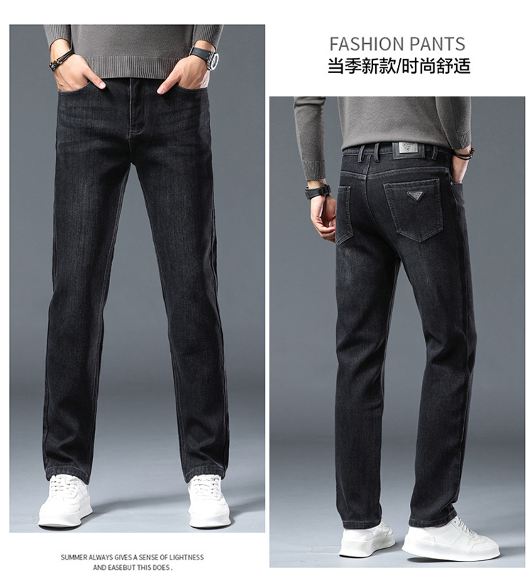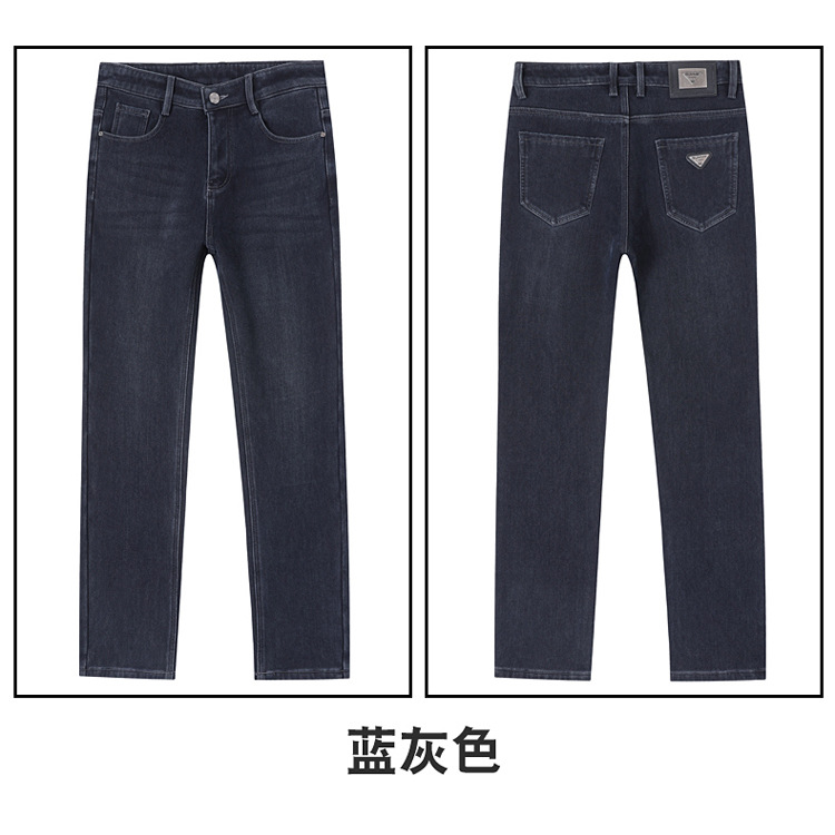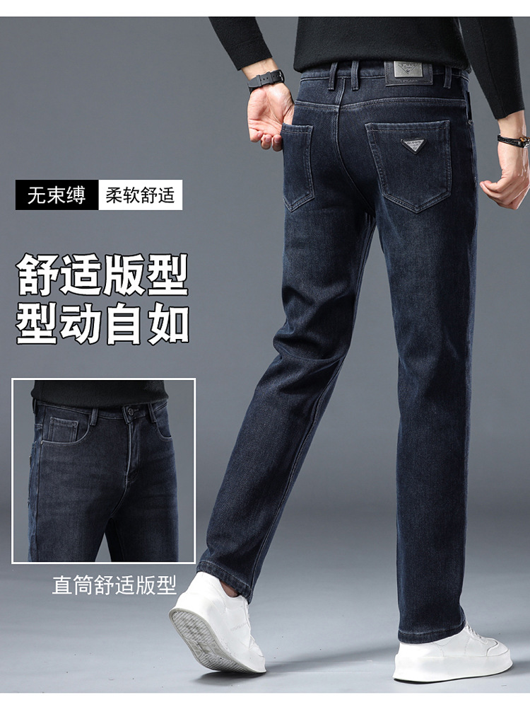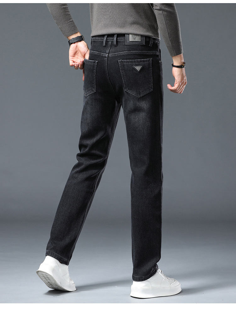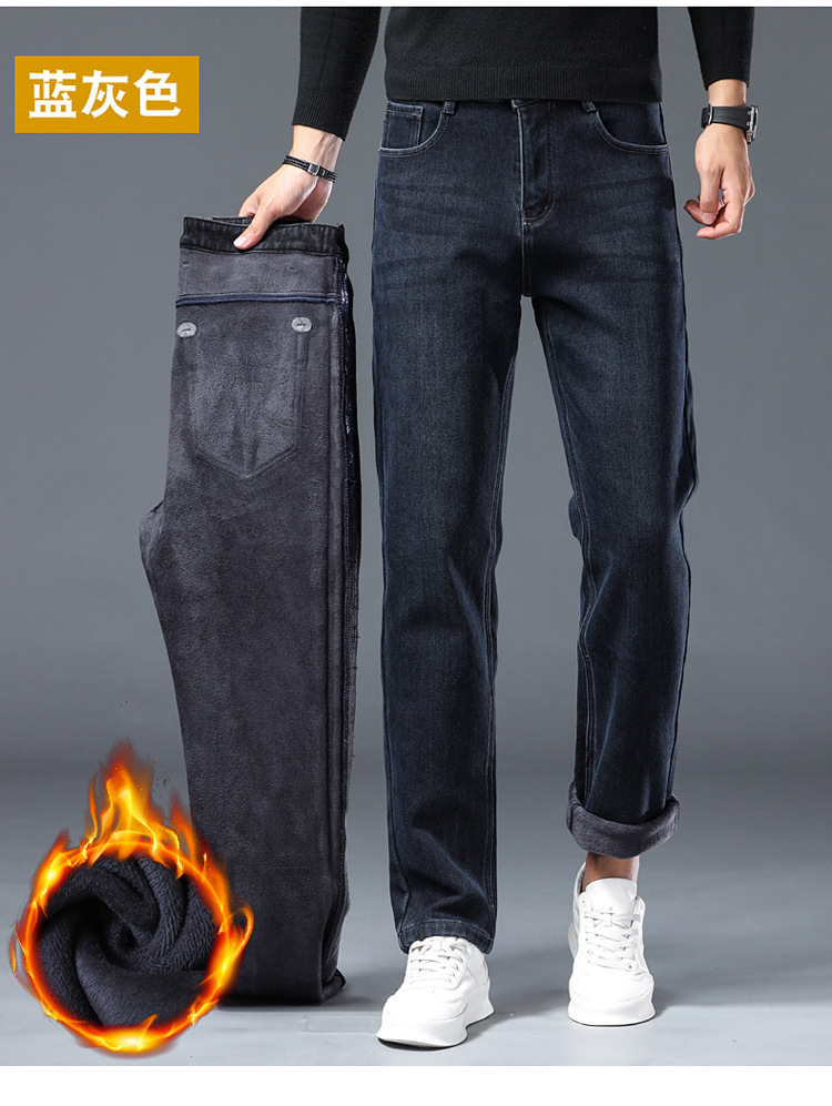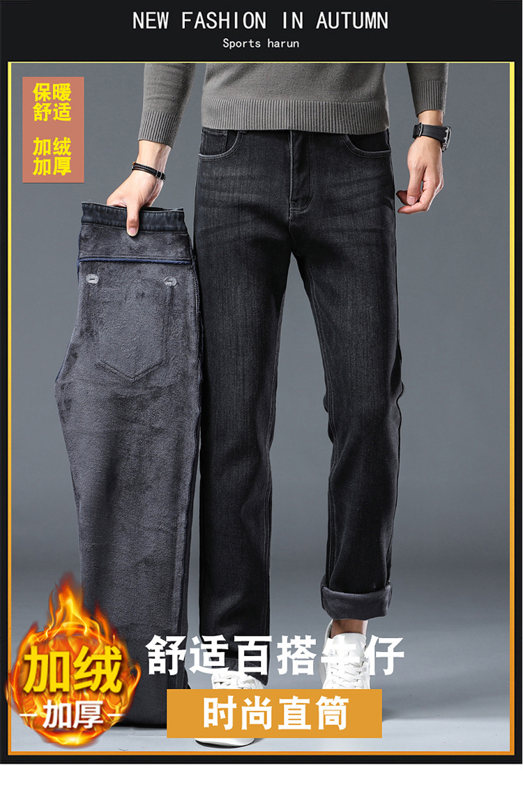 Daifa 2024 가을/겨울 기모 두꺼운 남자의 느슨한 직선 탄성 젊은 및 중년 비즈니스 캐주얼 데님 긴 바지스토어 가기