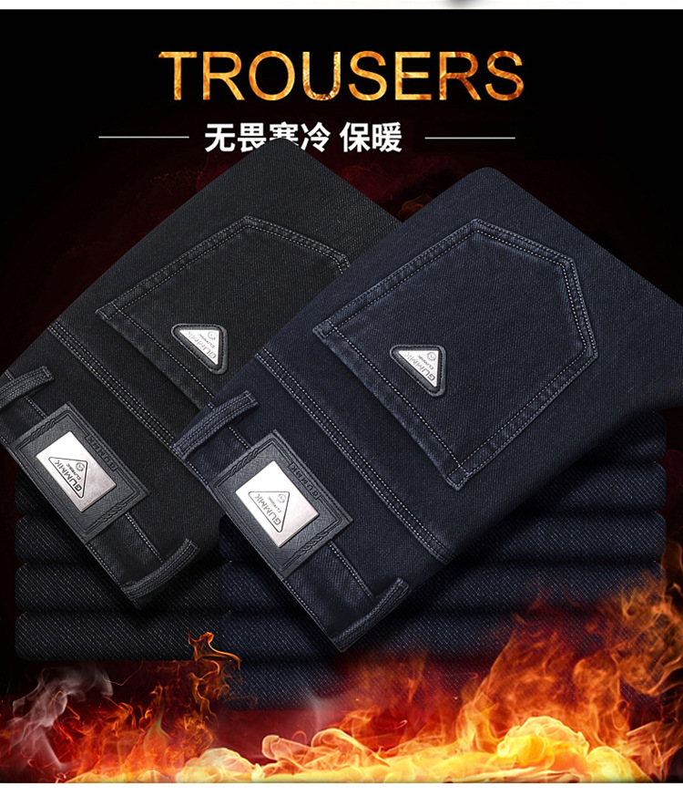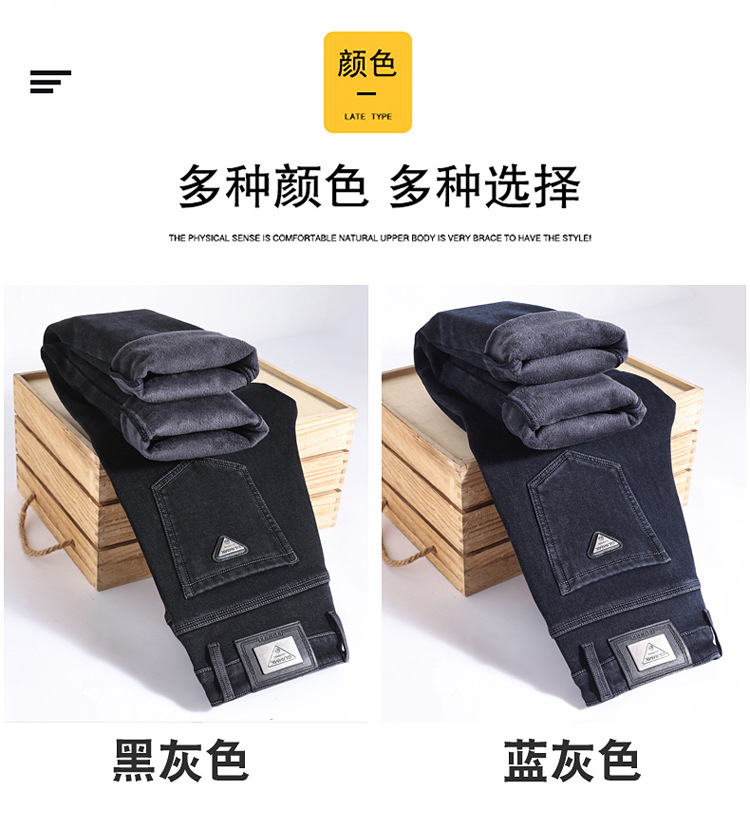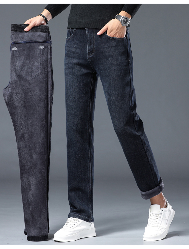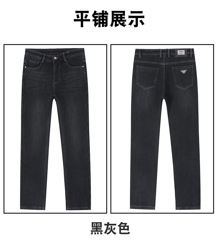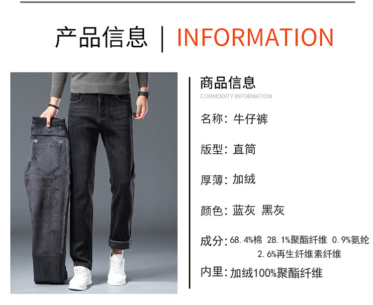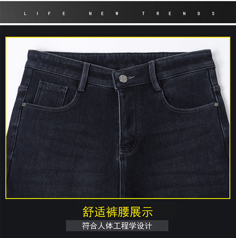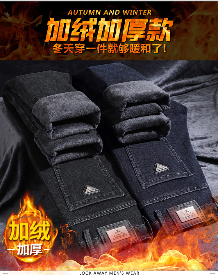 Daifa 2024 가을/겨울 기모 두꺼운 남자의 느슨한 직선 탄성 젊은 및 중년 비즈니스 캐주얼 데님 긴 바지스토어 가기