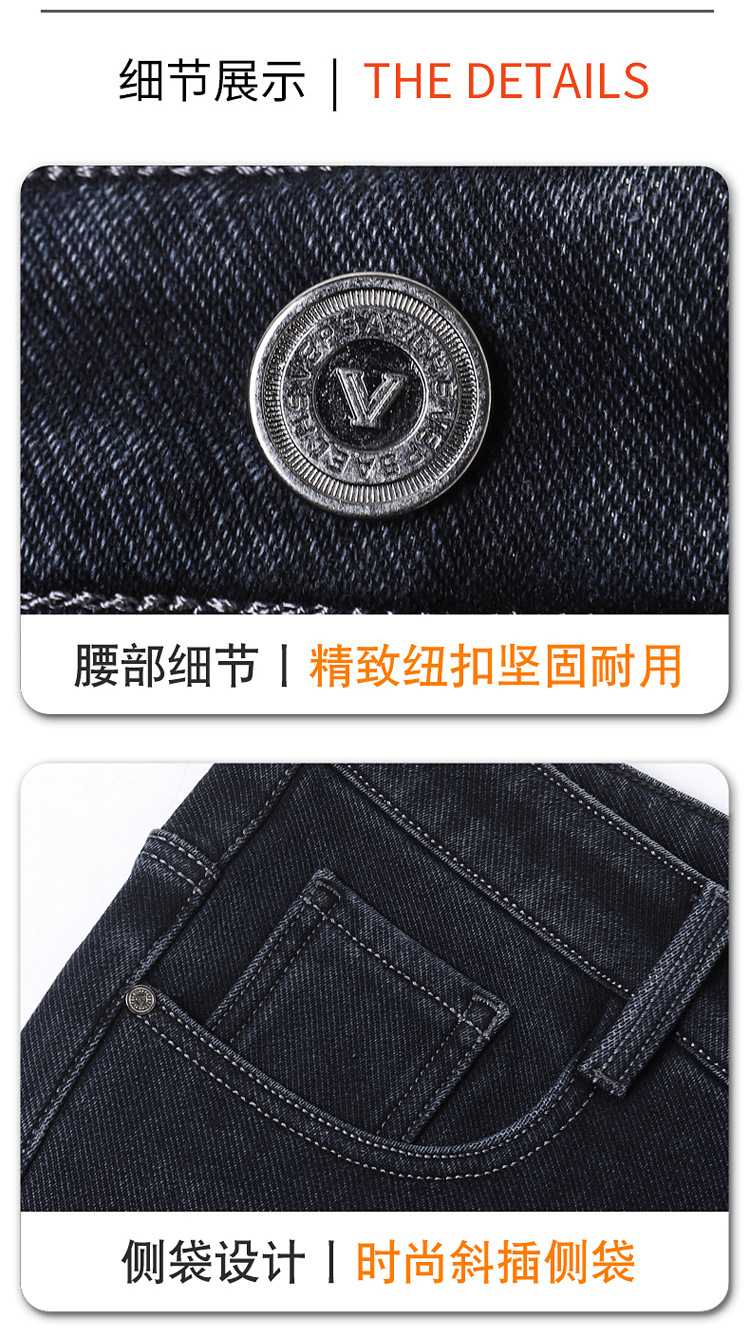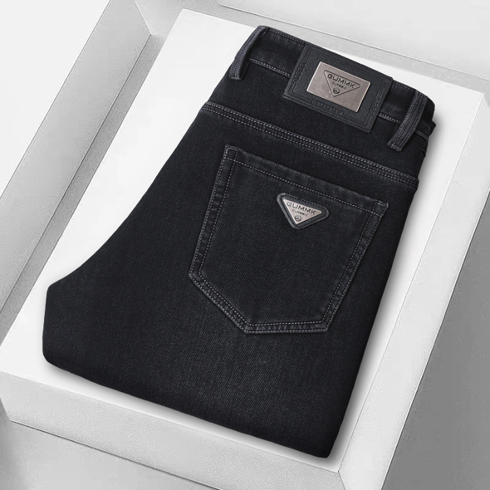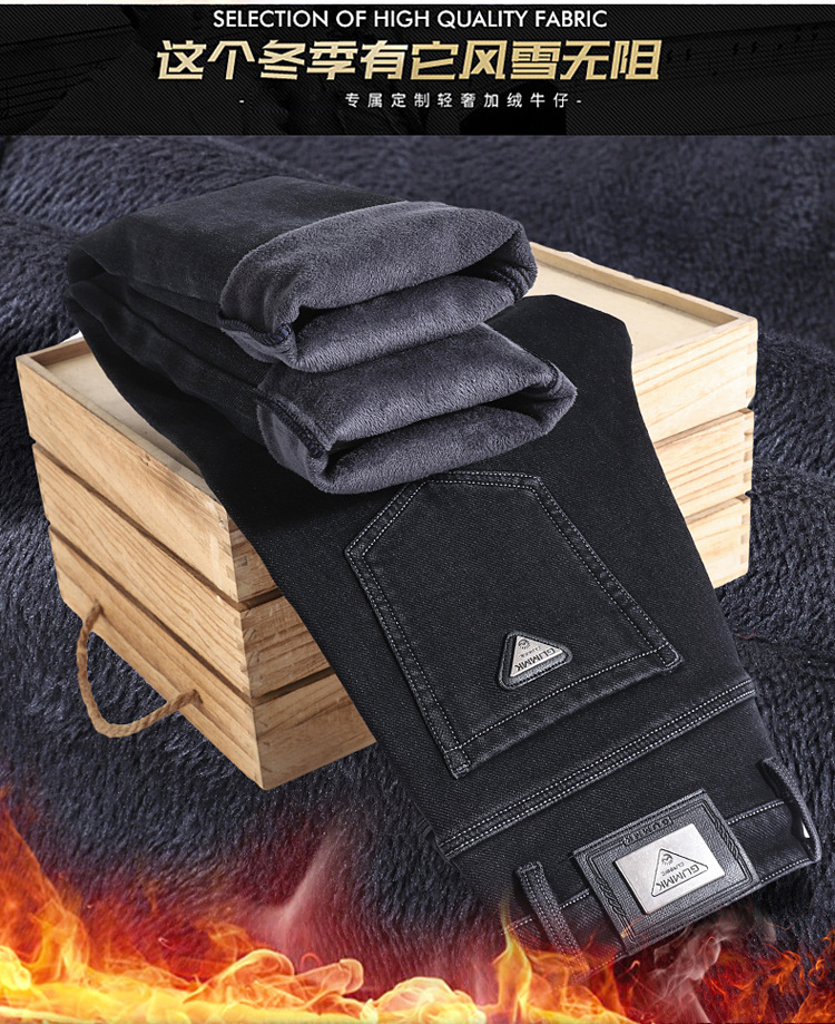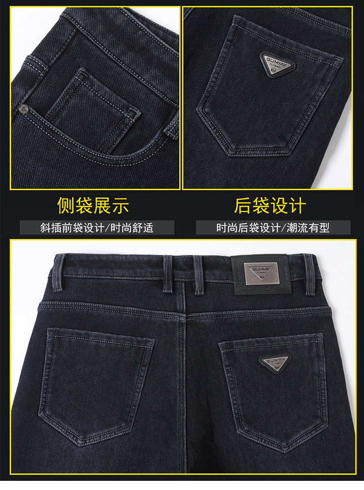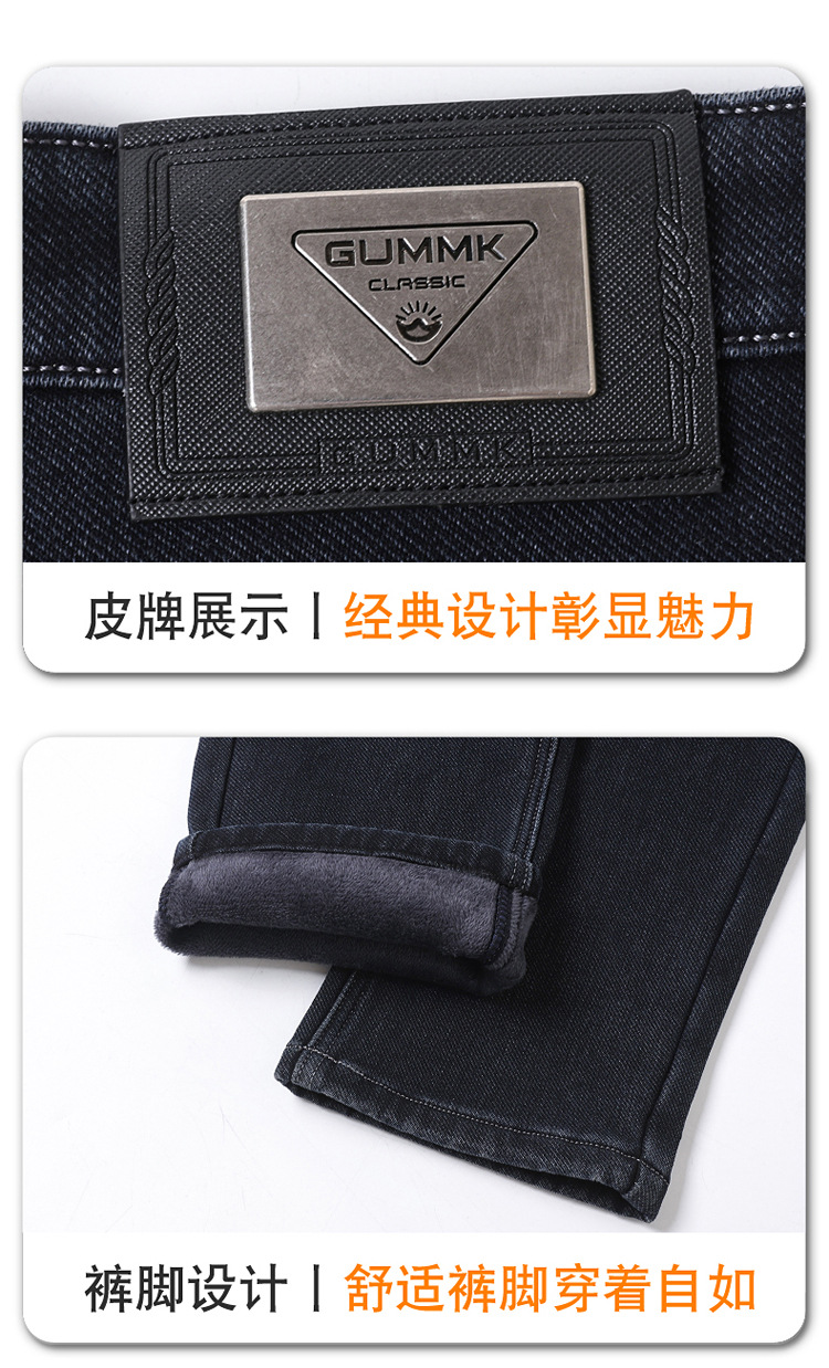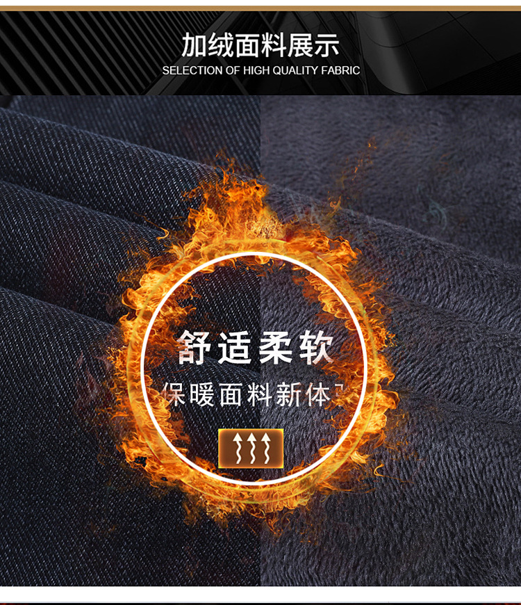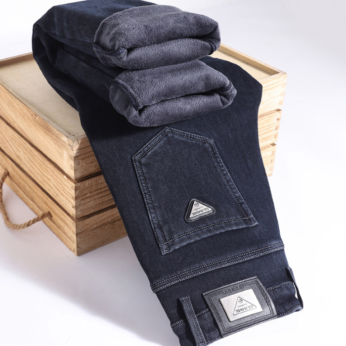 Daifa 2024 가을/겨울 기모 두꺼운 남자의 느슨한 직선 탄성 젊은 및 중년 비즈니스 캐주얼 데님 긴 바지스토어 가기