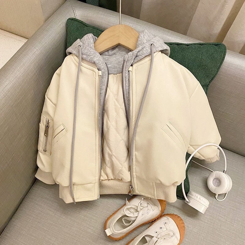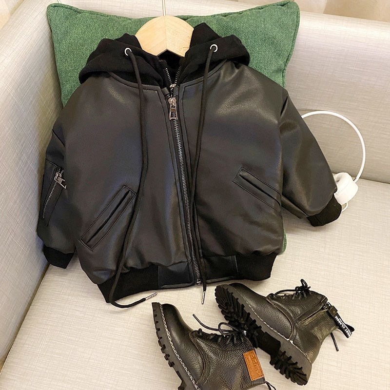 소년 '두꺼운 가죽 코트 2024 가을과 겨울 새로운 어린이 한국식 가짜 투피스 가죽 자켓 어린이 트렌디 코트스토어 가기