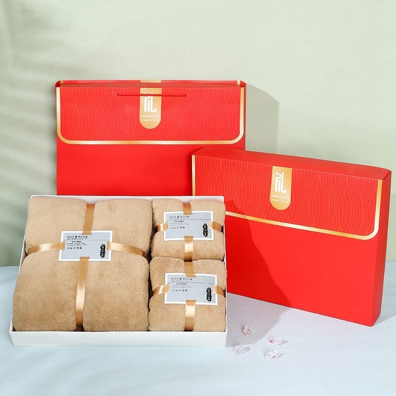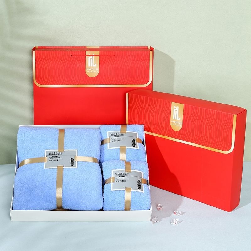 고급 선물 상자 수건 및 목욕 수건 3피스 선물 상자 오픈 선물 상자 기념품 세트 고급 선물 상자 수건스토어 가기