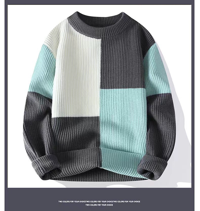 콘트라스트 컬러 남성용 스웨터 남성용 겨울 트렌디 브랜드 베이스 니트 스웨터 유행 루즈 게으른 스웨터 겨울 따뜻한 라인