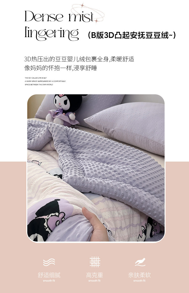 산리오 만화 콩 퀼트 어린이 기숙사 겨울 퀼트 코어 학생 싱글 더블 가을과 겨울 두꺼운 콩 벨벳 퀼트