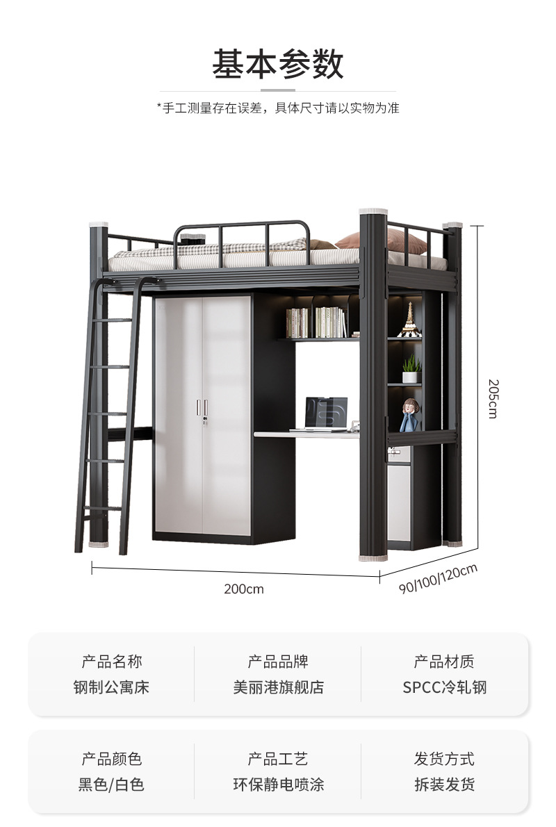 Klins 스틸 침대 테이블 조합 침대 대학 기숙사 엘리베이터 침대 학교 직원 기숙사 아파트 침대스토어 가기