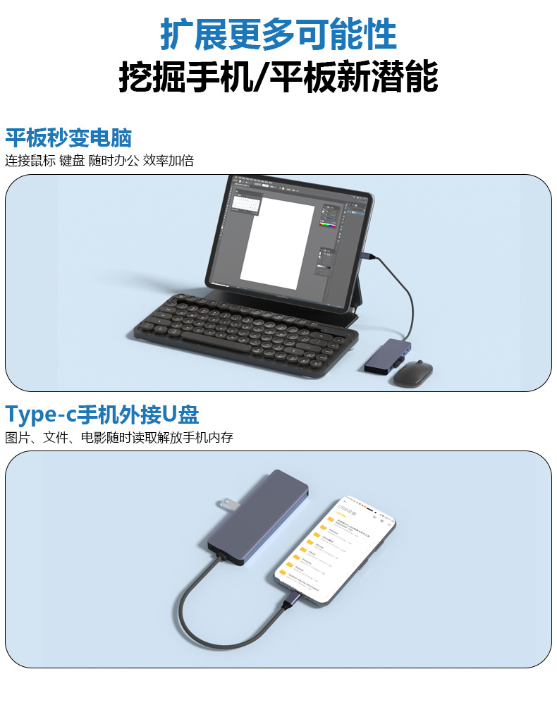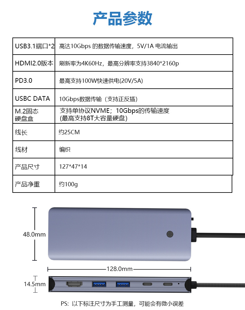 • USB3.2Gen*2 10G+Typec 10G+HDMI+PD+M.2 하드 디스크 인클로저