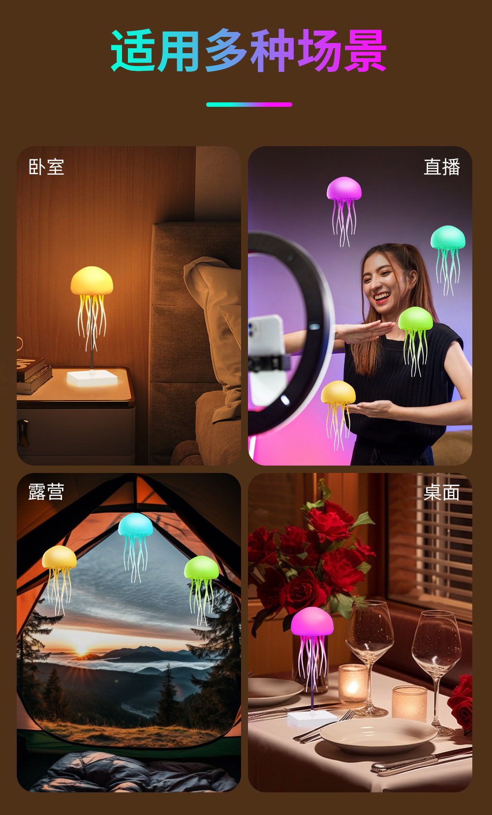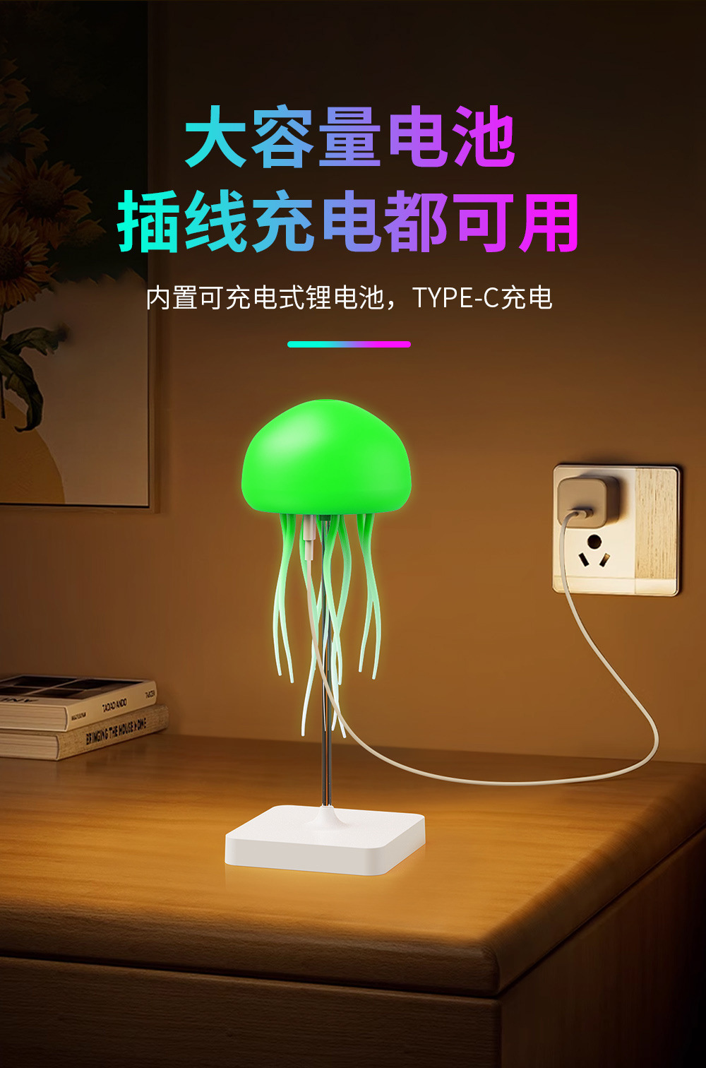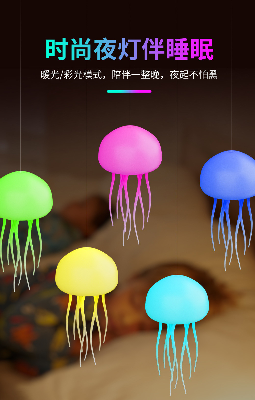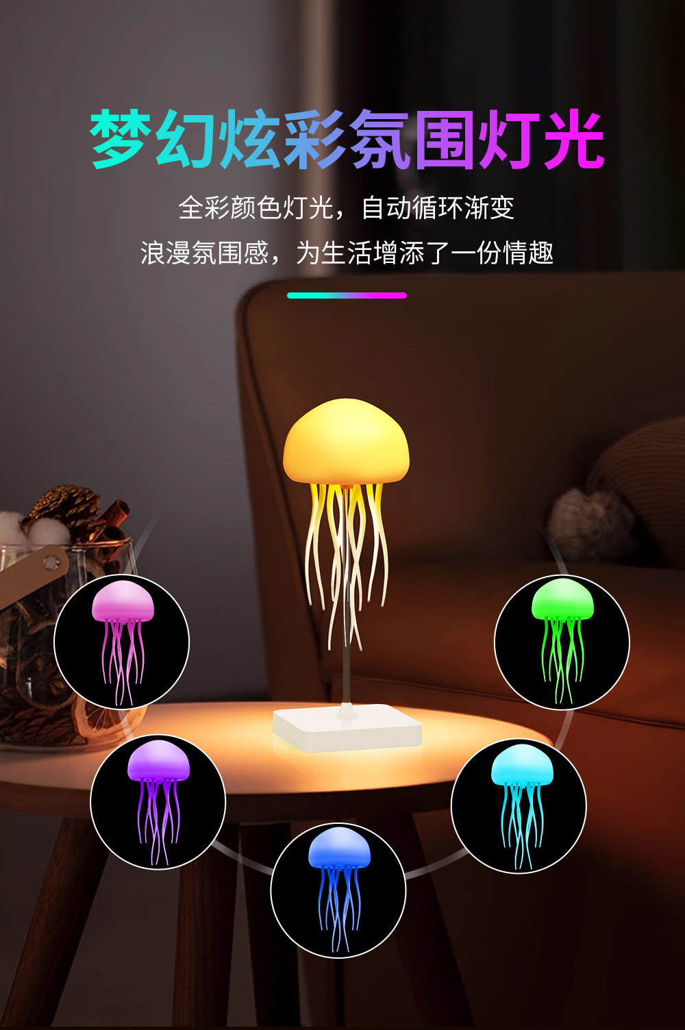새로운 풀컬러 그라데이션 스마트 음성 제어 해파리 램프, 공중에 떠 있는 움직이는 촉수, 분위기 감지 야간 조명 장식품
