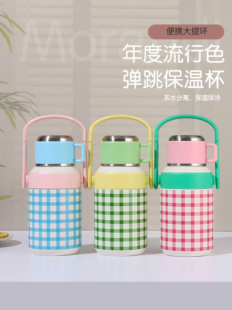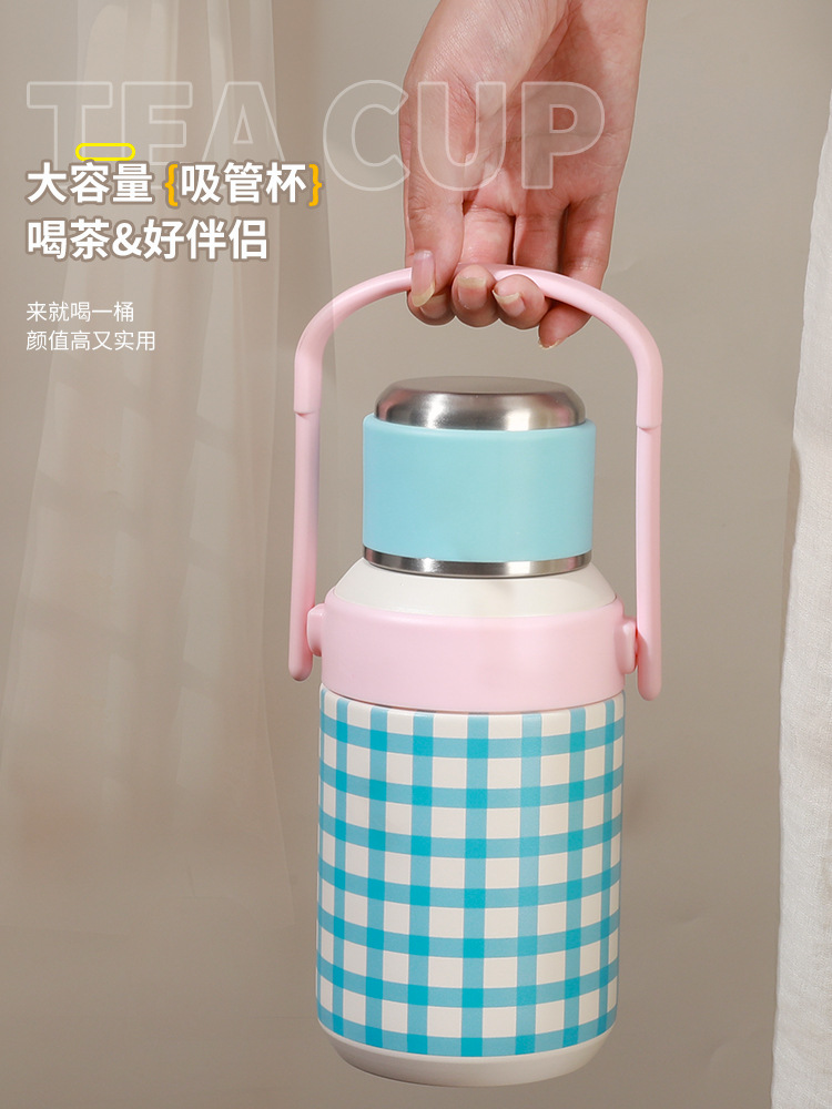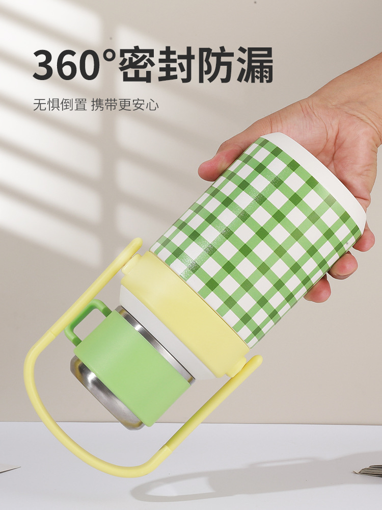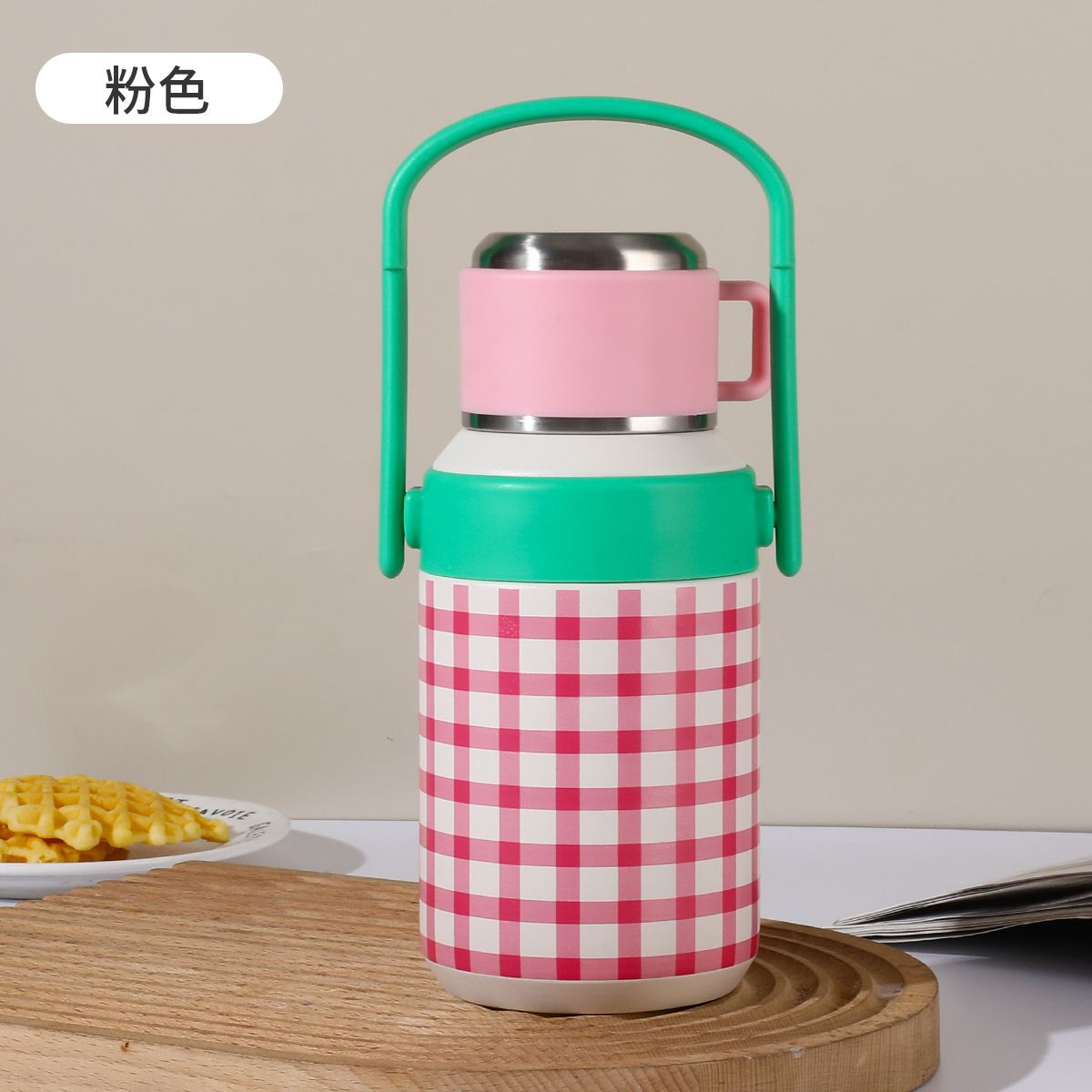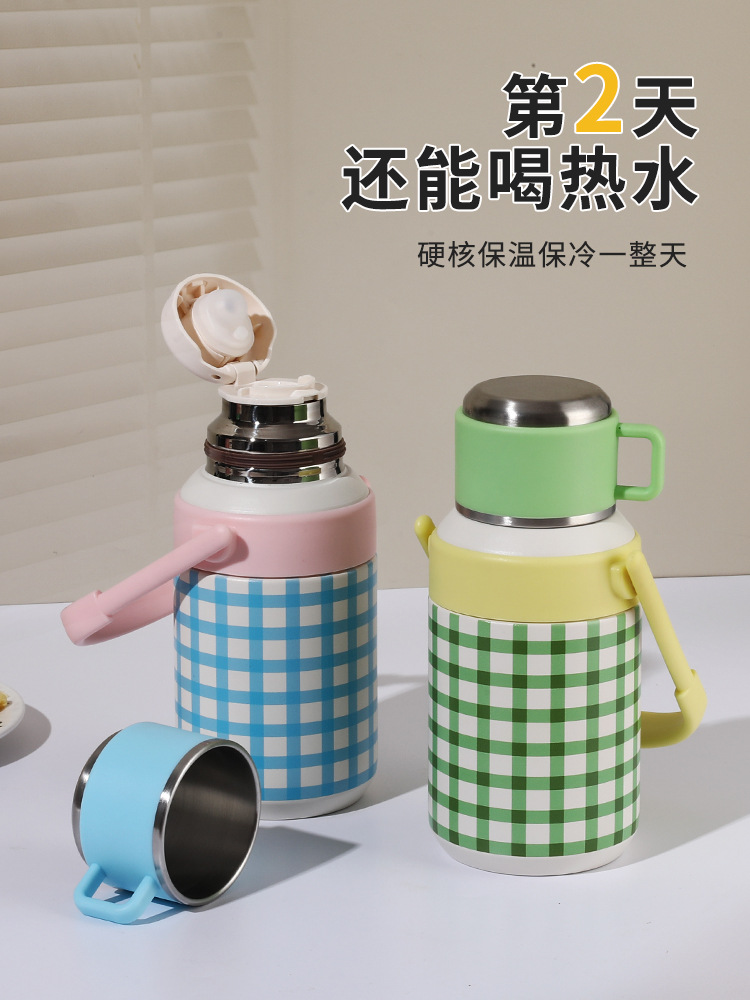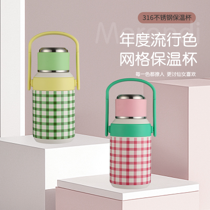 대용량 보온병 컵 소녀 간단한 스테인레스 스틸 대용량 연간 슈퍼 화재 높은 색상 값 체크 컵 휴대용 도매