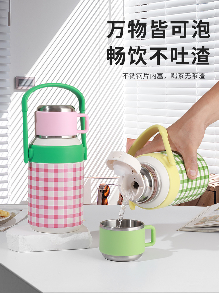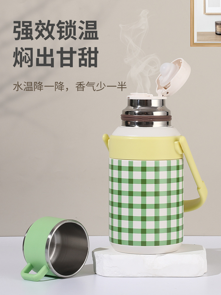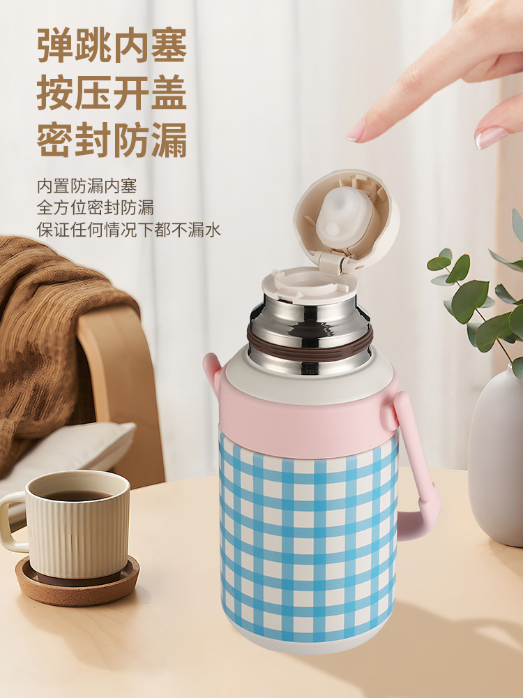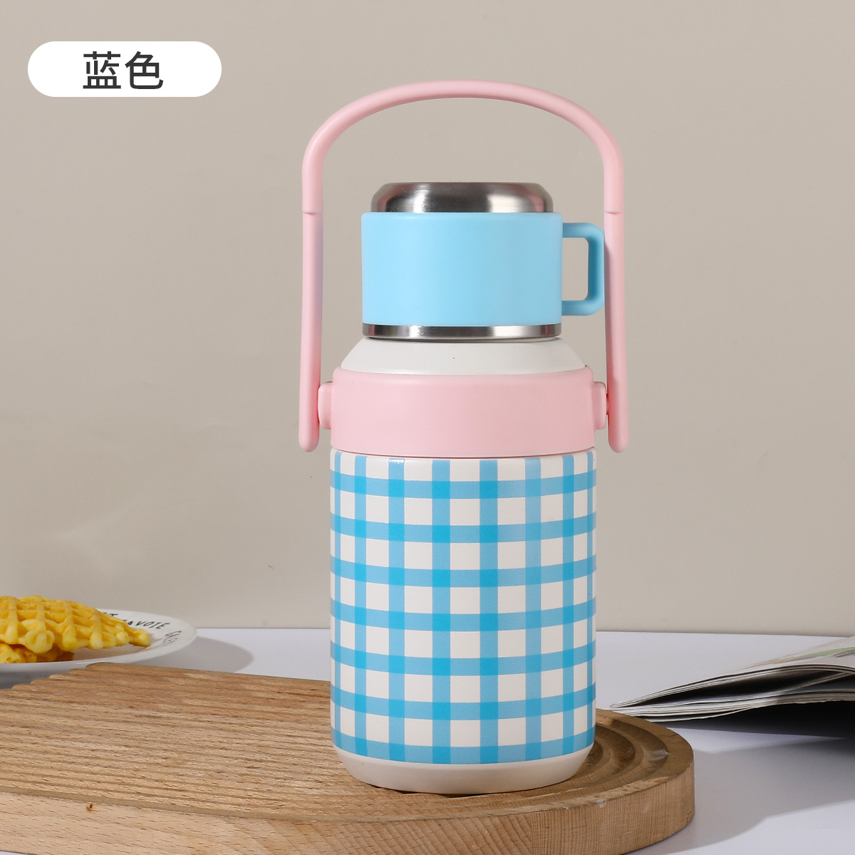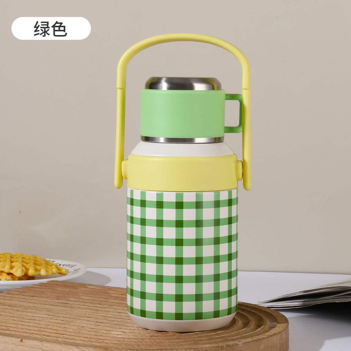 대용량 보온병 컵 소녀 간단한 스테인레스 스틸 대용량 연간 슈퍼 화재 높은 색상 값 체크 컵 휴대용 도매