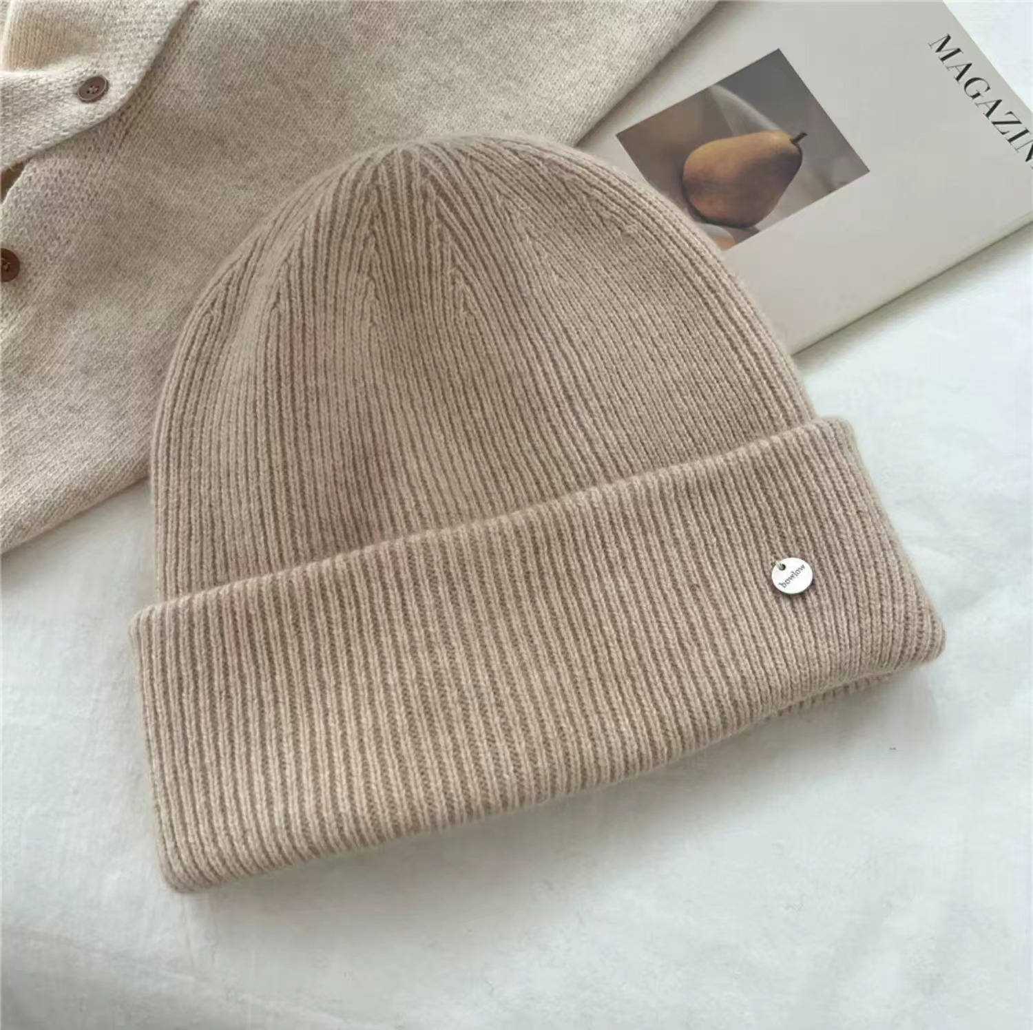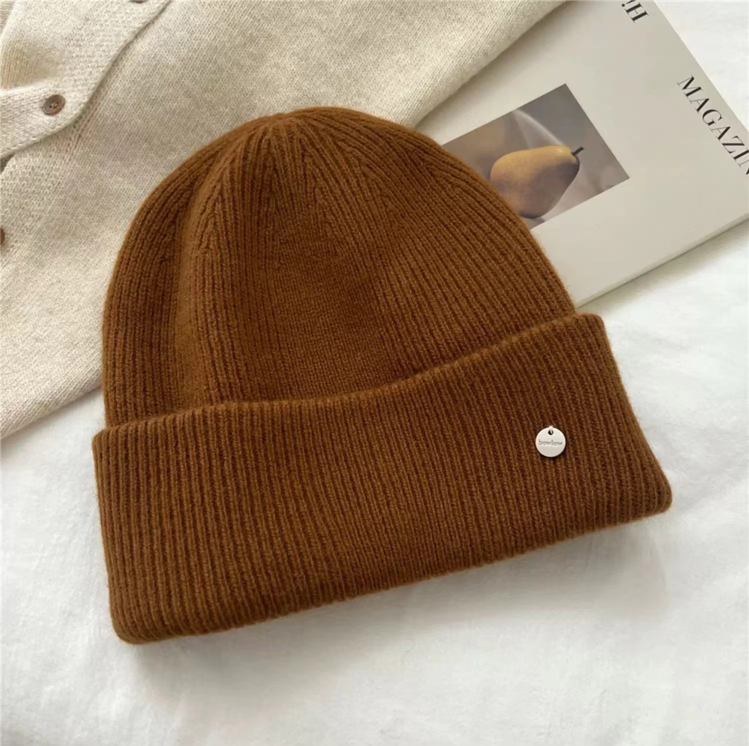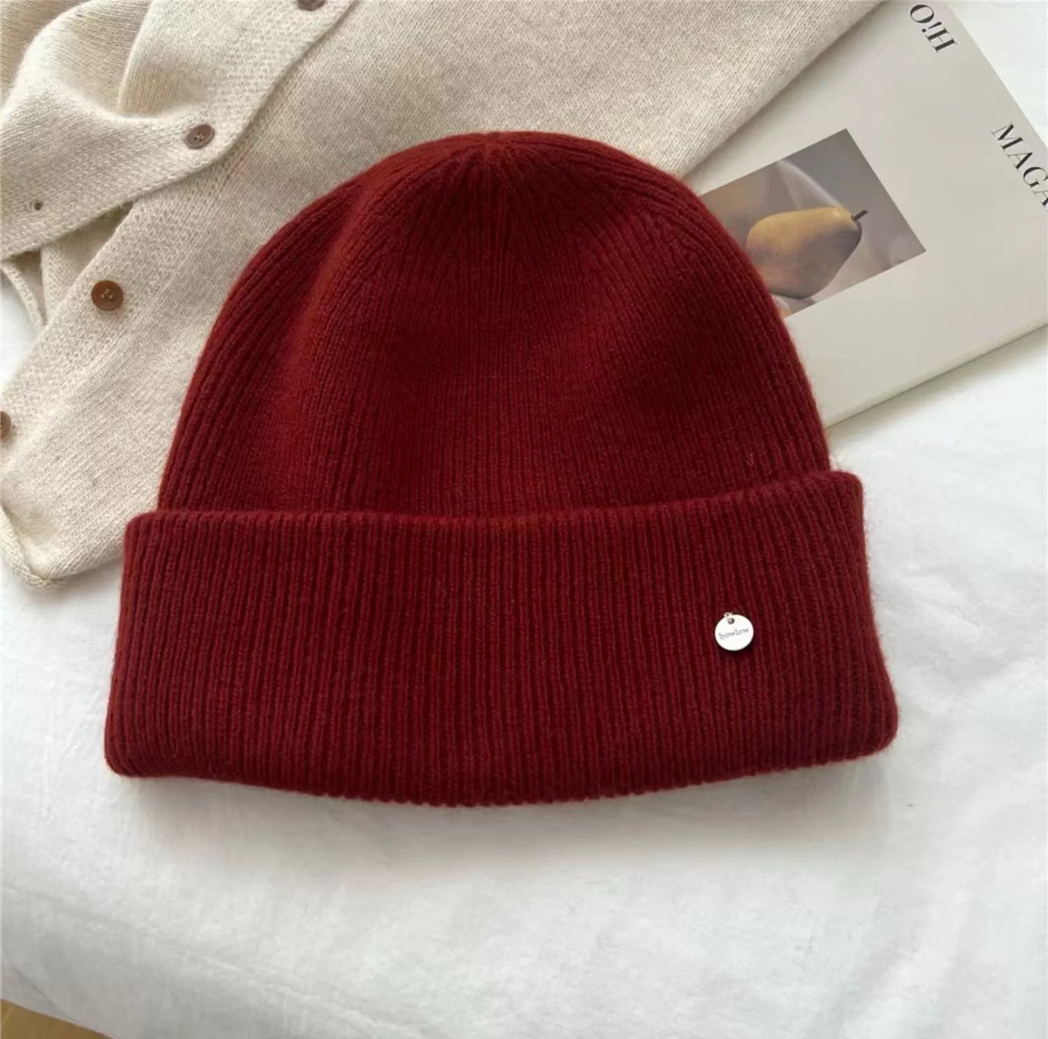 도매 한국 2024 새로운 가을과 겨울 차가운 따뜻한 울 모자 느슨한 대형 버전 두꺼운 니트 모자 작은 얼굴스토어 가기