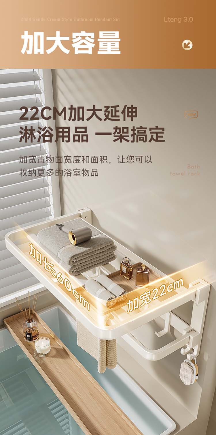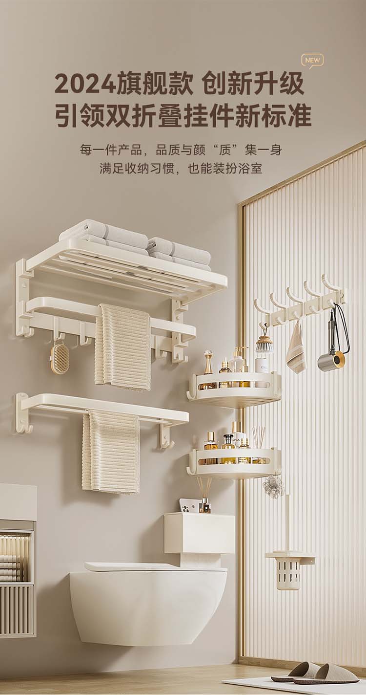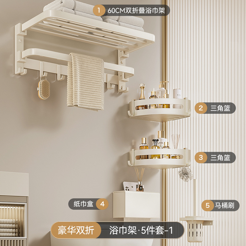 크림 욕실 랙 타월 랙 화장실 비 천공 화장실 수건 바 목욕 보관 수건 랙스토어 가기