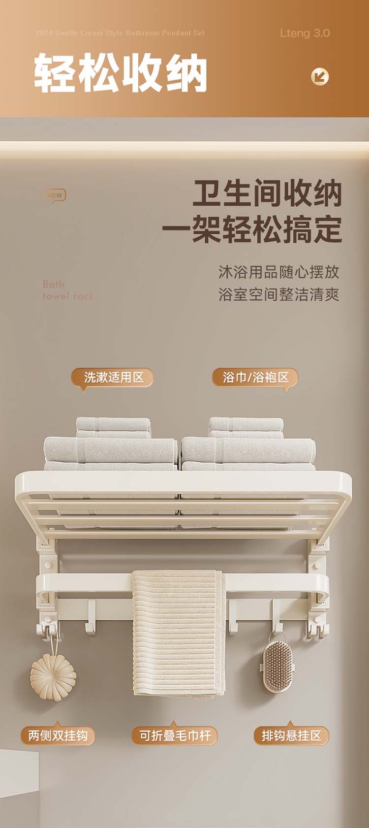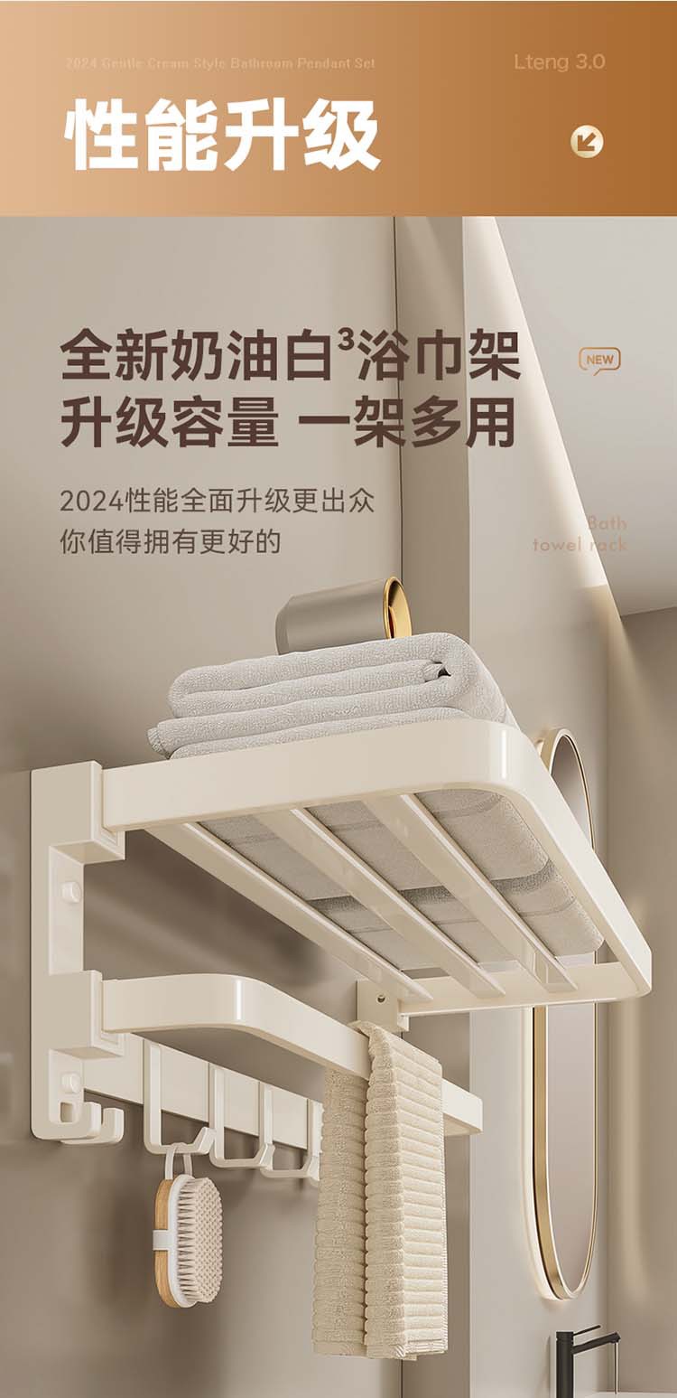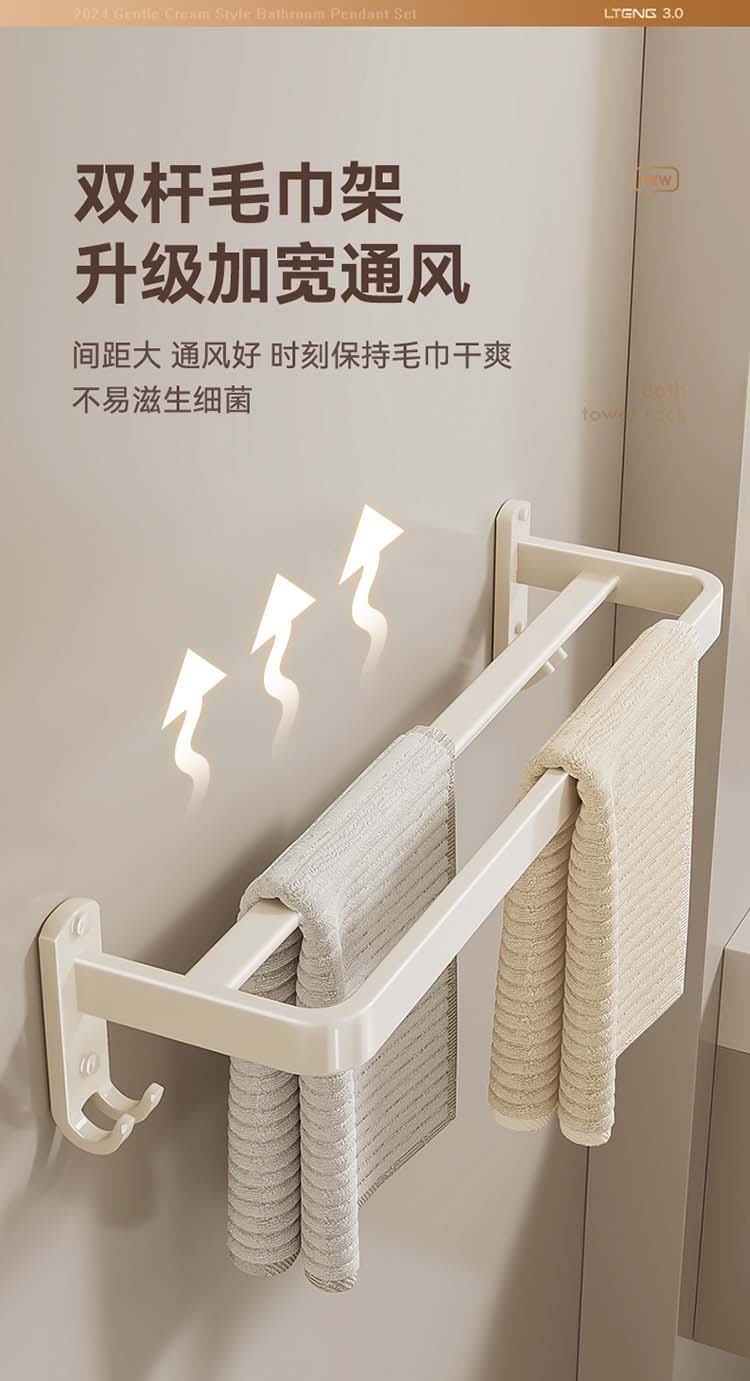 크림 욕실 랙 타월 랙 화장실 비 천공 화장실 수건 바 목욕 보관 수건 랙