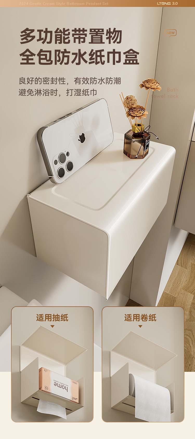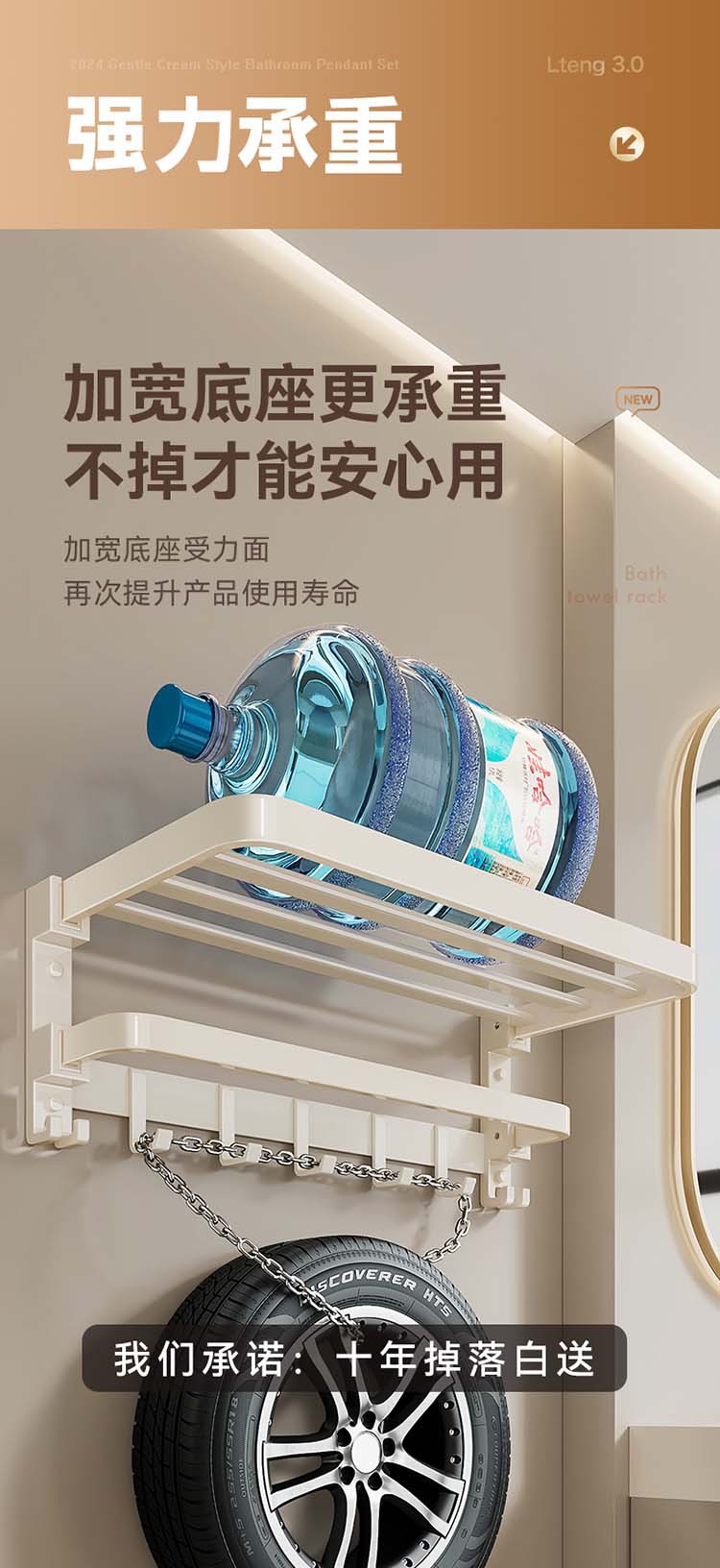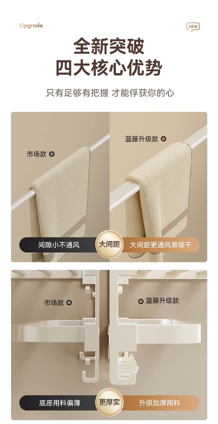 크림 욕실 랙 타월 랙 화장실 비 천공 화장실 수건 바 목욕 보관 수건 랙