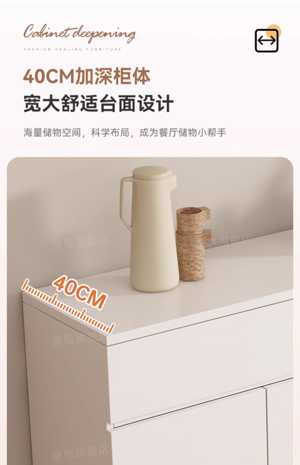 • [3도어 더블서랍] 120cm 화이트 + 라이트월넛 찬장