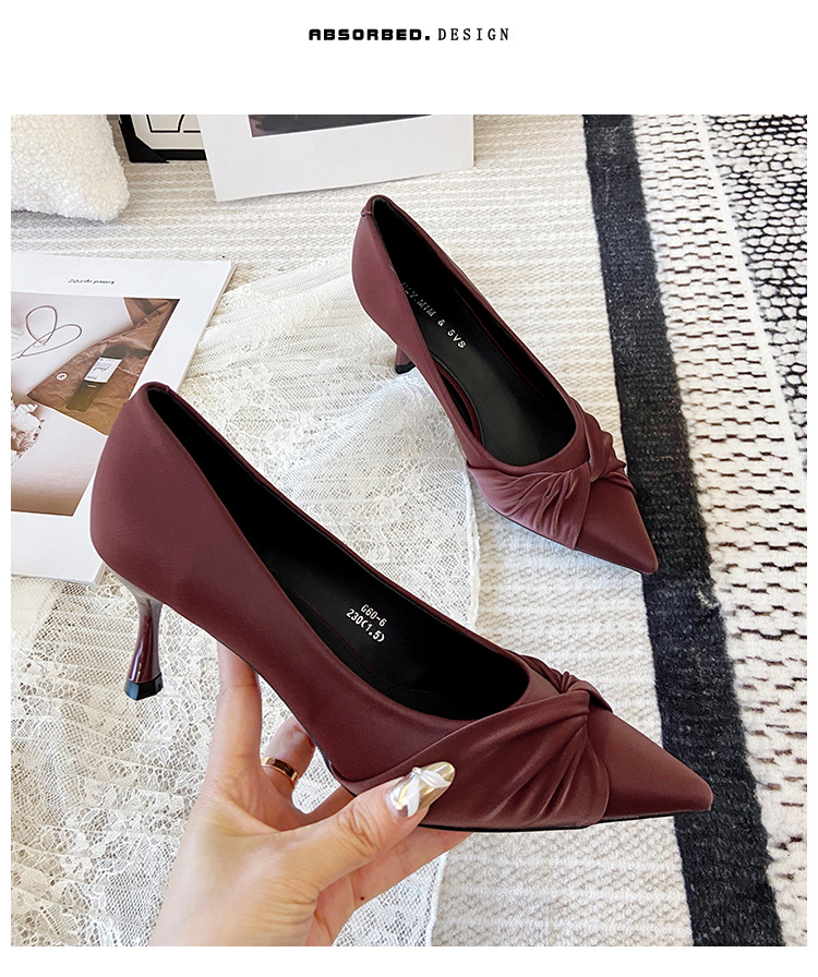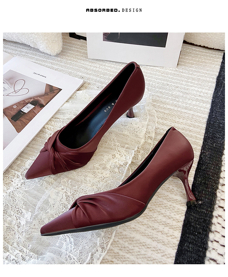 하이힐 여성 구두 뾰족코 얇은 굽 벨벳 새틴 하이힐 여성 단색 통근용 두꺼운 굽 작업용 구두스토어 가기