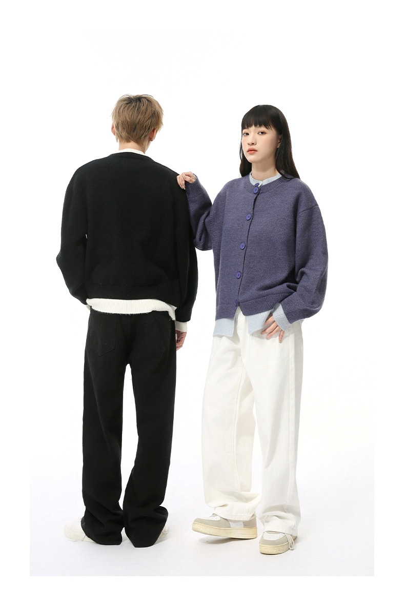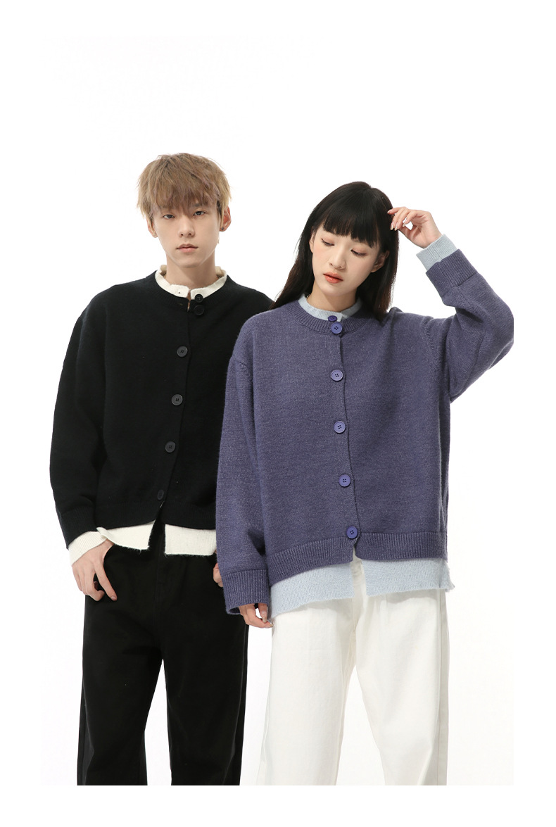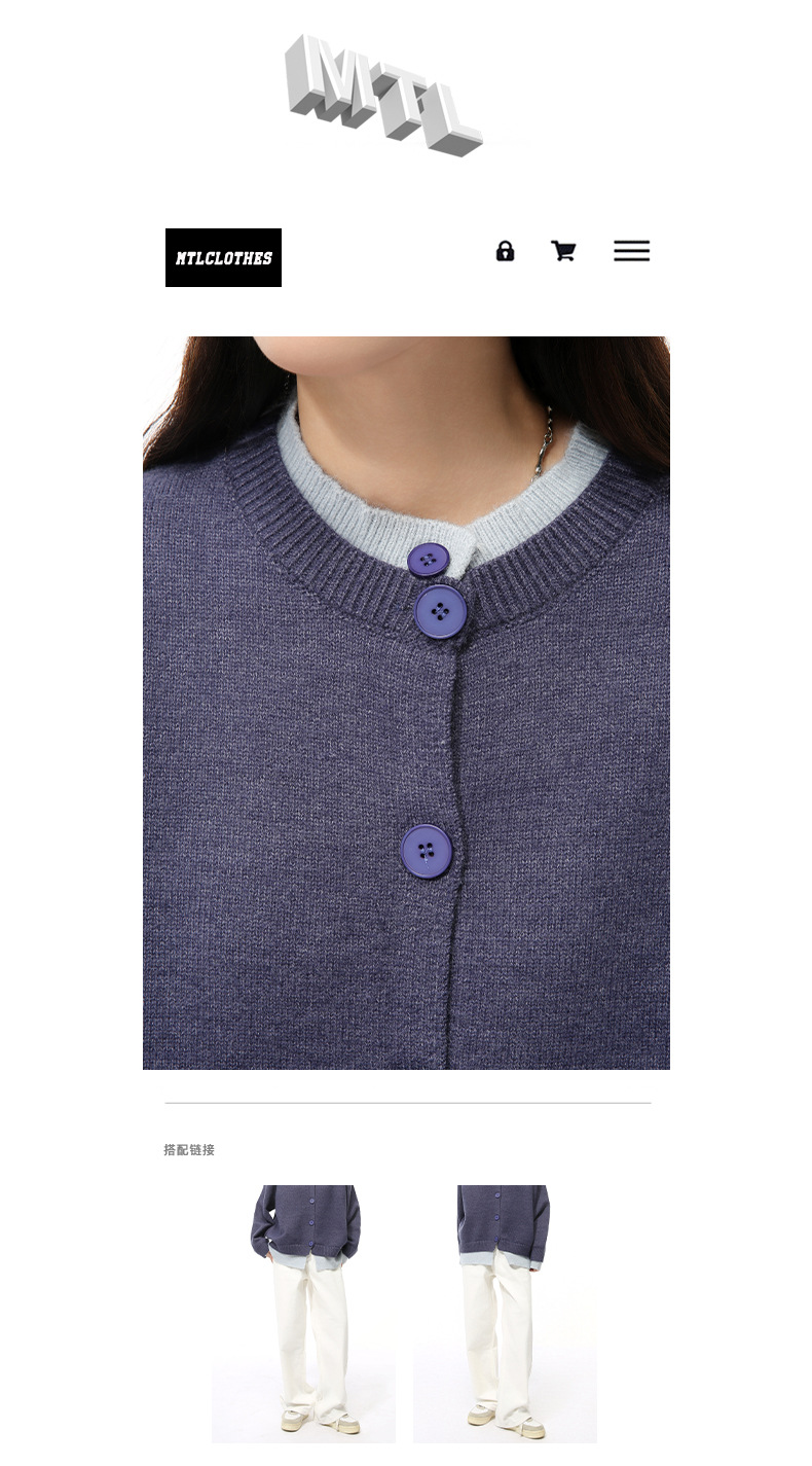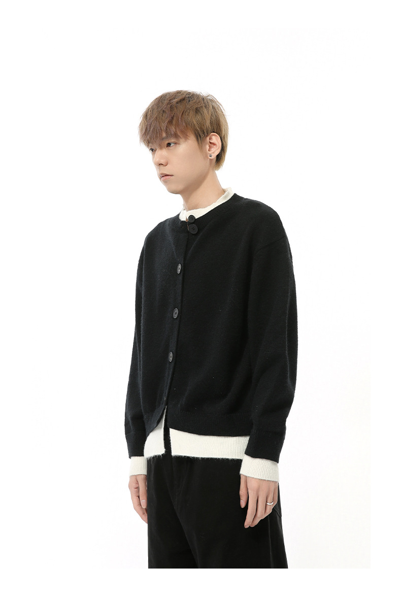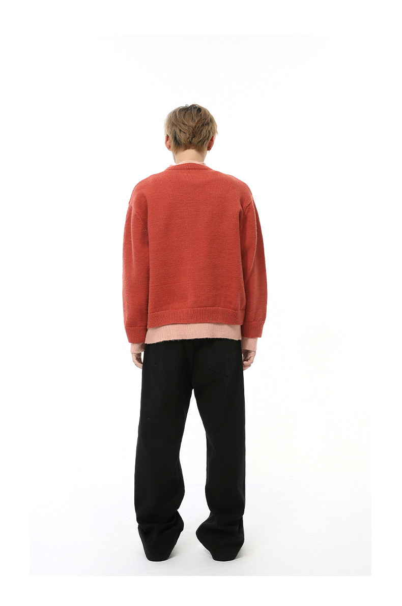MTLCLOTHES 남성용 | 가을 새로운 미국 복고풍 가짜 두 버튼 디자인 색상 일치 라운드 넥 스웨터 조수스토어 가기