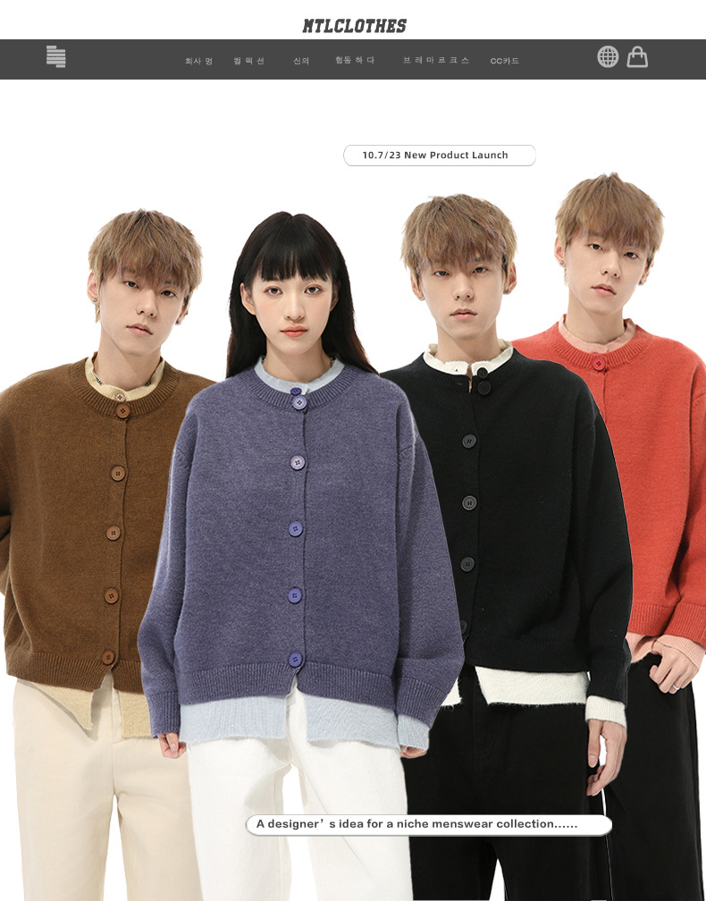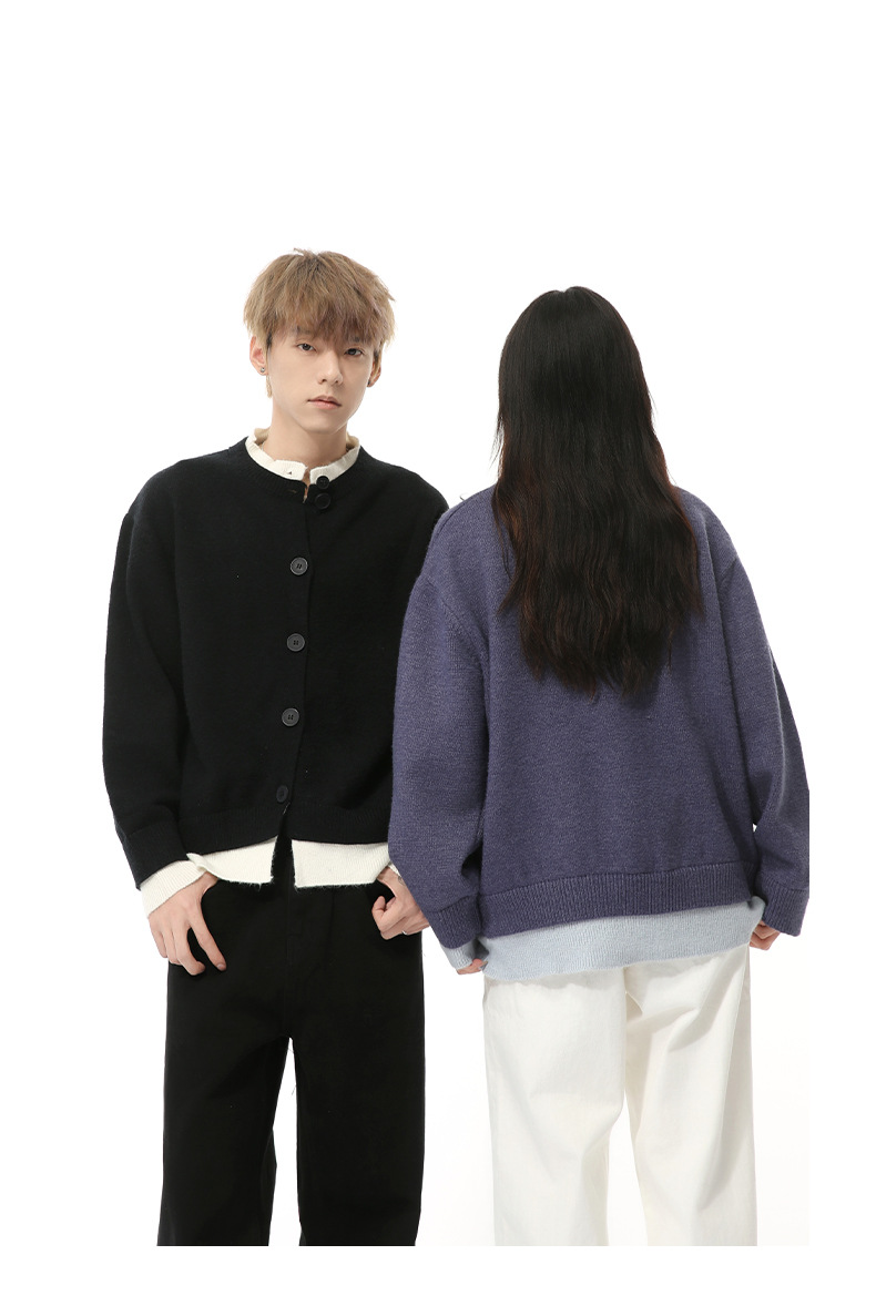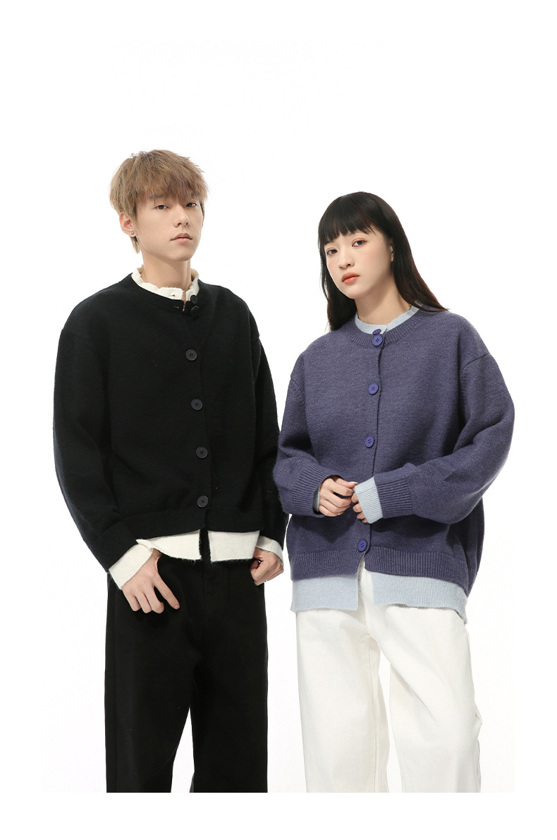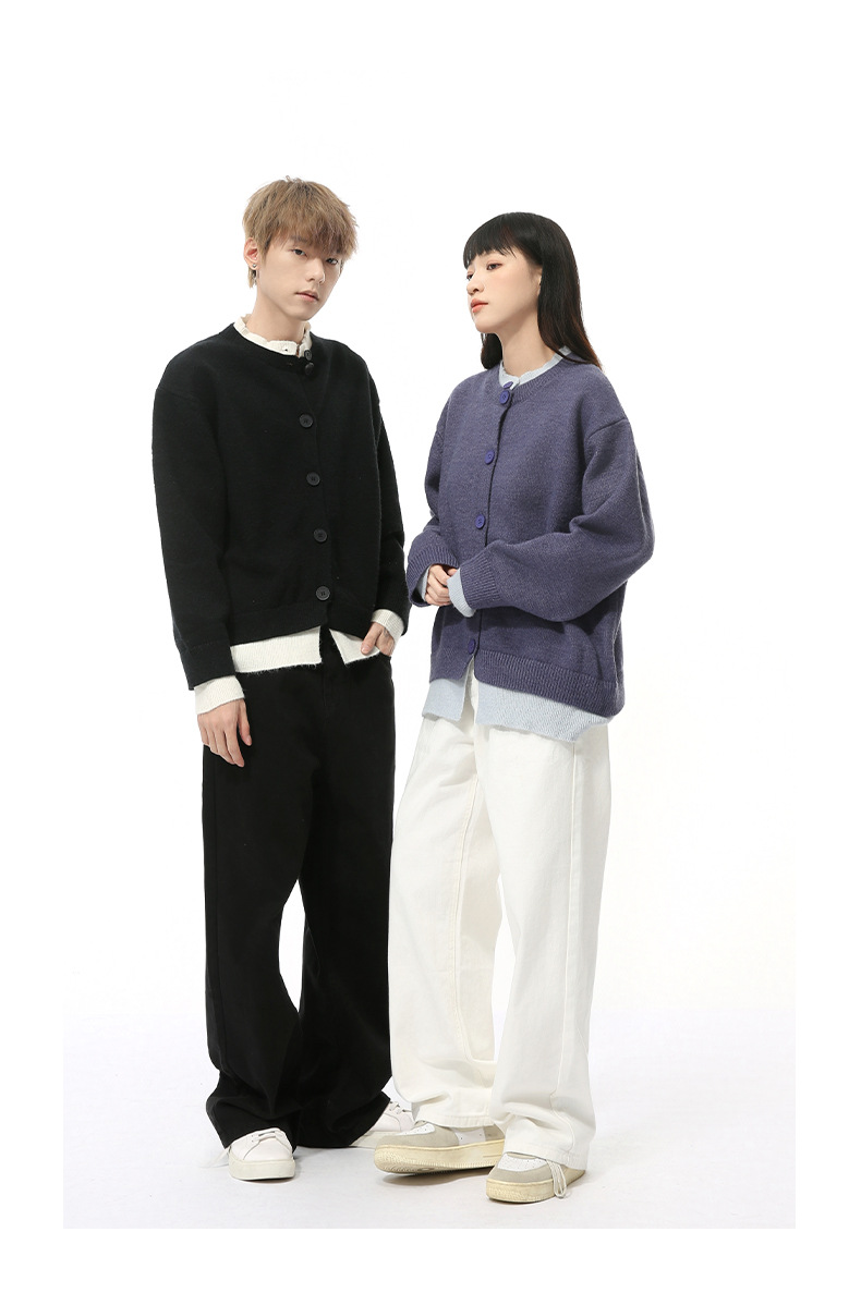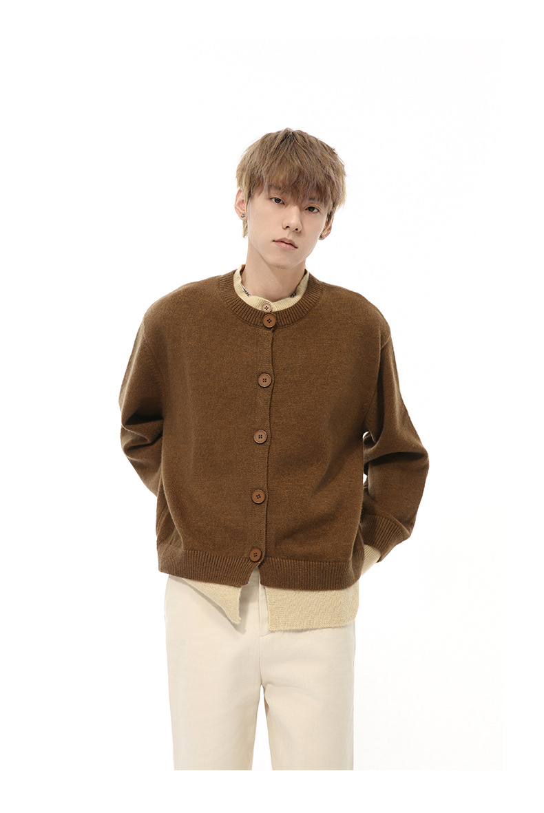 MTLCLOTHES 남성용 | 가을 새로운 미국 복고풍 가짜 두 버튼 디자인 색상 일치 라운드 넥 스웨터 조수스토어 가기