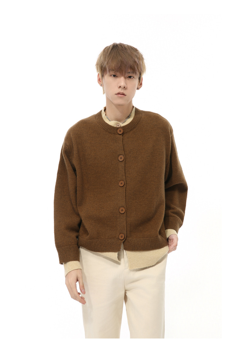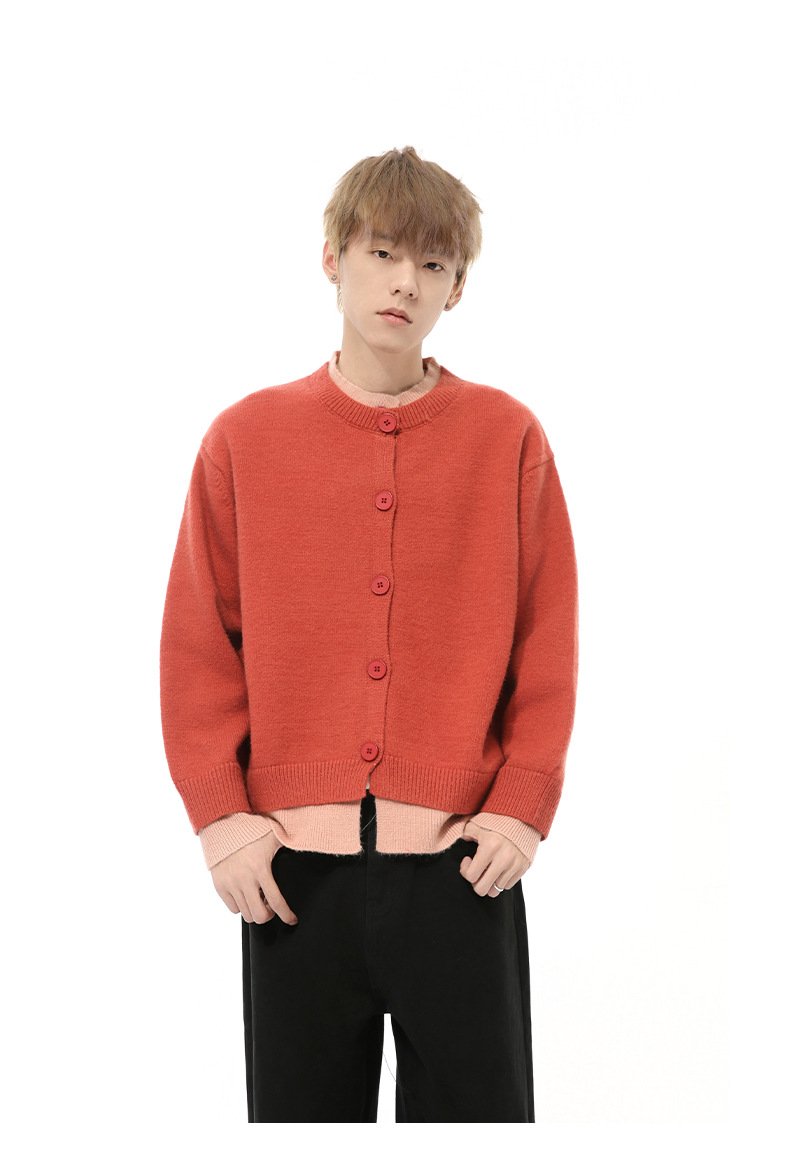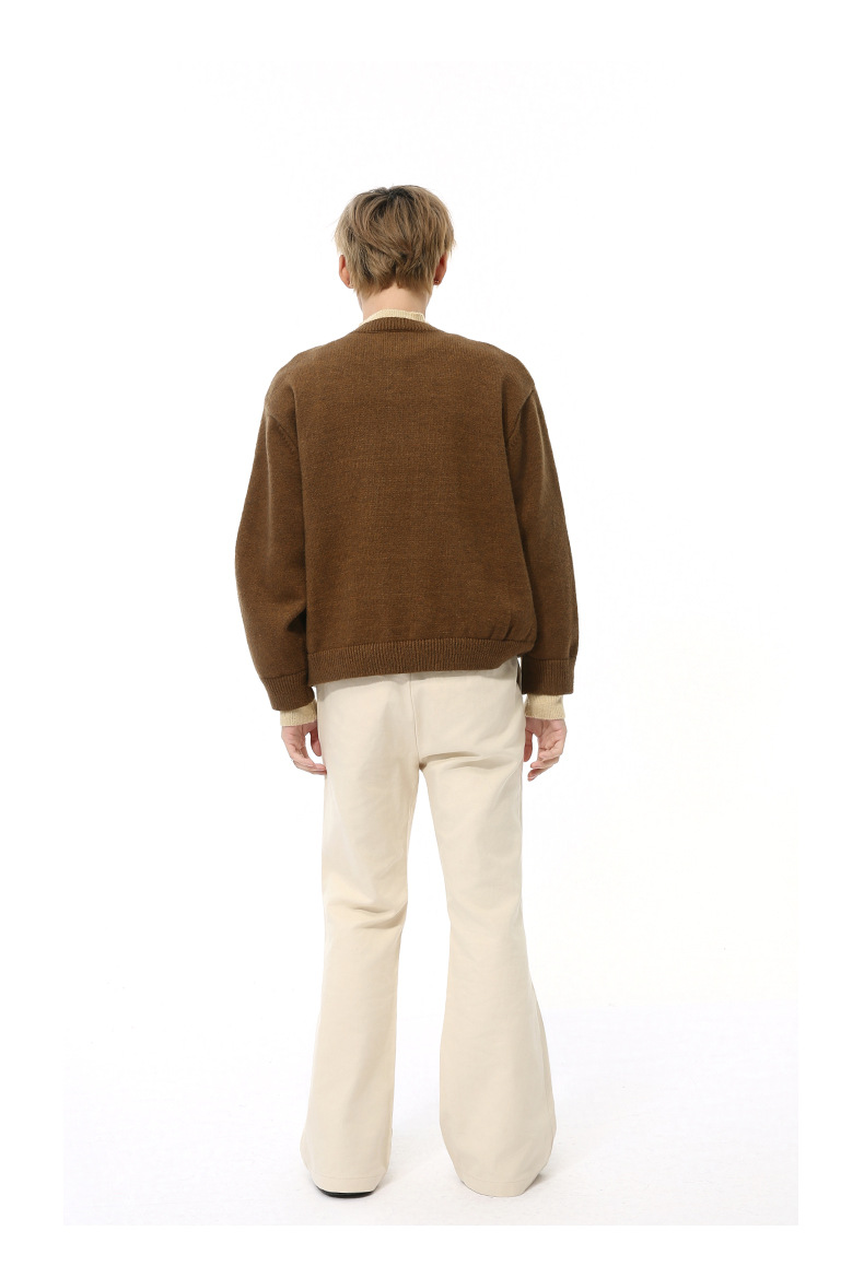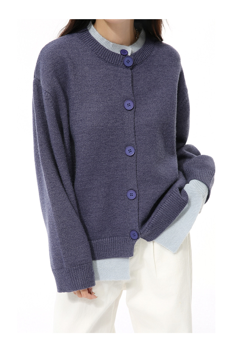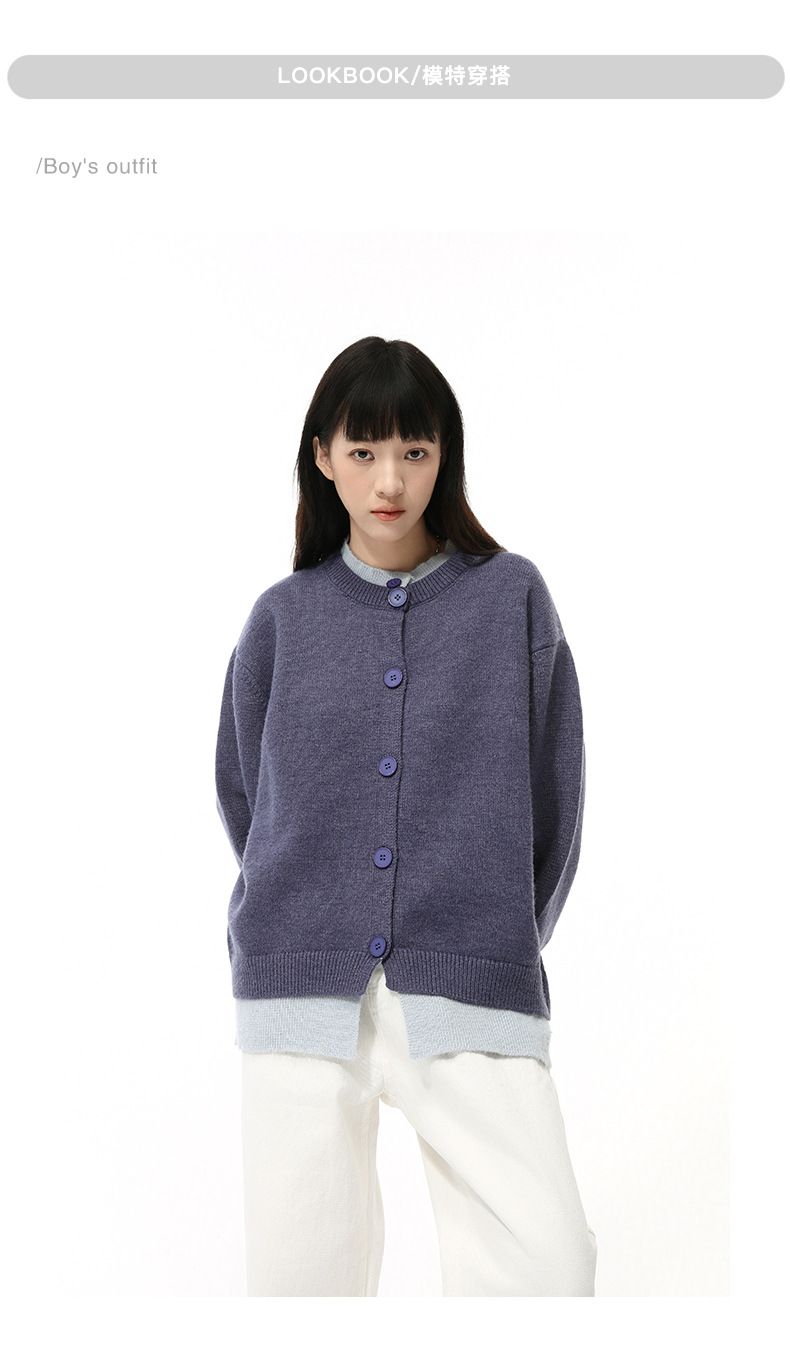 MTLCLOTHES 남성용 | 가을 새로운 미국 복고풍 가짜 두 버튼 디자인 색상 일치 라운드 넥 스웨터 조수스토어 가기