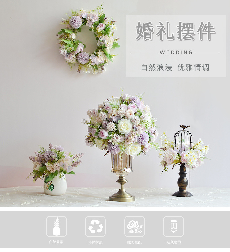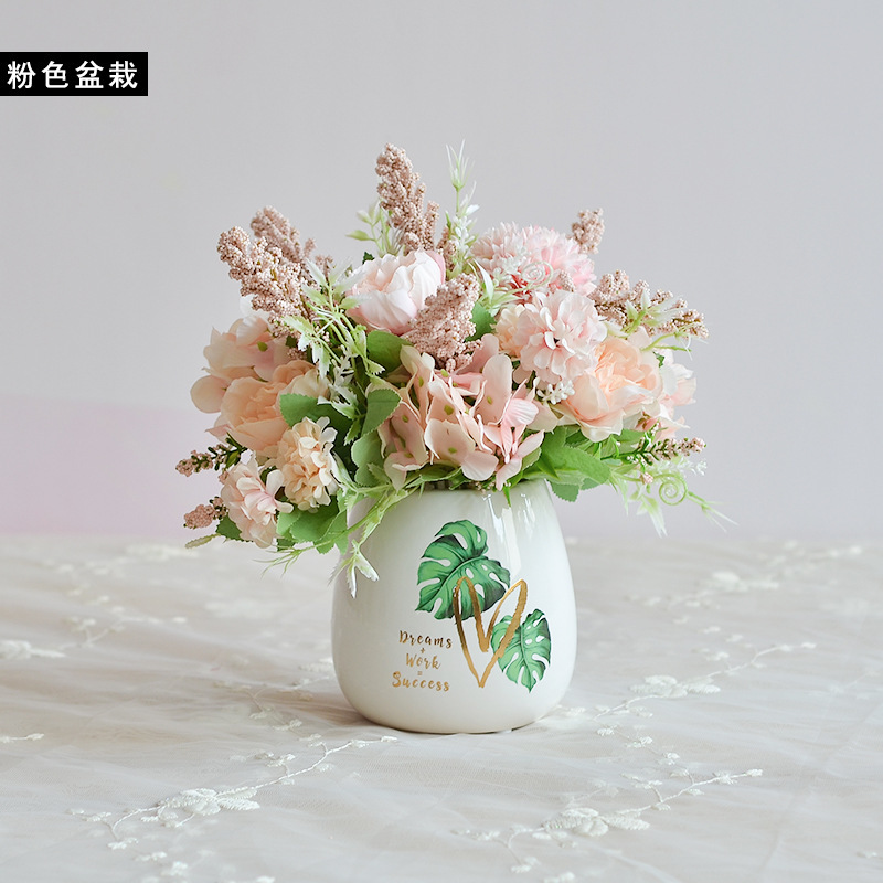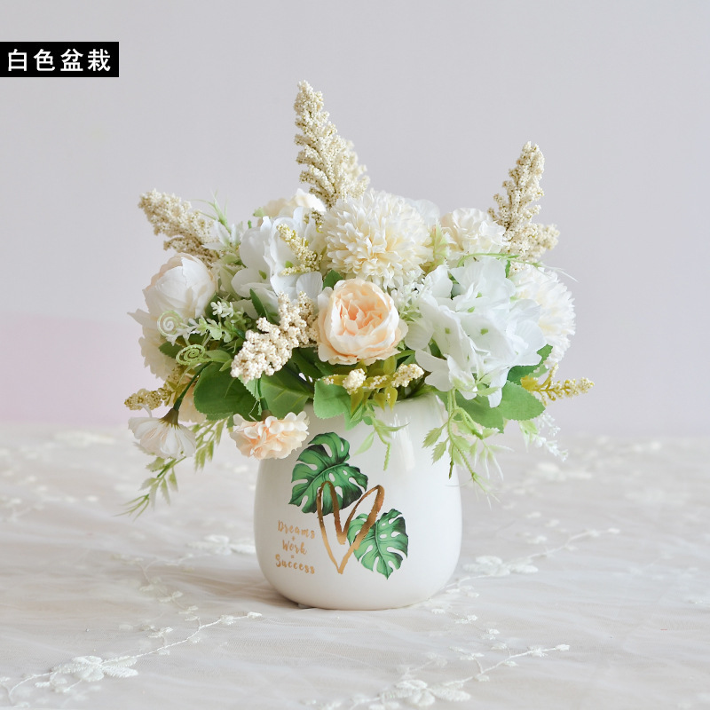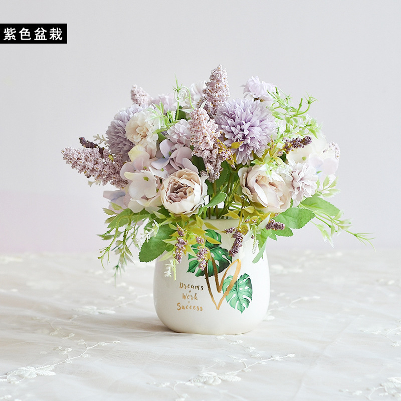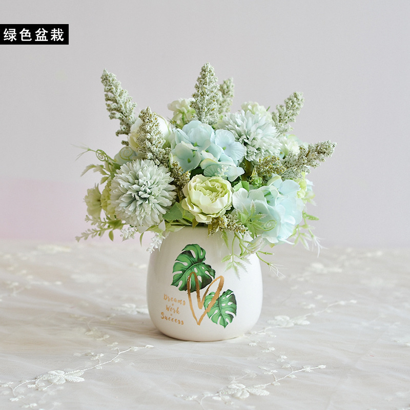 시뮬레이션 테이블 꽃 화분 녹색 식물 가짜 꽃 홈 거실 호텔 레스토랑 꽃 웨딩 라운드 테이블 장식 장식