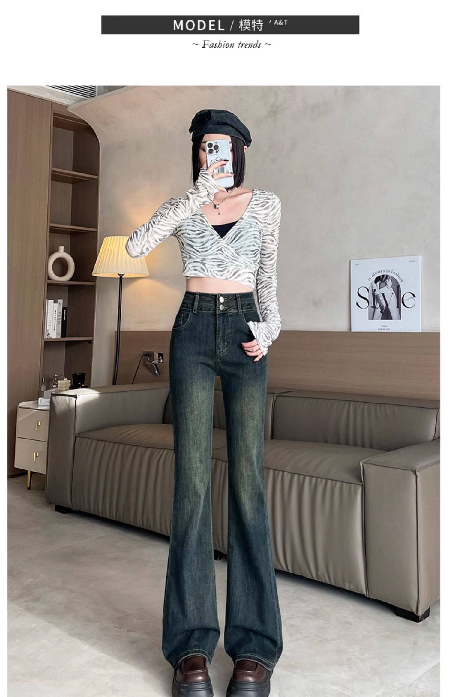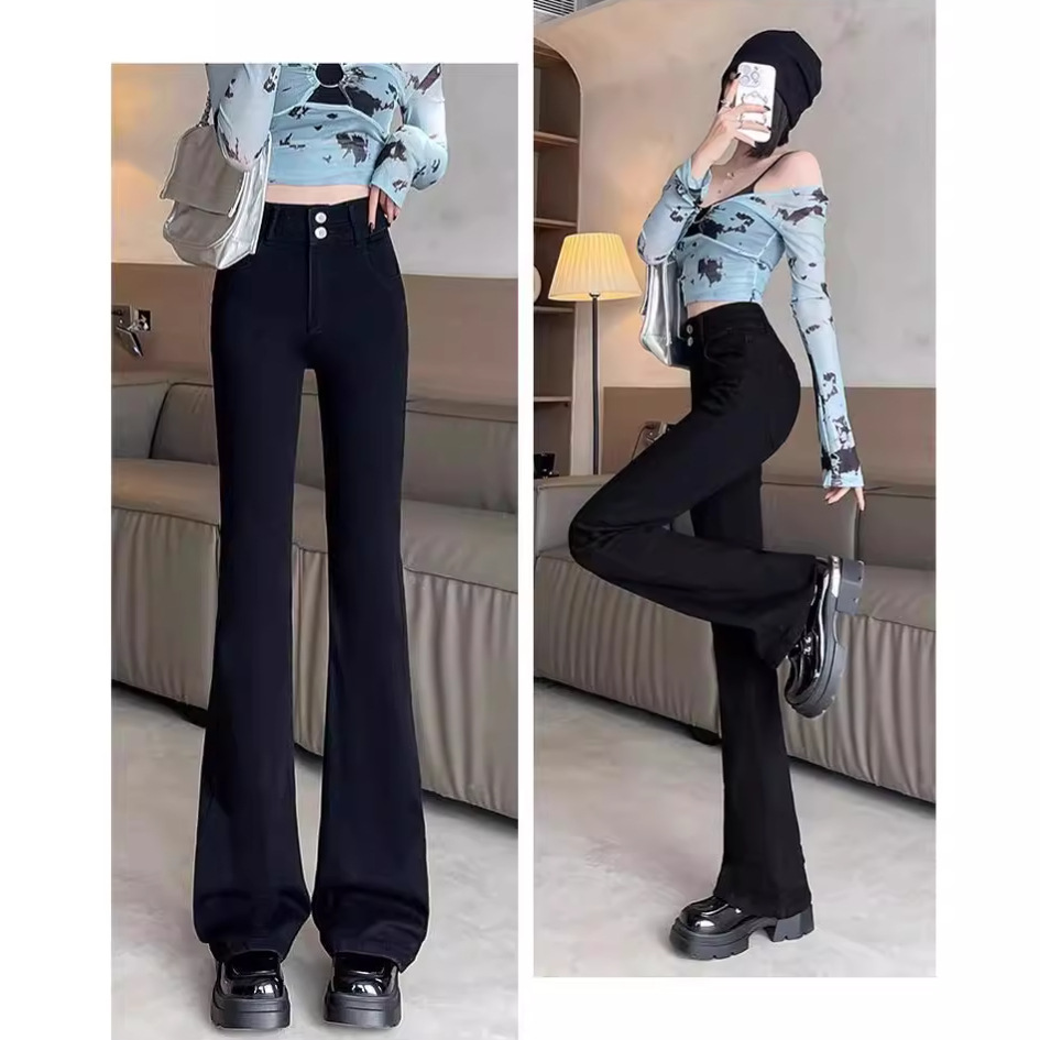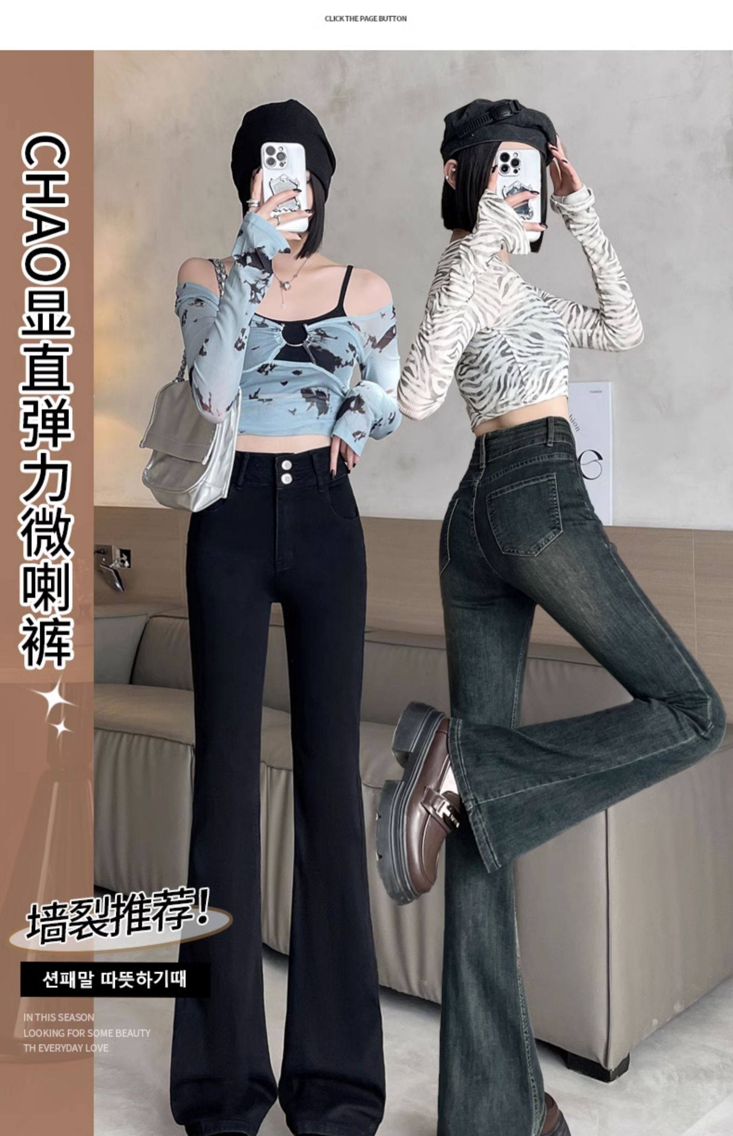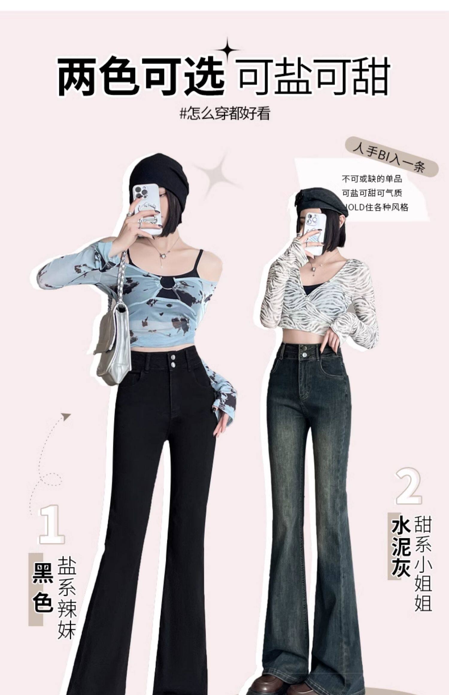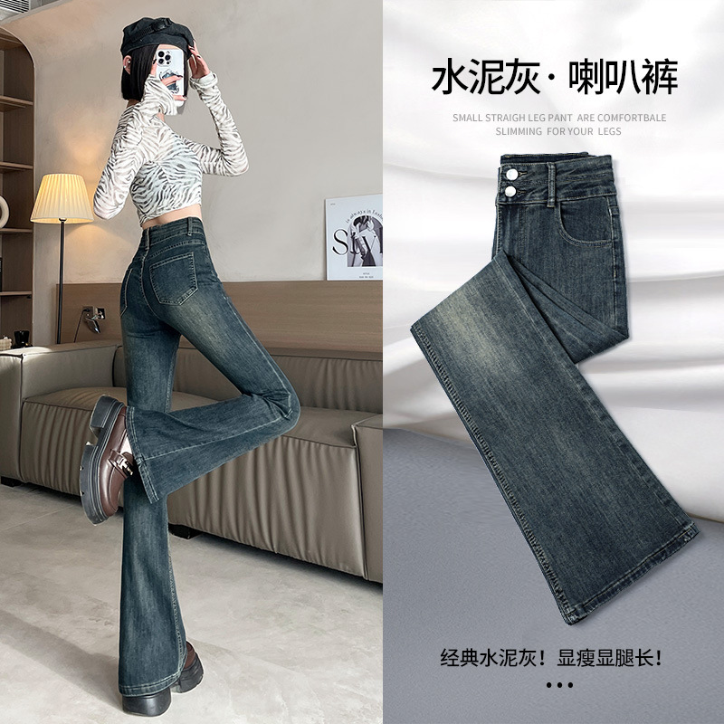 시멘트 그레이 빈티지 마이크로 라르 청바지 여성의 가을 새로운 도착 작은 느슨한 엉덩이 커버 슬리밍 바닥 청소 말굽 바지스토어 가기