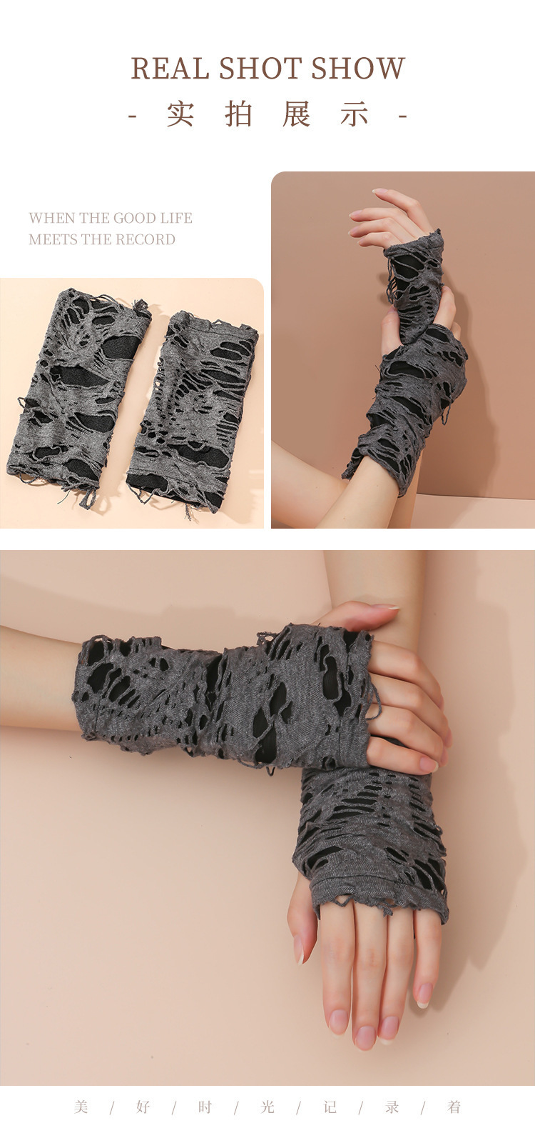국경 간 속이 빈 할로윈 장갑 펑크 스타일 의류 장식 장갑 구멍 반 손가락 소매 도매