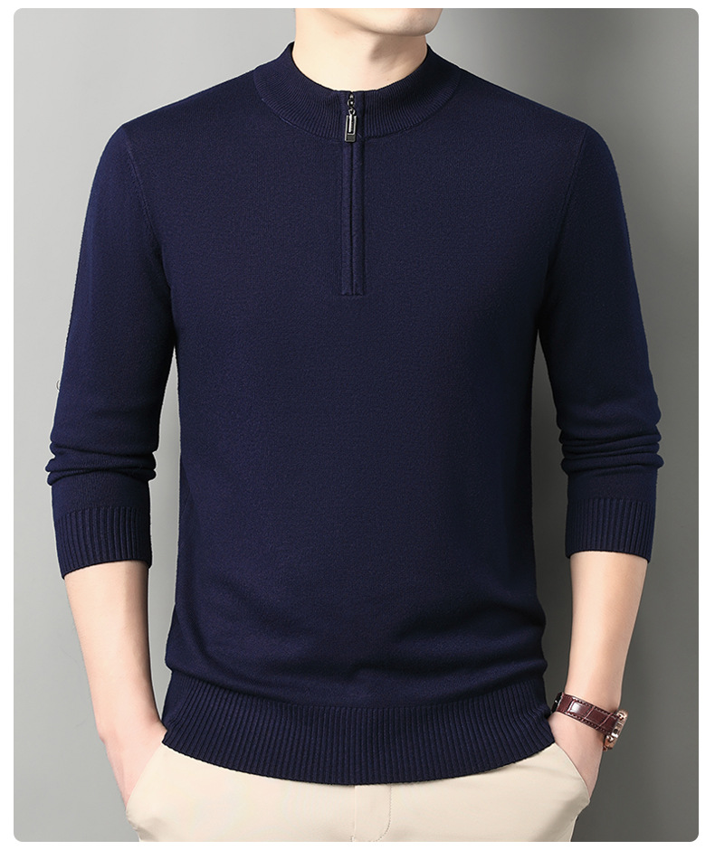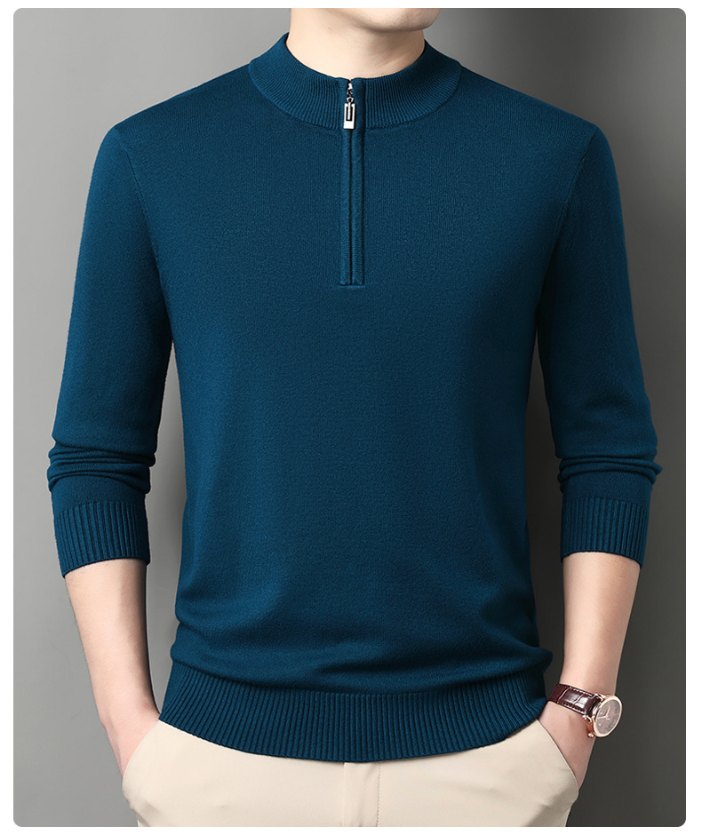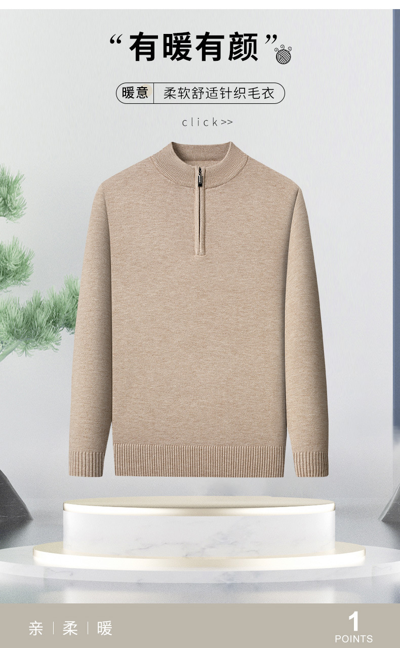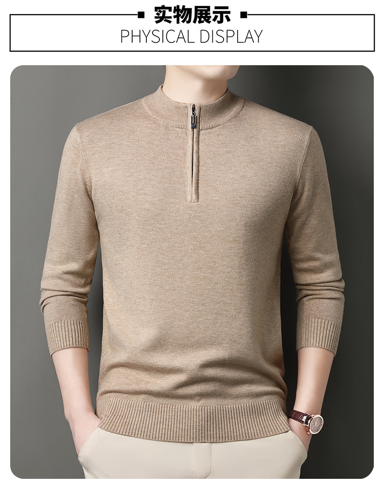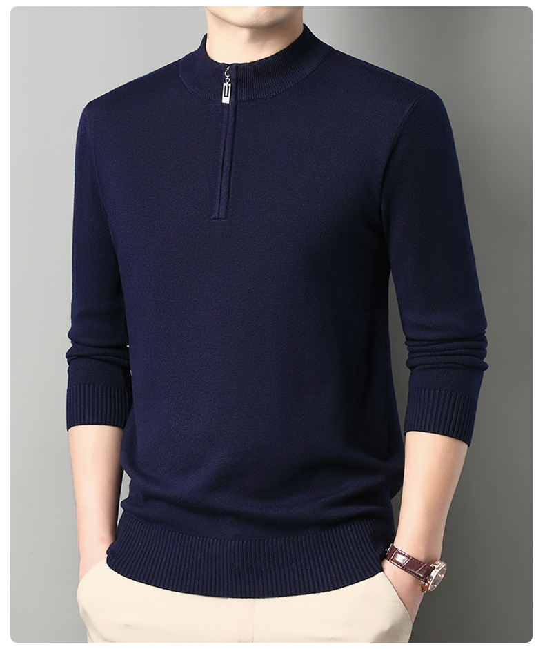 겨울 남자 하프 터틀넥 스웨터 중년 남성 솔리드 컬러 하프 지퍼 루즈 니트베이스 셔츠 남자 원피스 헤어