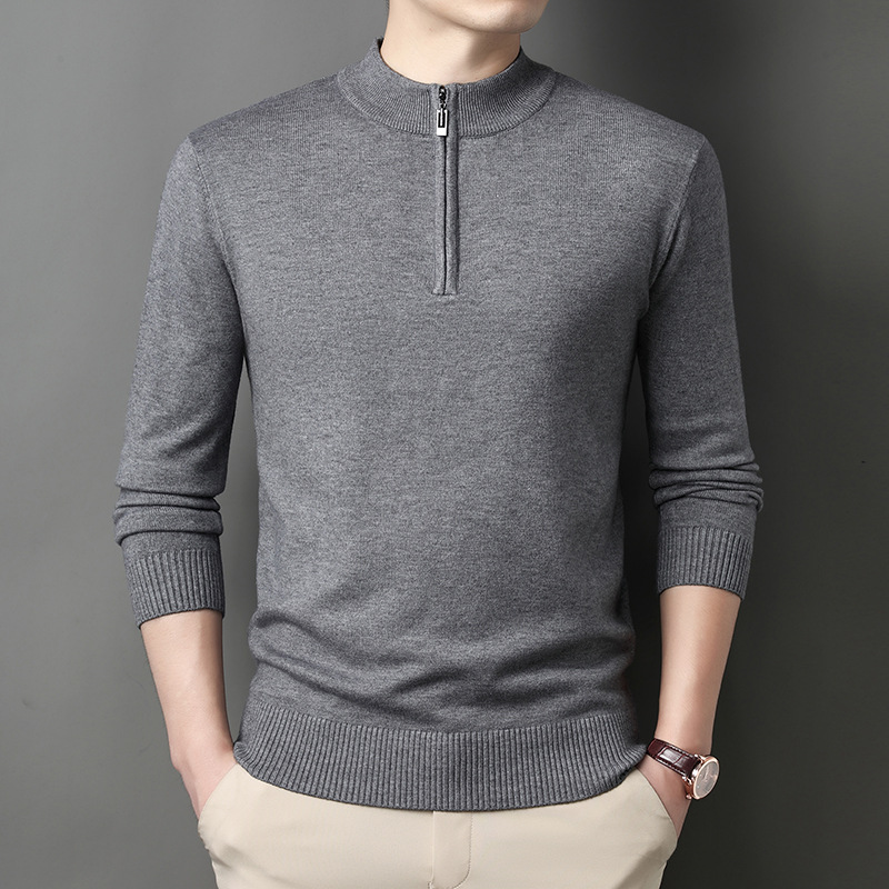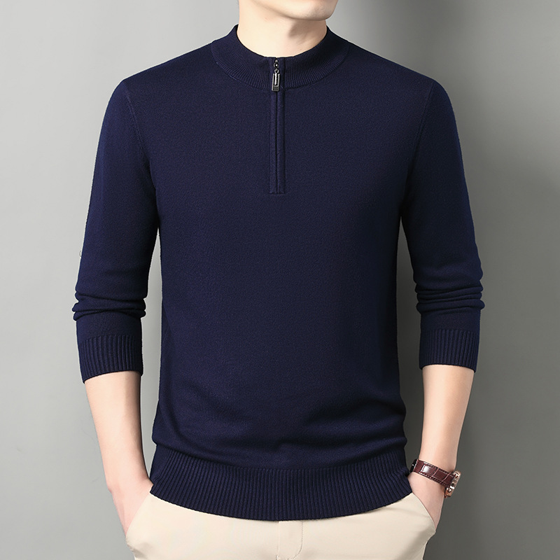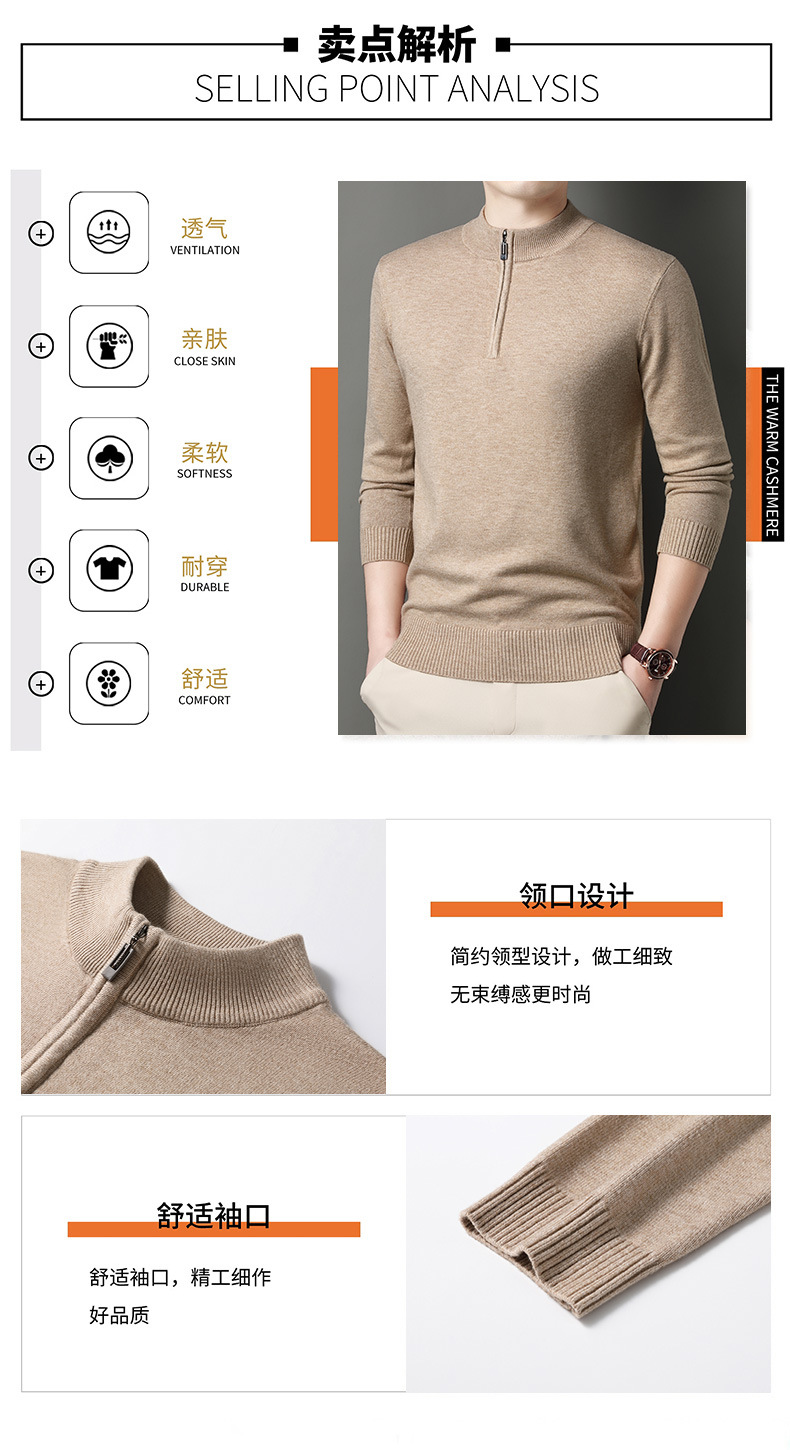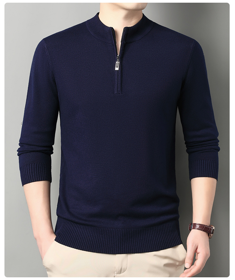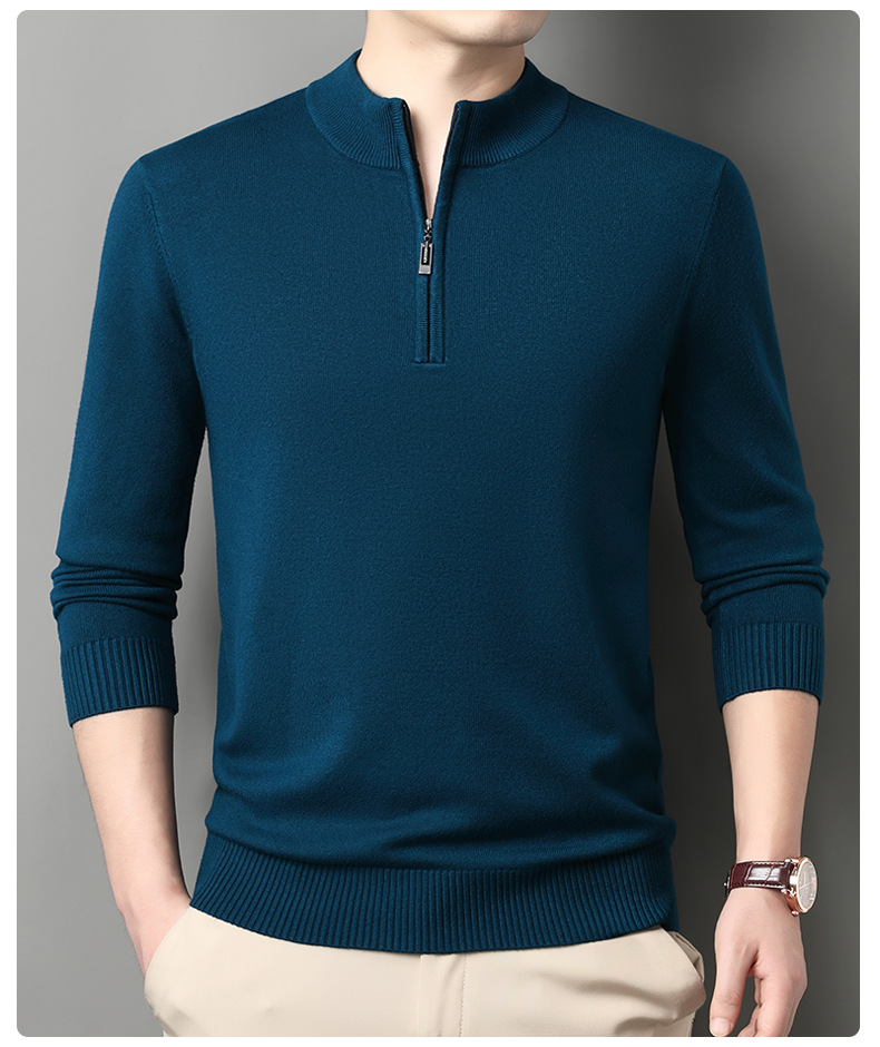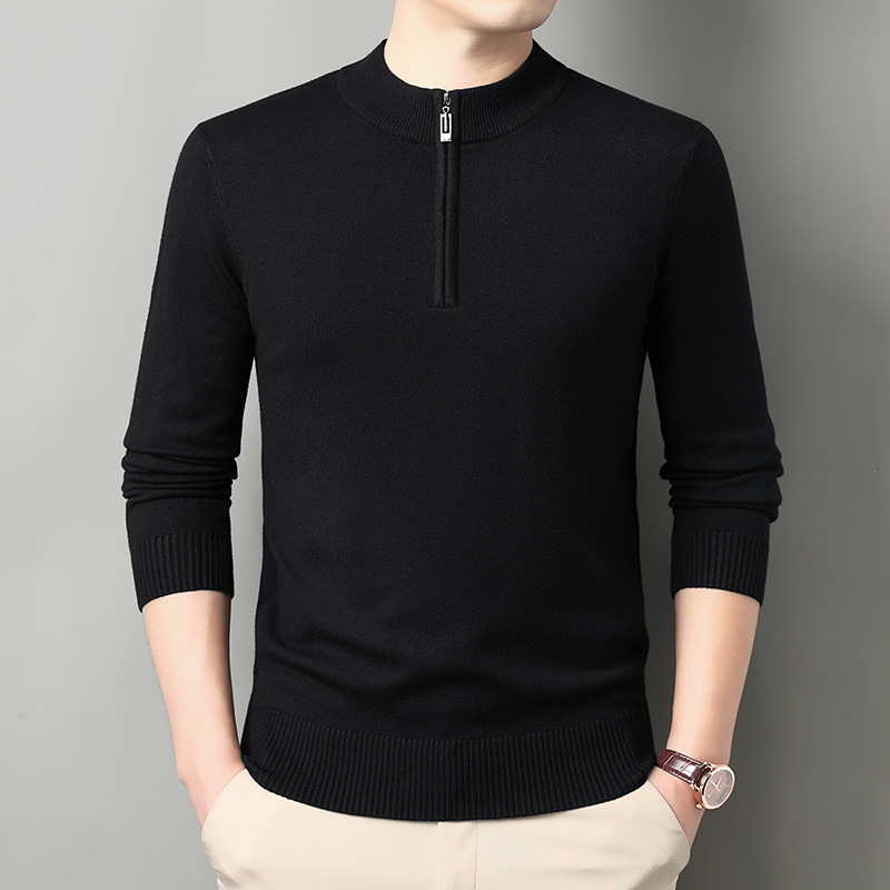 겨울 남자 하프 터틀넥 스웨터 중년 남성 솔리드 컬러 하프 지퍼 루즈 니트베이스 셔츠 남자 원피스 헤어